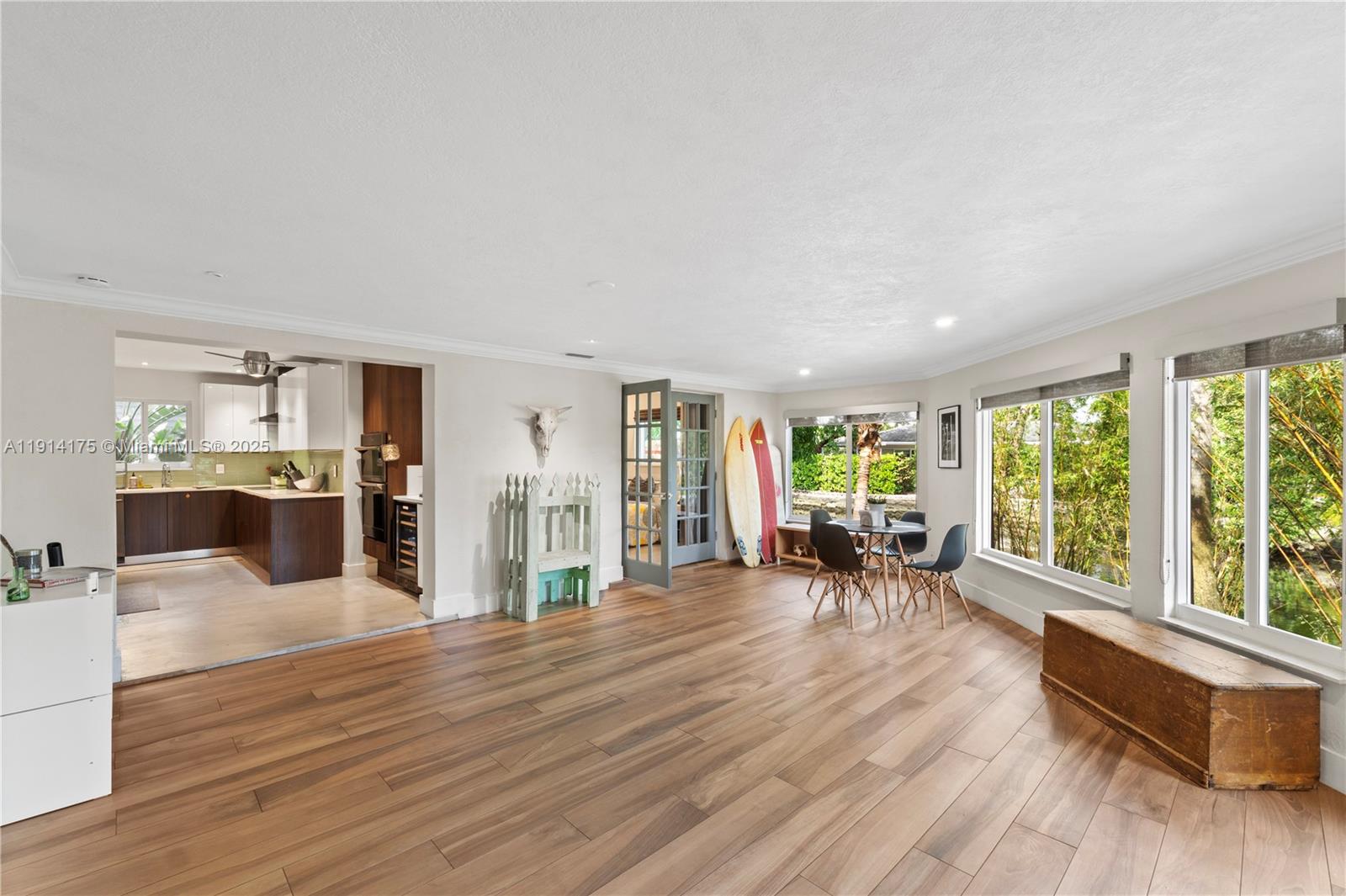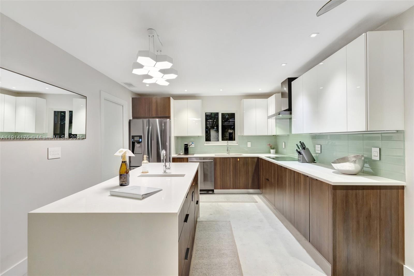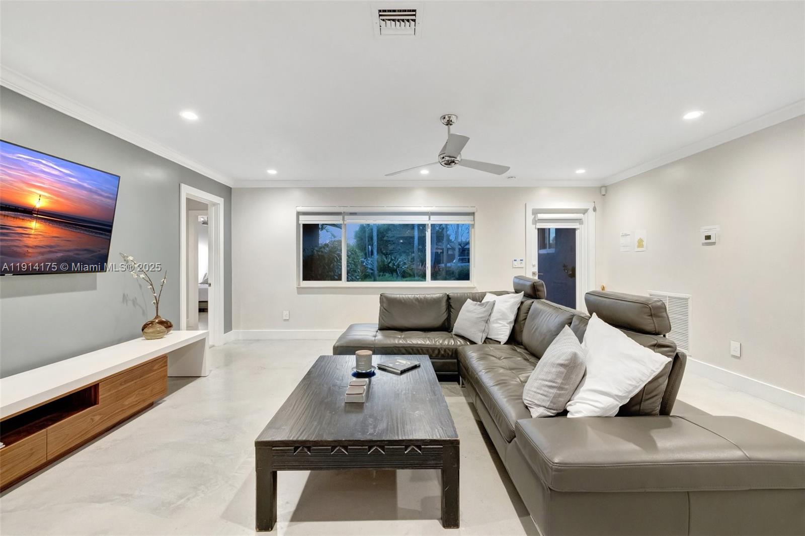 TRUE two car garage/utility sink,all impact,double wide modern slab driveway, resurfaced pool (new tahoe paver).Modern open concept,w 128 ft.curved frontage,dock,water view from every room,OCEAN ACCESS for small craft,watersport toys,outside shower.Oversized corner lot,lush landscaping. Upgraded LED lighting throughout&exterior dimmers/smart switches.Newer electrical/fuse box,PVC plumbing, tankless water heater,well irrigation,new deck,newer fence.Soft close kitchen custom cabinets,quartz countertops&large island w double sinks(food prep & main sink),Thor induction range,polished concrete floors, available furnished. Minutes to Funky Buddha, LA Fitness,Fresh Market,5 min to Wilton,LBS,10 min to Las Olas & Airport.