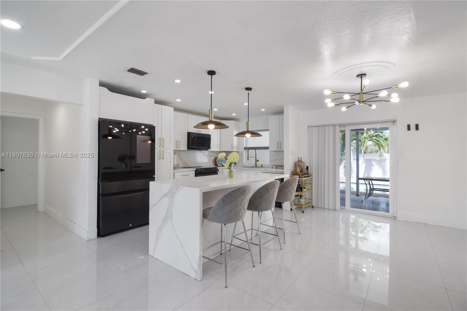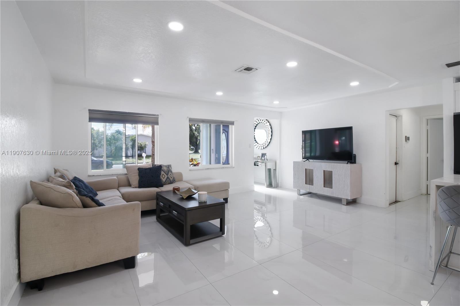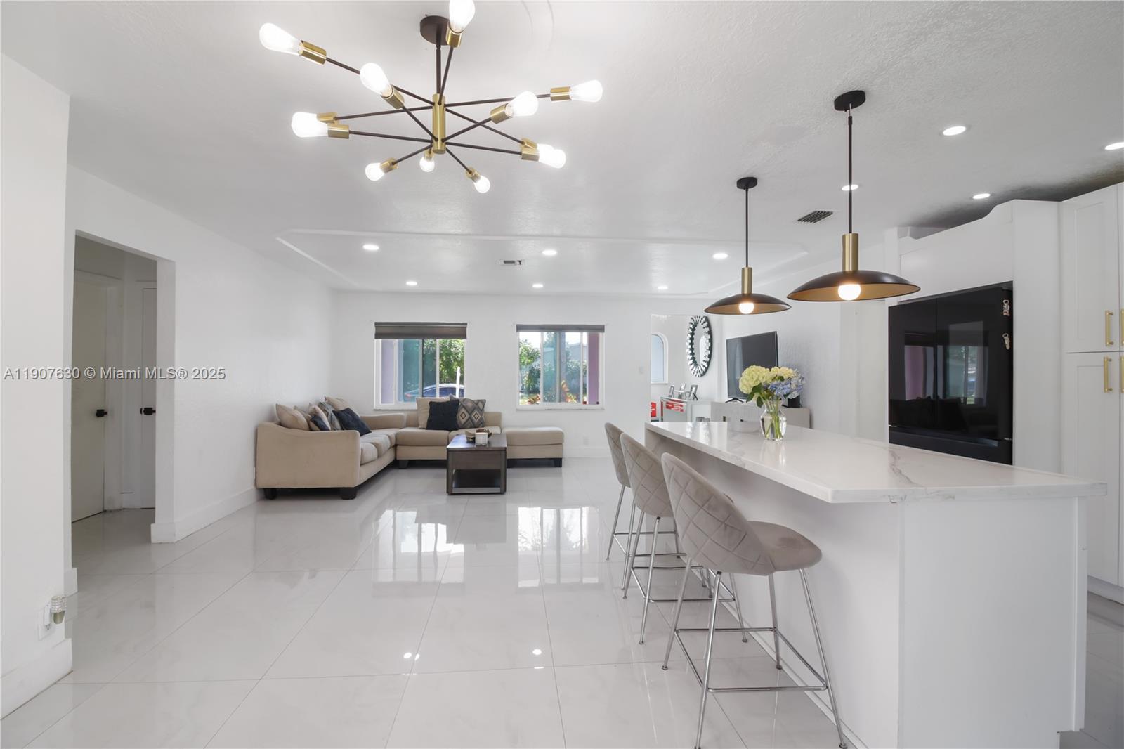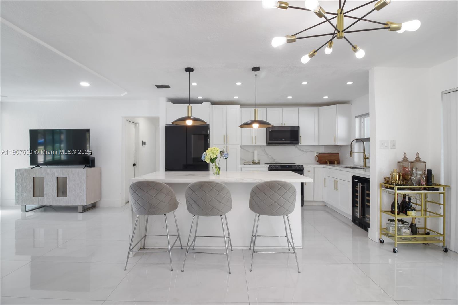 Beautifully remodeled 3-bedroom, 2-bath with pool home in Margate featuring a new A/C (2023), and brand-new flooring throughout. The modern kitchen offers a waterfall island, built-in wine cooler, smart refrigerator, and a dine-in layout filled with natural light. Enjoy impact windows and sliding doors, a 2-car garage with automatic door, washer/dryer, extra storage room or office, and two storage sheds. The covered patio overlooks a 9-ft deep saltwater pool with diving board. Fully fenced for privacy, perfect for relaxing or entertaining. Quiet neighborhood with sidewalks. Convenient to shopping, schools, Coral Square Mall, and major highways. No HOA!