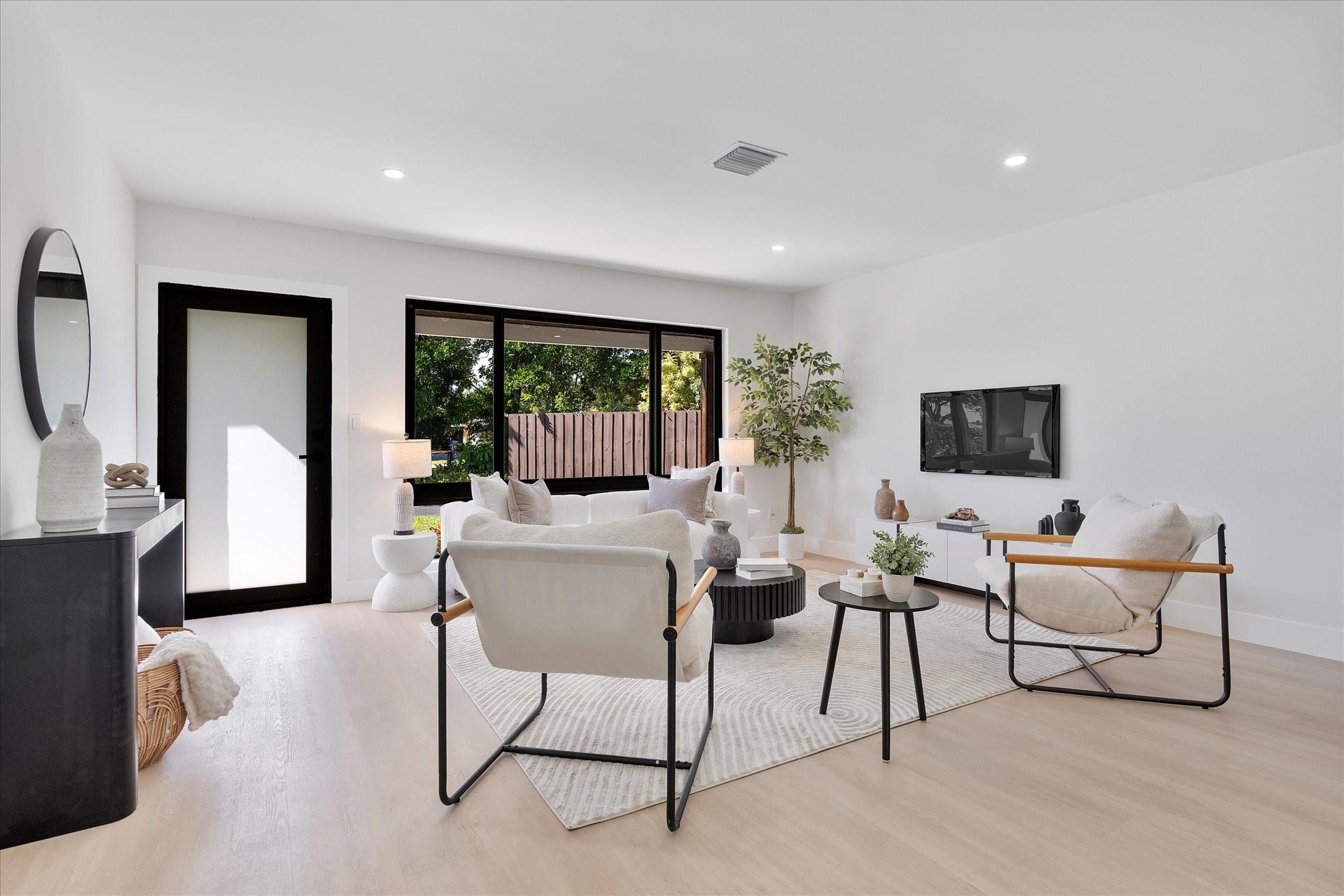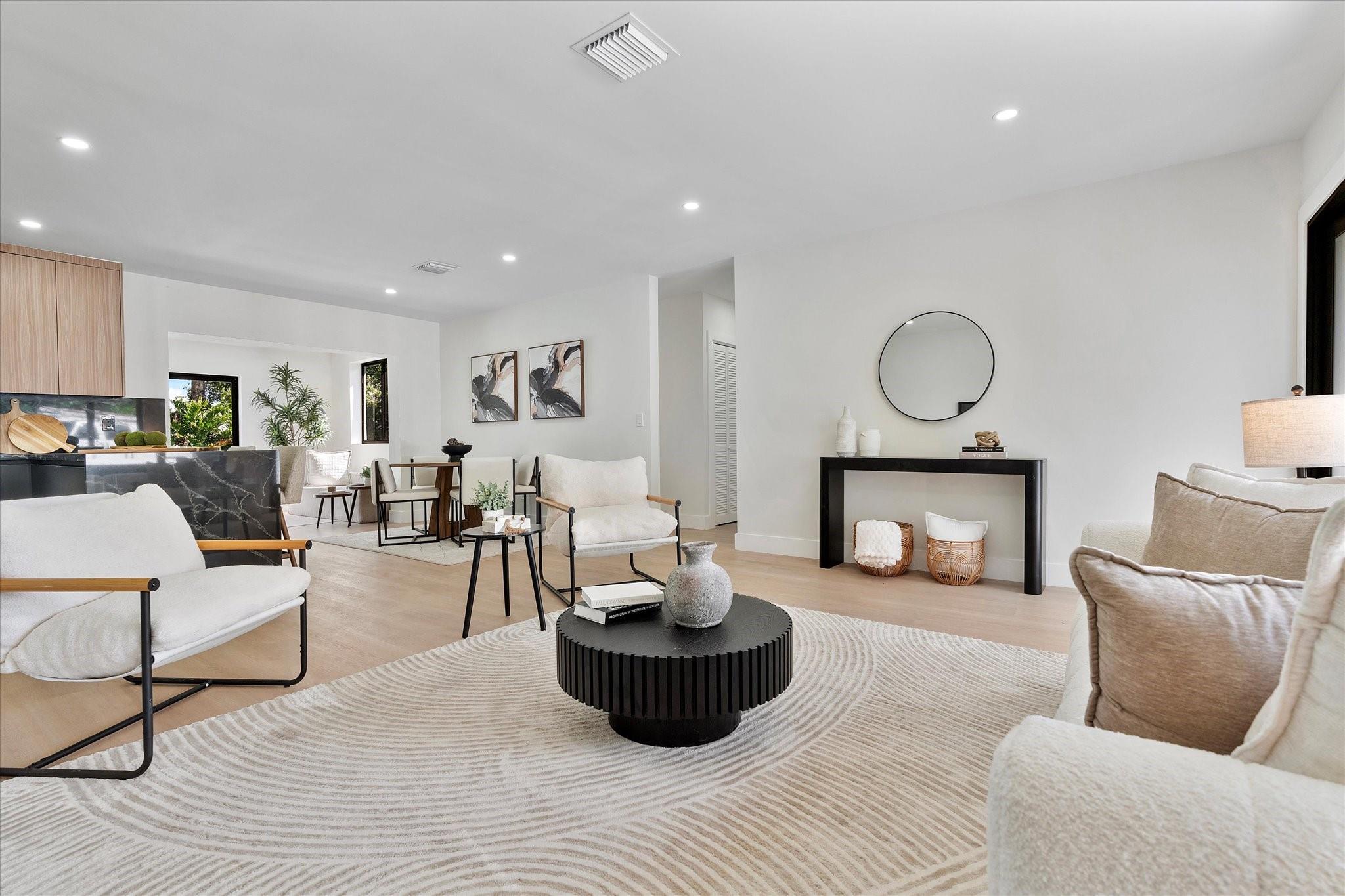 Your dreams begin here in this move-in ready, model-like home in desirable Coral Heights, perfectly designed for relaxing and entertaining. Inside you'll find a beautiful model-like, two-toned European kitchen featuring ample storage, pantry, and drawer space, dramatic black granite with a prominent white vein, contemporary black stainless steel appliances, and a granite serving bar. The bright, open floor plan is filled with natural light, and the white-washed, high-end laminate floors throughout. The luxuriously primary bath offer brushed-gold fixtures, dimmable LED mirrors, a soaking tub, and a stand-up shower. Enjoy the large carport with an extra parking pad for onsite toys, and a pool with a diamond-brite finish and stunning aqua blue tile. NO HOA fees or restrictions.