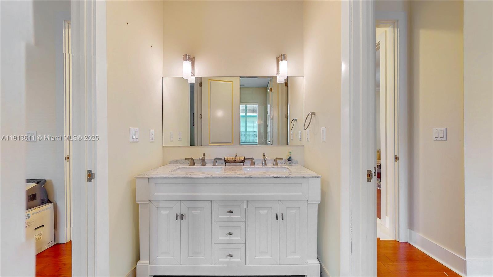 Welcome to your dream home, nestled within the highly sought-after, gated, and guarded community of Oak Ridge! This spacious and luxurious residence features 4 generously sized bedrooms and 4 updated bathrooms. The main living areas showcase elegant porcelain floors, while the bedrooms offer comfortable wood-like flooring. You will love the modern kitchen, complete with a large island, sleek quartz countertops, and stunning custom cabinets. Architectural details abound, including crown molding throughout, a sophisticated tray ceiling in the living area and primary suite, and the security of impact windows and doors. Step outside to your private oasis, featuring a spacious yard that is perfect for adding a pool and creating the ultimate outdoor entertaining space.