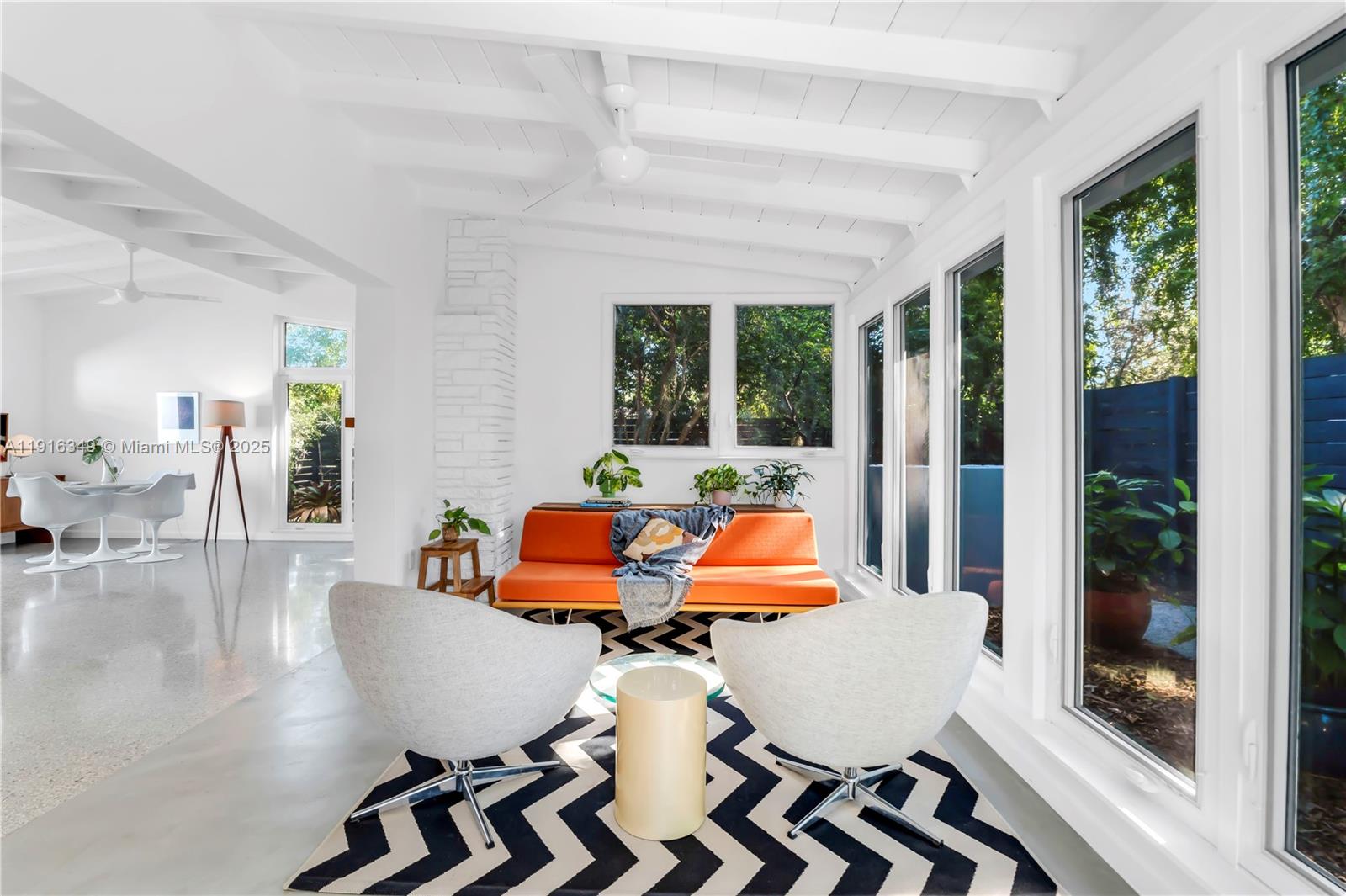 Experience tropical charm with cozy elegance in this beautifully updated 2 bedroom, 2 bathroom home in the heart of Fort Lauderdale. Tall ceilings and restored terrazzo flooring create an airy, welcoming ambiance, while the kitchen features new cabinets, countertops, and a movable island perfect for versatile use. Sunlight pours in, highlighting tranquil views of the lush yard with native plants, butterflies, and mature mango and banana trees for a soothing resort-like feel. The primary bedroom offers a peaceful retreat with walk-in closet, en-suite bath, and direct access to the screened-in patio. With impact windows and doors and a layout that flows effortlessly, this home delivers a rare blend of tropical escape and everyday ease just minutes from all that Fort Lauderdale offers.