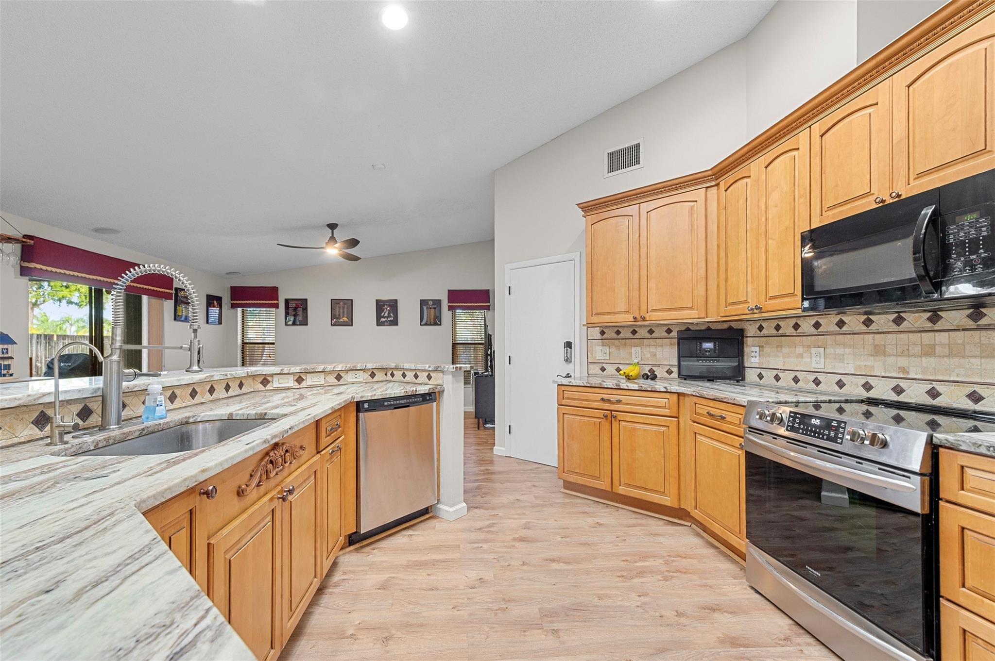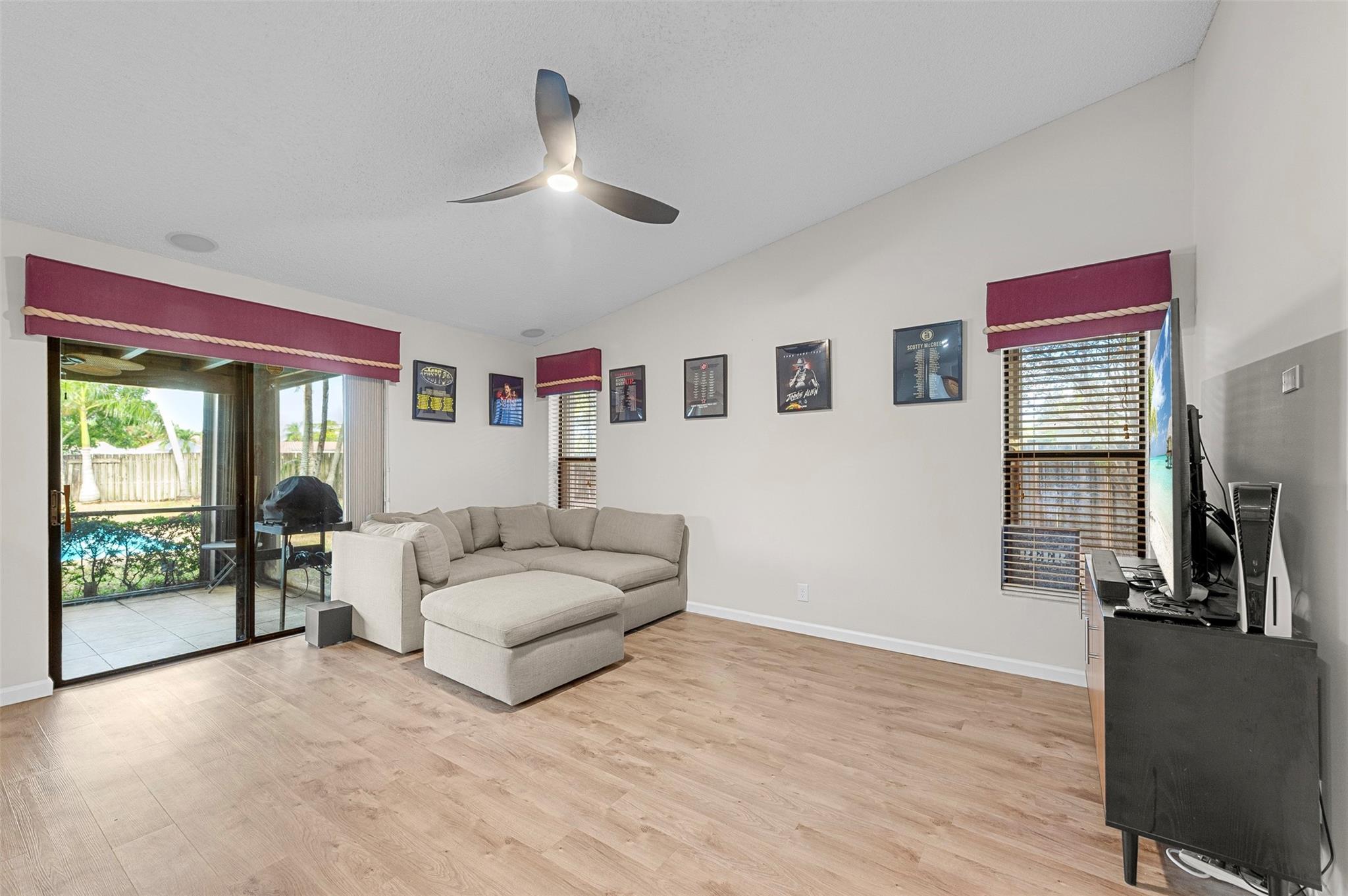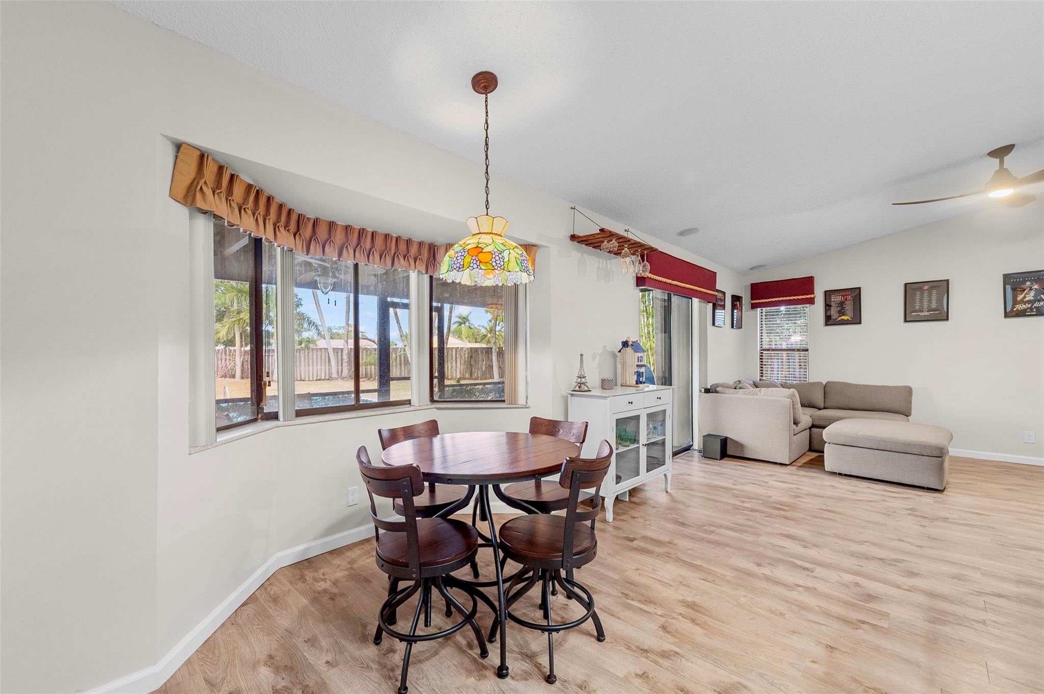Must see! Incredible 3-br, 2-ba one-story pool home perfectly nestled on an oversized cul-de-sac lot with a fenced backyard and large pool. Beautiful vinyl flooring throughout and vaulted ceilings create a bright, spacious feel. The kitchen features granite countertops, wood cabinets, snack bar, SS appliances, and a cozy breakfast area that opens to the family room. Enjoy year-round outdoor living with a screened patio and large open pool area designed for gatherings. Additional upgrades include accordion storm shutters on all windows, doors, AND the screened patio, a NEW ROOF (Nov 2024), and a hurricane-rated garage door on the 2-car garage. Located in a quiet, desirable community minutes from shopping, dining, the Sawgrass Expressway, I-595, and FLL Airport. This home truly has it all.