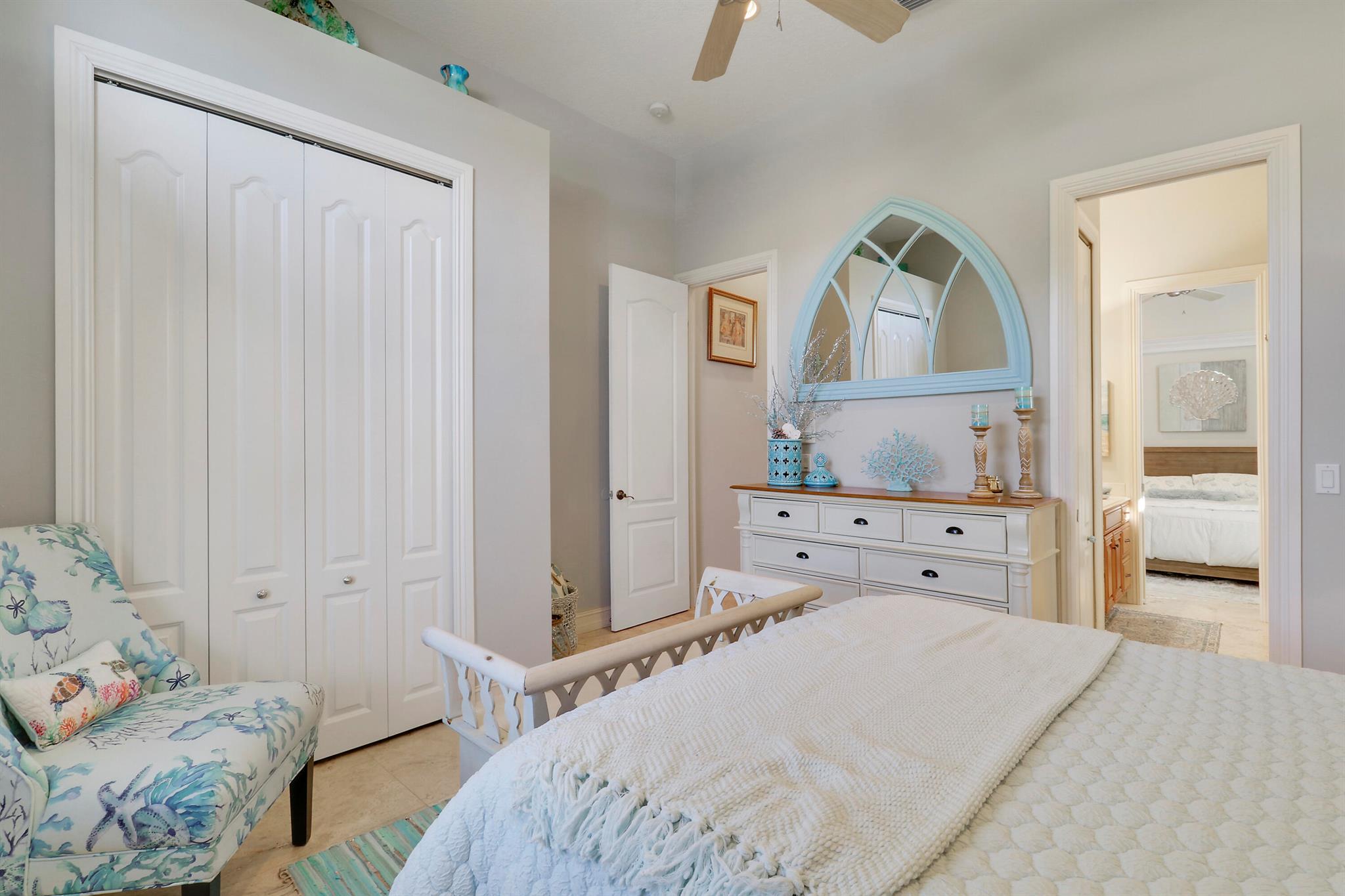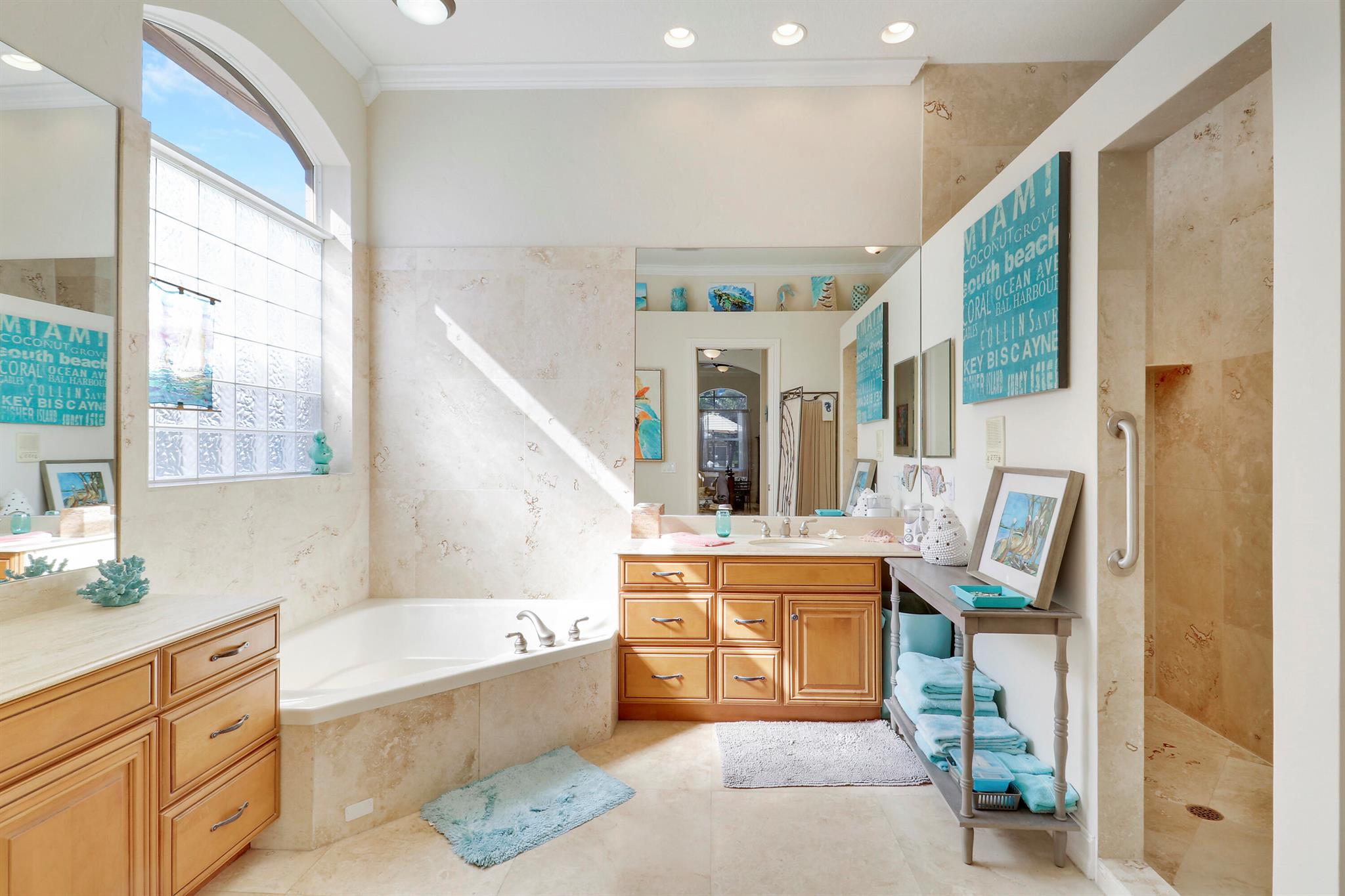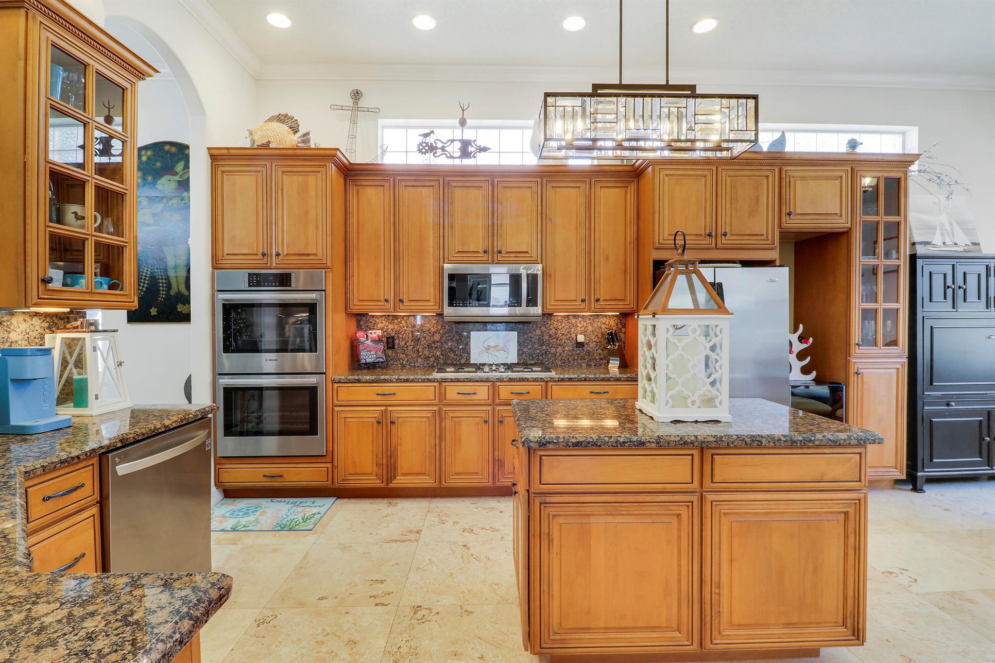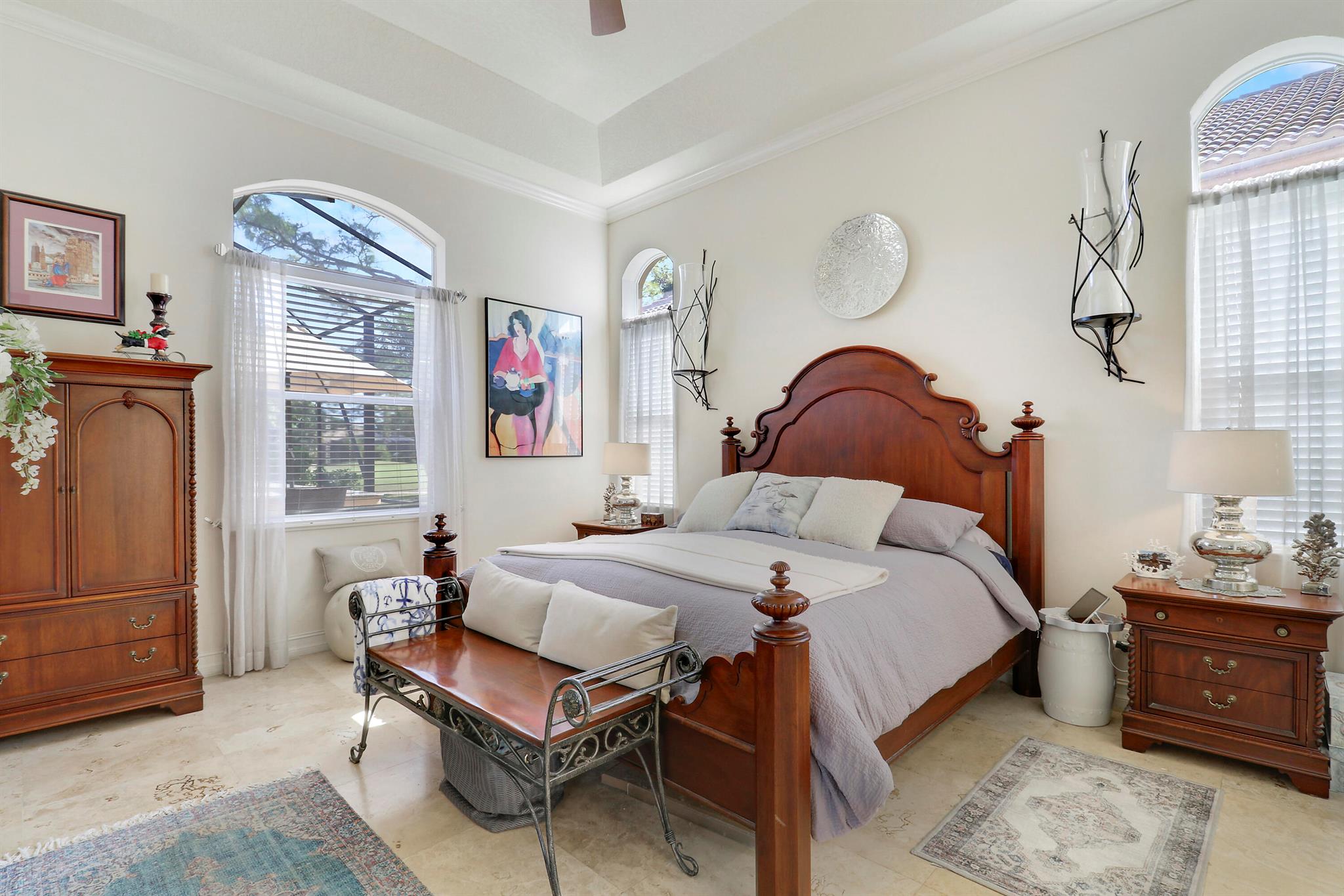 BEAUTIFUL GOLF VIEWS FROM THIS 4BR/2.5BA/2CG POOL HOME LOCATED IN THE DESIRABLE COMMUNITY OF PGA VILLAGE! This home features IMPACT GLASS WINDOWS & DOORS, tall ceilings, neutral paint, living area with wall unit and solid surface flooring t/o. Kitchen with cherry medallion cabinetry, granite counters and SS appliances including WALL OVEN & GAS COOKTOP. The primary suite has a spacious sitting area and luxurious ensuite with dual vanities, walk-in shower and soaker tub. Two guest bedrooms share a jack and jill bathroom. The 4th bedroom, currently used as a den, has a custom built in unit. Newer AC was installed in 2020. The outdoor space of this home is a dream - your very own TROPICAL OASIS with PRIVATE HEATED POOL & SPA WITH ROCK WATERFALL FEATURES, outdoor bar and covered patio space.
