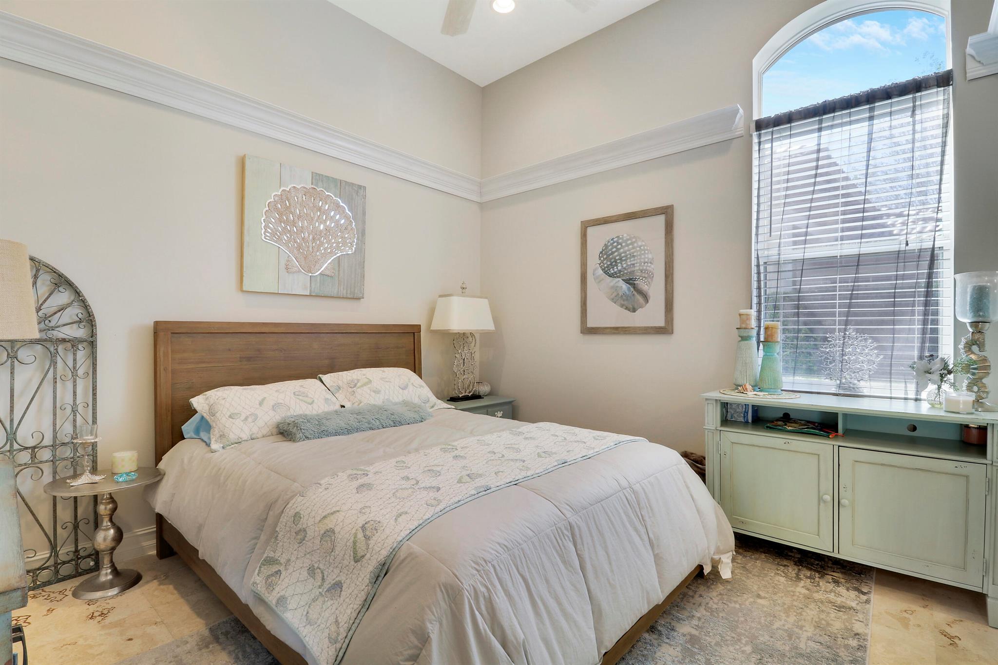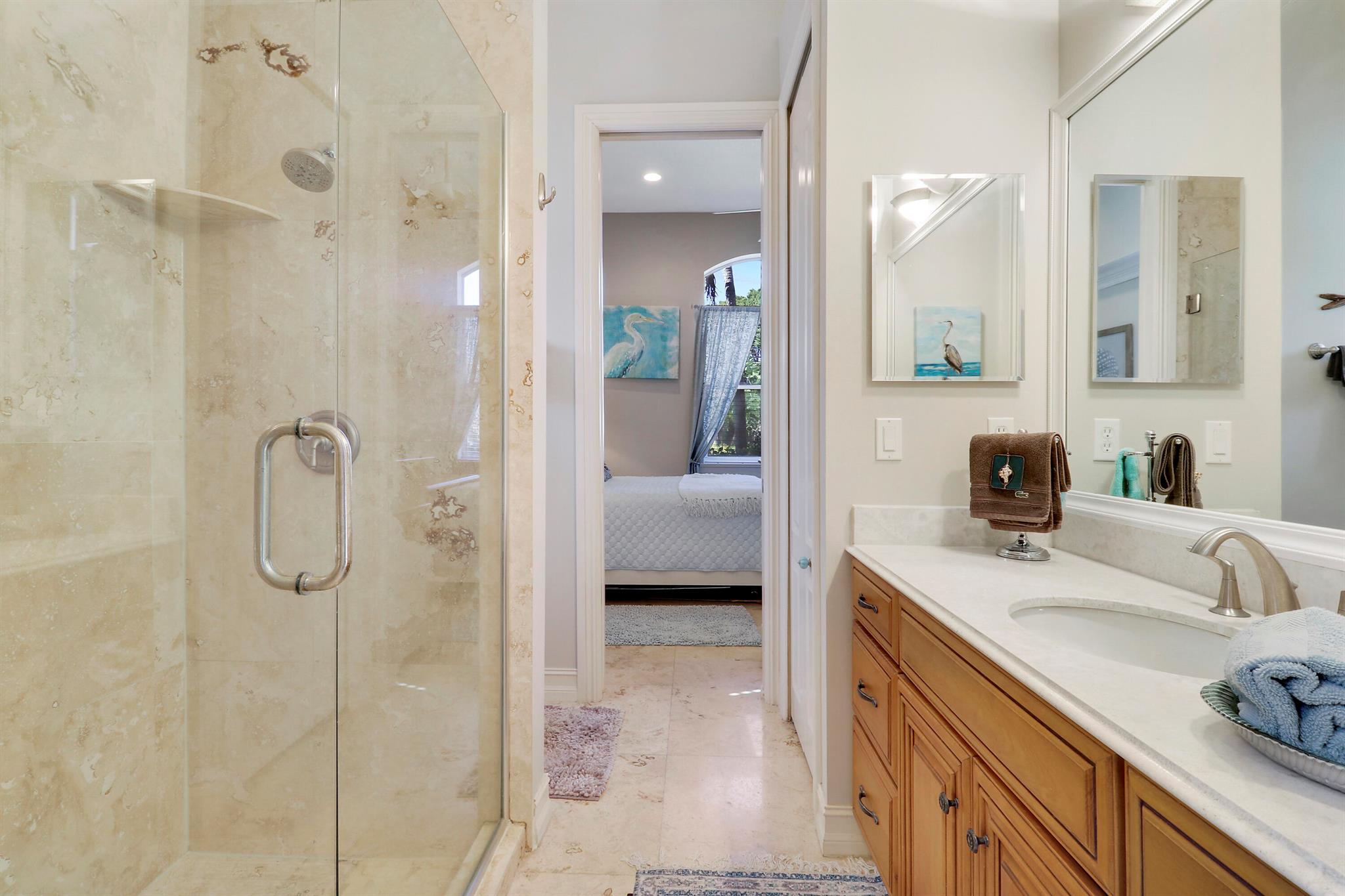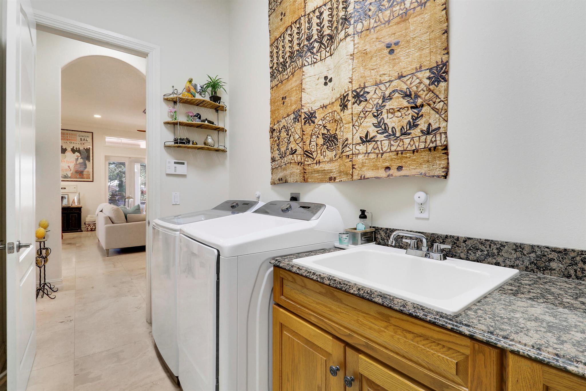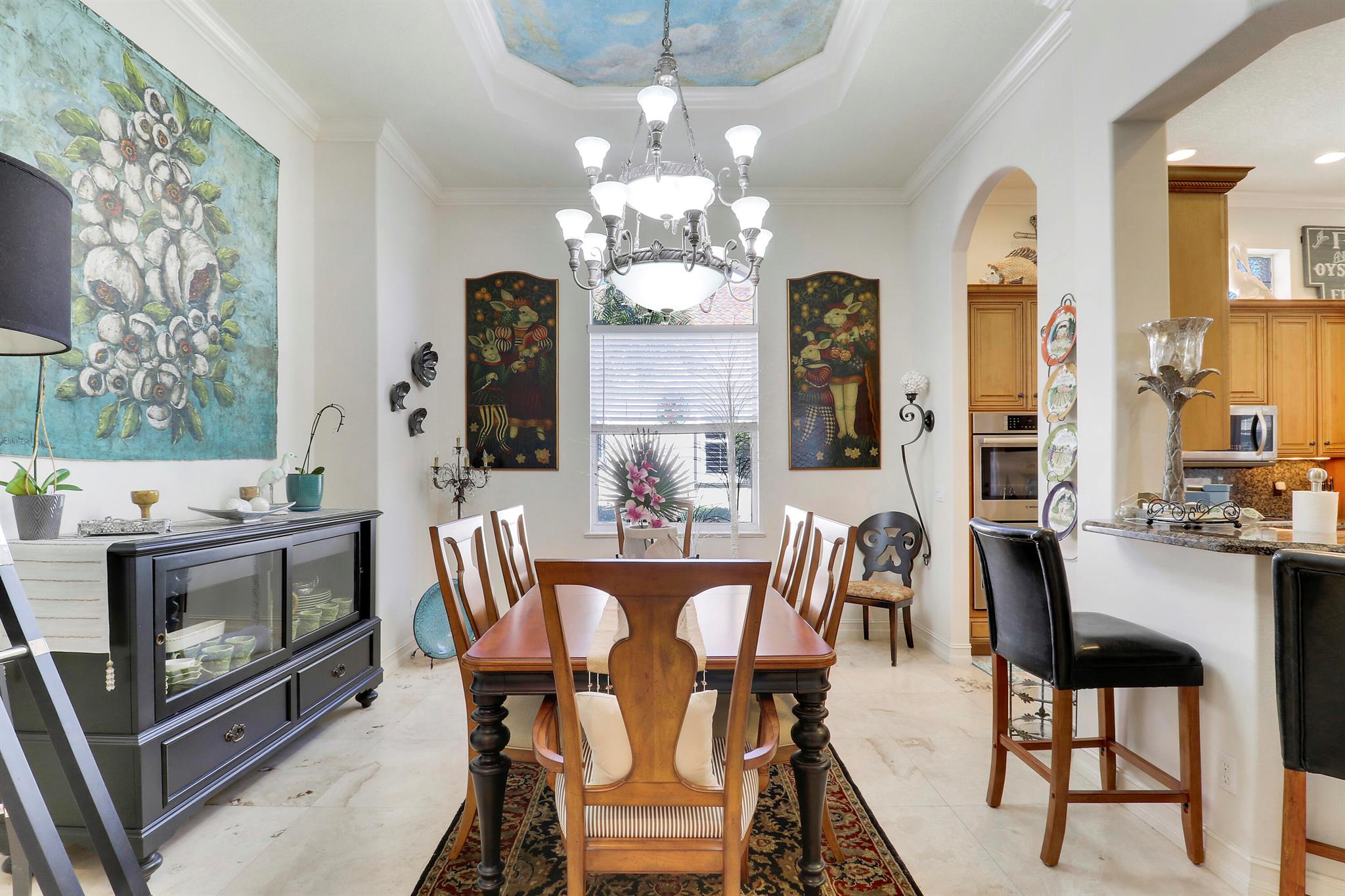 BEAUTIFUL GOLF VIEWS FROM THIS 4BR/2.5BA/2CG POOL HOME LOCATED IN THE DESIRABLE COMMUNITY OF PGA VILLAGE! This home features IMPACT GLASS WINDOWS & DOORS, tall ceilings, neutral paint, living area with wall unit and solid surface flooring t/o. Kitchen with cherry medallion cabinetry, granite counters and SS appliances including WALL OVEN & GAS COOKTOP. The primary suite has a spacious sitting area and luxurious ensuite with dual vanities, walk-in shower and soaker tub. Two guest bedrooms share a jack and jill bathroom. The 4th bedroom, currently used as a den, has a custom built in unit. Newer AC was installed in 2020. The outdoor space of this home is a dream - your very own TROPICAL OASIS with PRIVATE HEATED POOL & SPA WITH ROCK WATERFALL FEATURES, outdoor bar and covered patio space.