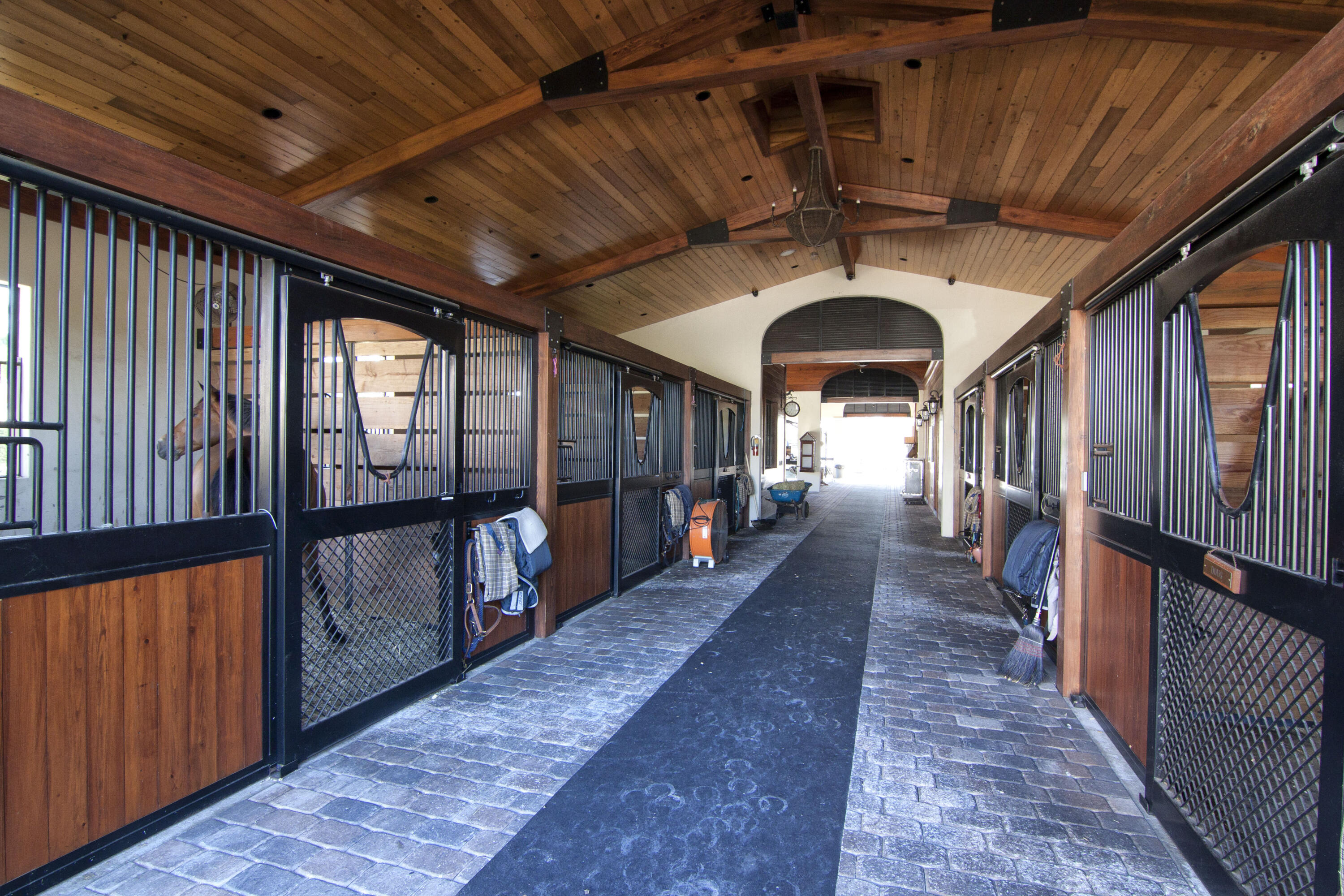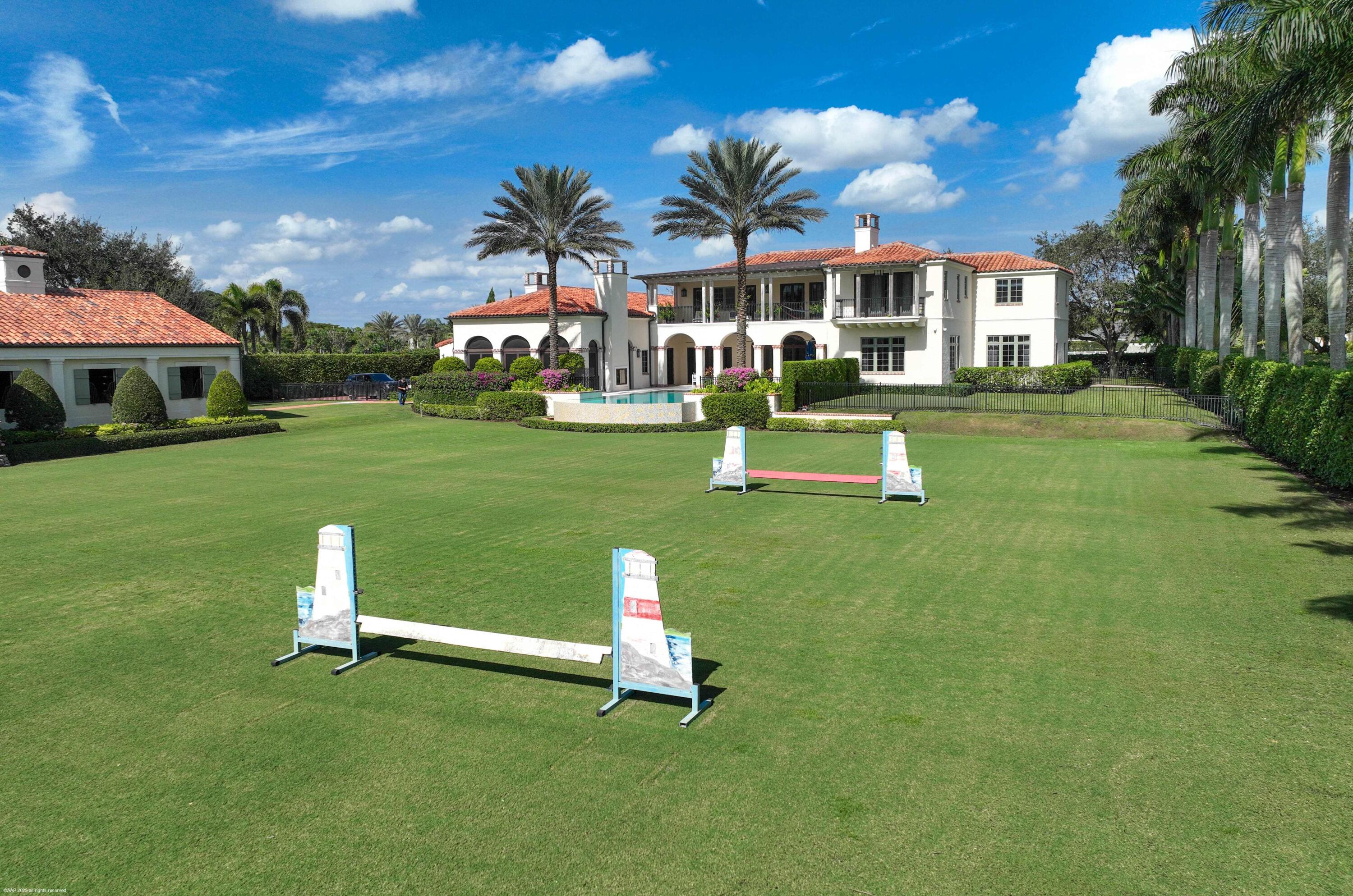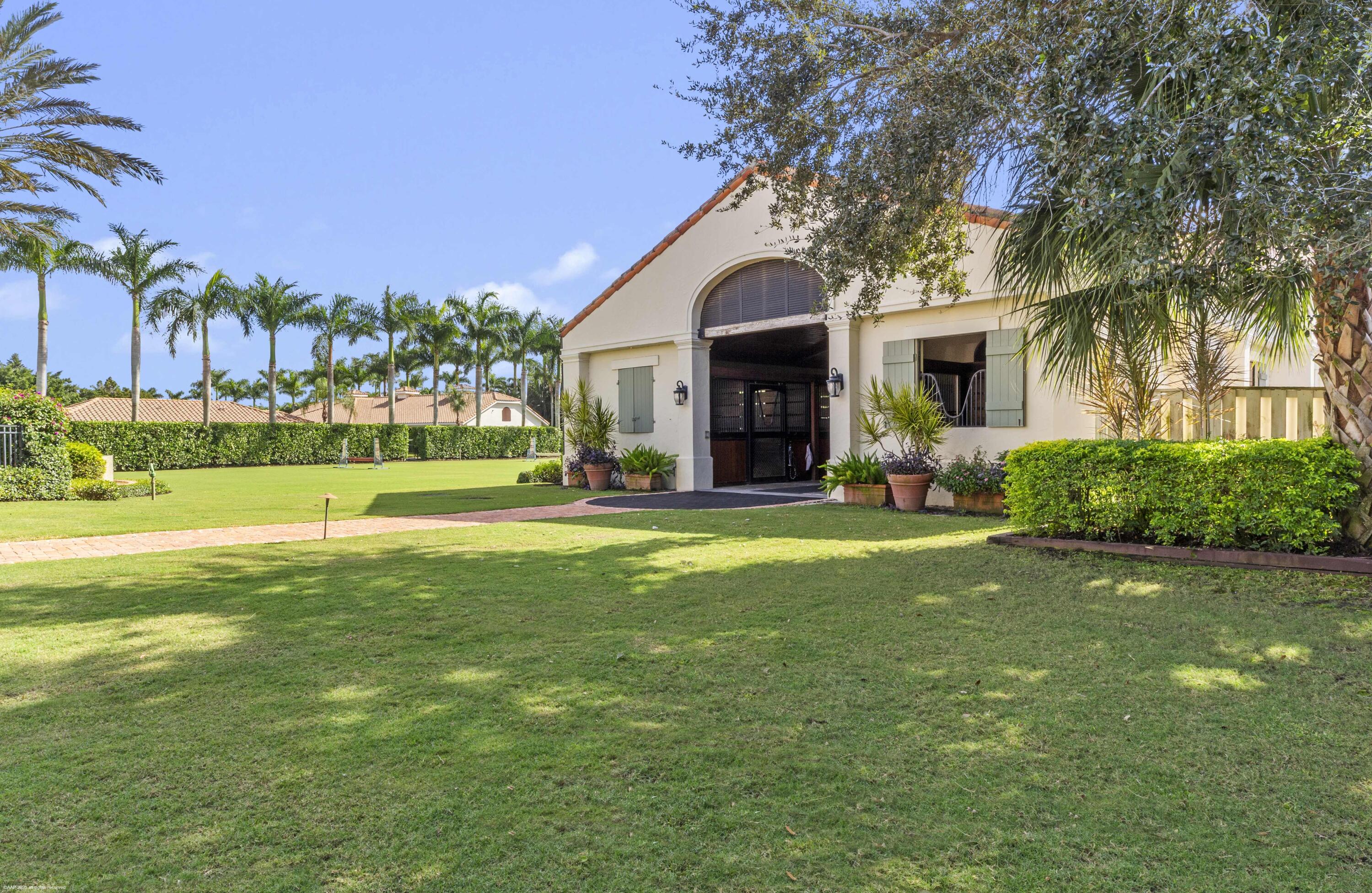 An exceptional Wellington Equestrian Estate just four properties from PBIEC, offering an unmatched location mere minutes walking to the show rings. This Palm Beach-style compound spans over 4 acres across two lots and includes an exquisite 5-bedroom plus office main residence with a guest apartment, two 8-stall barns, a 3-bedroom staff apartment, an oversized new riding arena, Grand Prix Field and 7 paddocks. A rare opportunity to own a top-tier equestrian estate steps from the horse show.