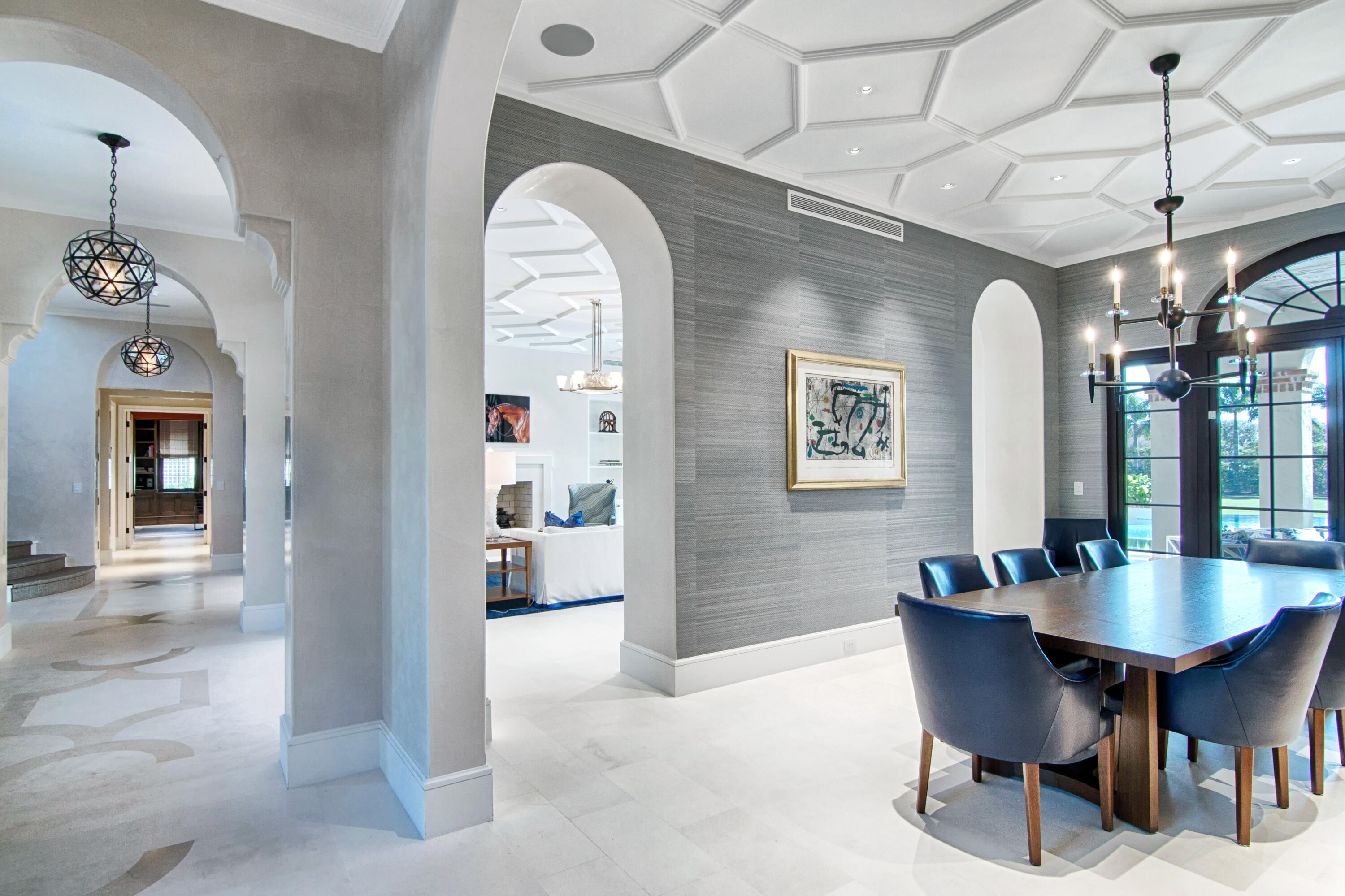 • Interior Feature:WetBar, BuiltInFeatures, BreakfastArea, DiningArea, SeparateFormalDiningRoom, DualSinks, EntranceFoyer, EatInKitchen, Elevator, FrenchDoorsAtriumDoors, Fireplace, HighCeilings, KitchenDiningCombo, LivingDiningRoom, CustomMirrors, Pantry, SeparateShower, VaultedCeilings, Bar, WalkInClosets, CentralVacuum