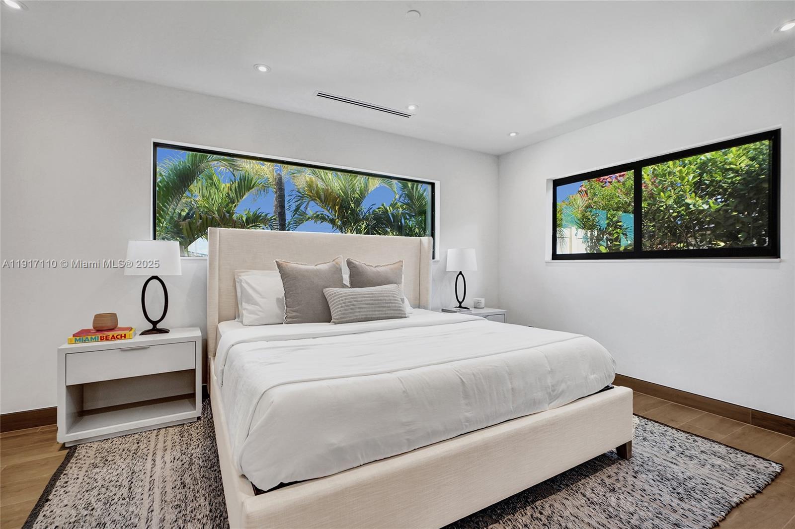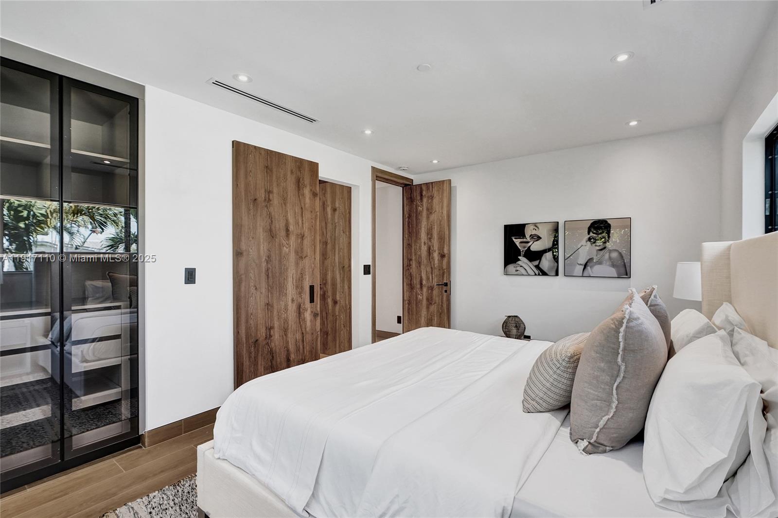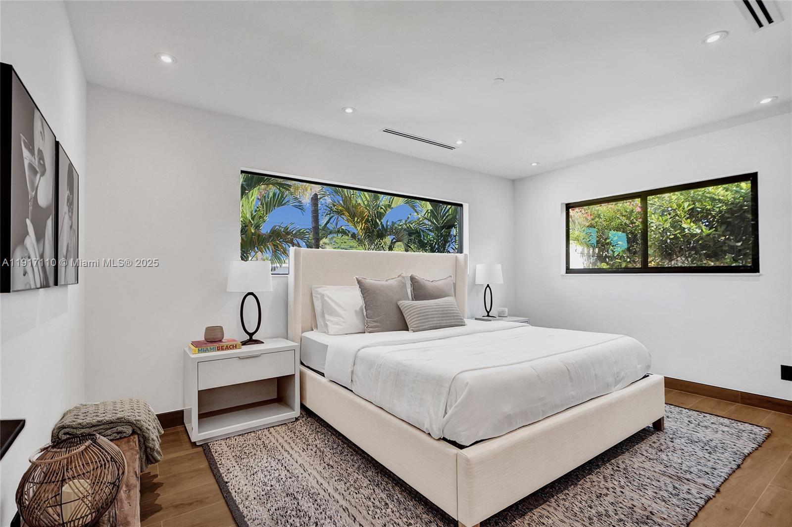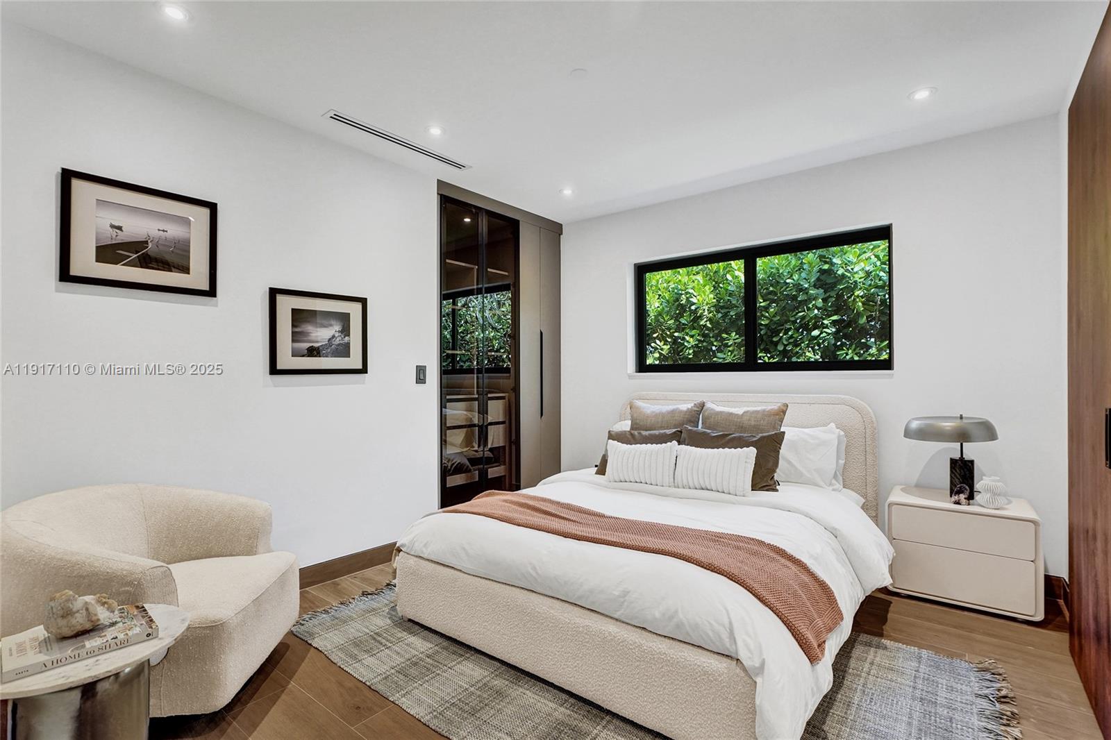 Stunning, fully remodeled modern home featuring clean architectural lines, warm natural tones, and top-quality finishes throughout. The open-concept layout highlights a sleek Italian-style kitchen with custom wood cabinetry, quartz countertops, and top-of-the-line appliances, including stainless steel appliances. This elegant residence features impact-resistant windows and doors, Italian-built-in closets, large porcelain floors, high ceilings, and designer LED lighting. The spacious living and dining areas are surrounded by glass sliders that fill the home with natural light and create a perfect indoor-outdoor flow. The outdoor space is designed for entertaining, featuring a built-in BBQ, artificial grass, and beautifully landscaped gardens. Every detail combines luxury and functionality