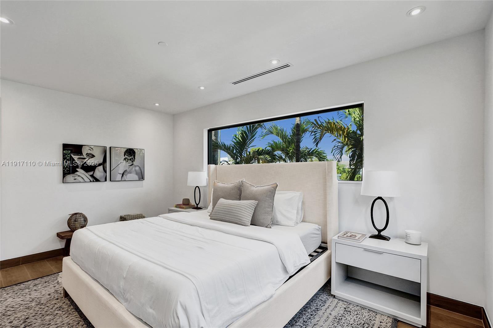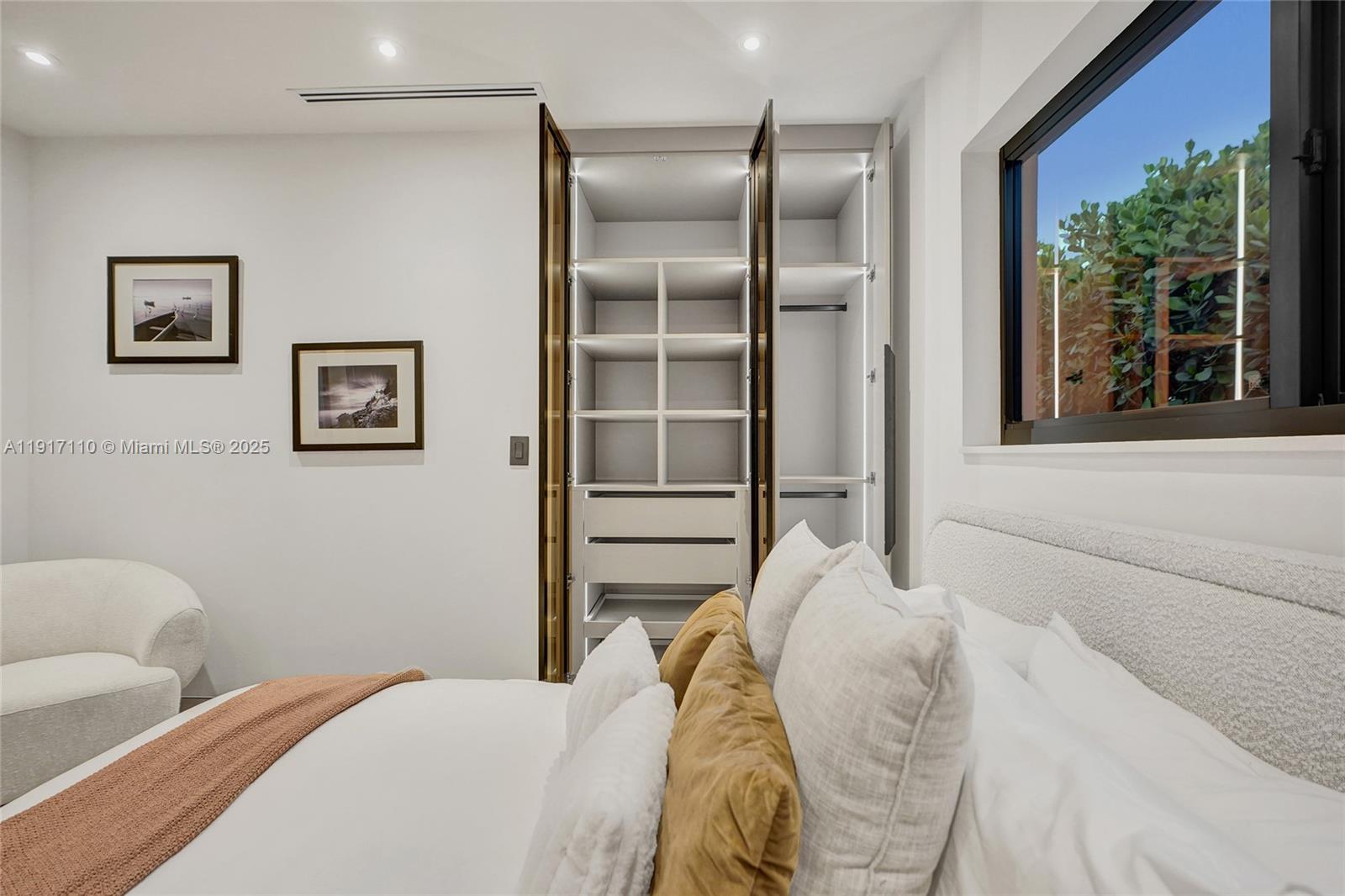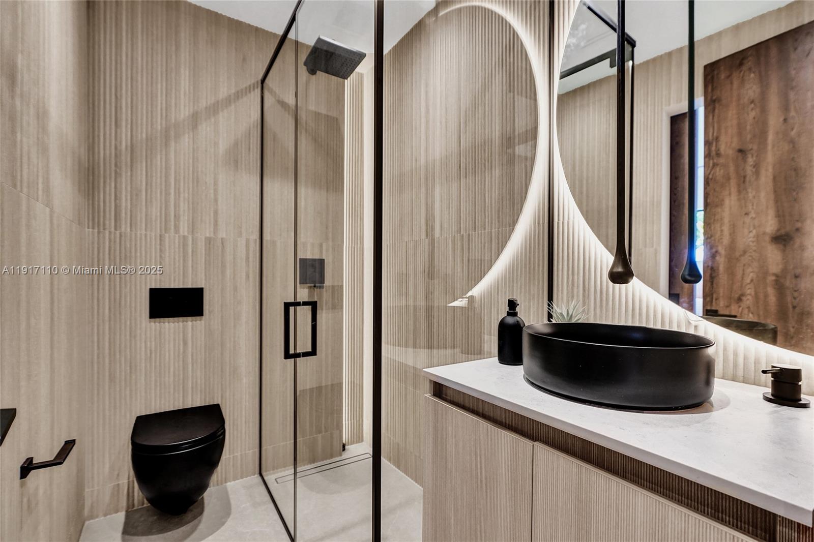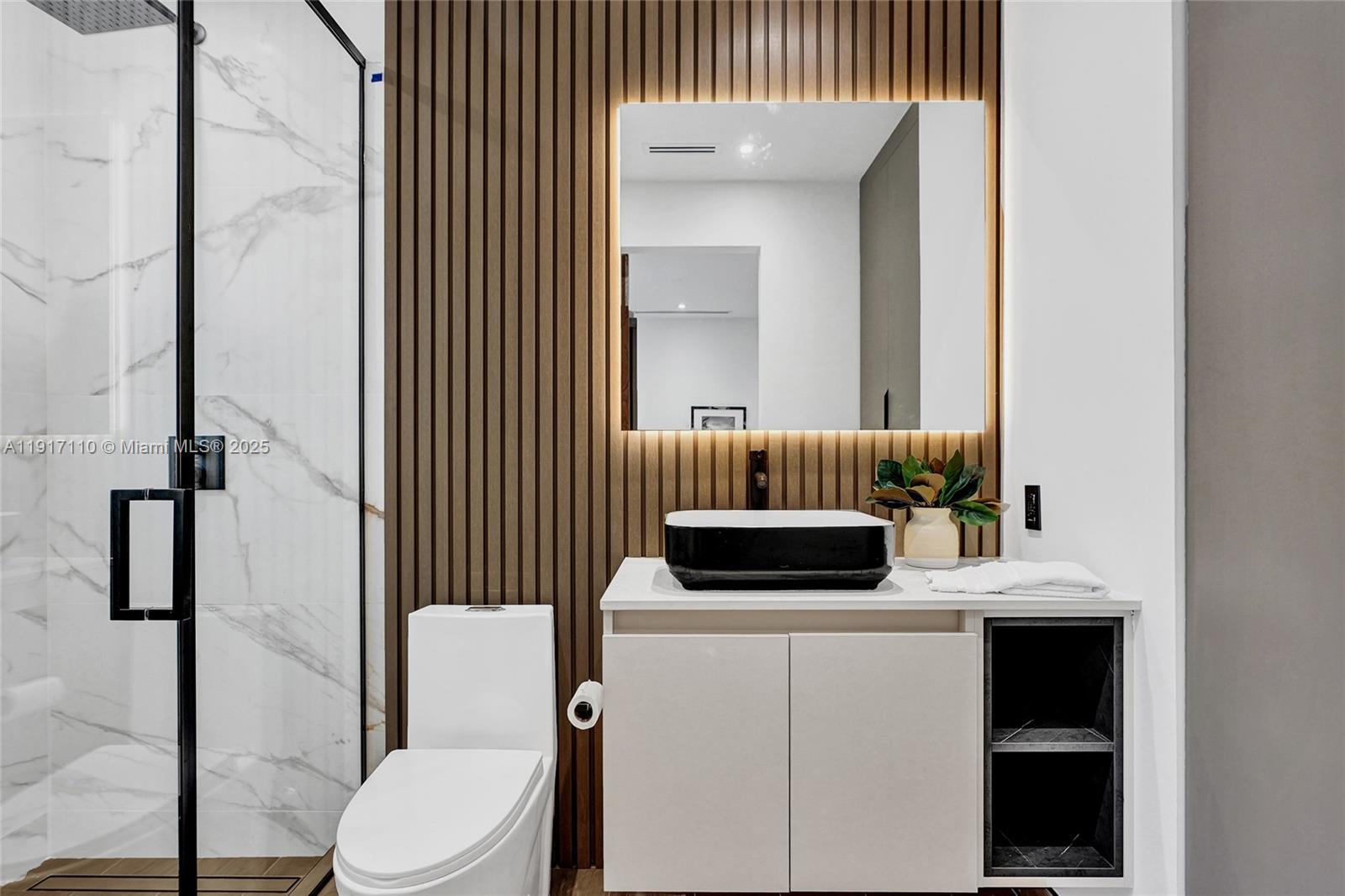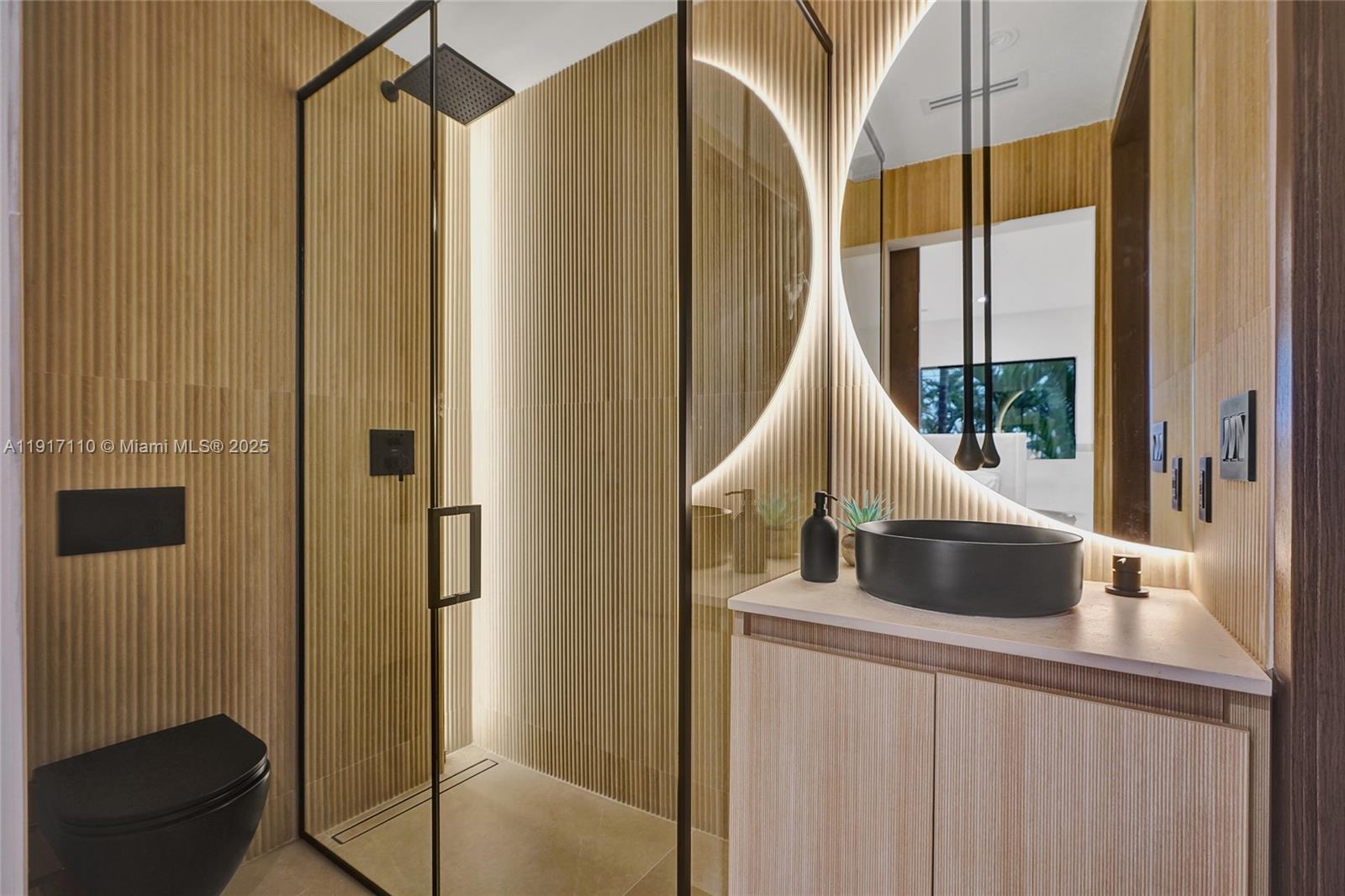 Stunning, fully remodeled modern home featuring clean architectural lines, warm natural tones, and top-quality finishes throughout. The open-concept layout highlights a sleek Italian-style kitchen with custom wood cabinetry, quartz countertops, and top-of-the-line appliances, including stainless steel appliances. This elegant residence features impact-resistant windows and doors, Italian-built-in closets, large porcelain floors, high ceilings, and designer LED lighting. The spacious living and dining areas are surrounded by glass sliders that fill the home with natural light and create a perfect indoor-outdoor flow. The outdoor space is designed for entertaining, featuring a built-in BBQ, artificial grass, and beautifully landscaped gardens. Every detail combines luxury and functionality
