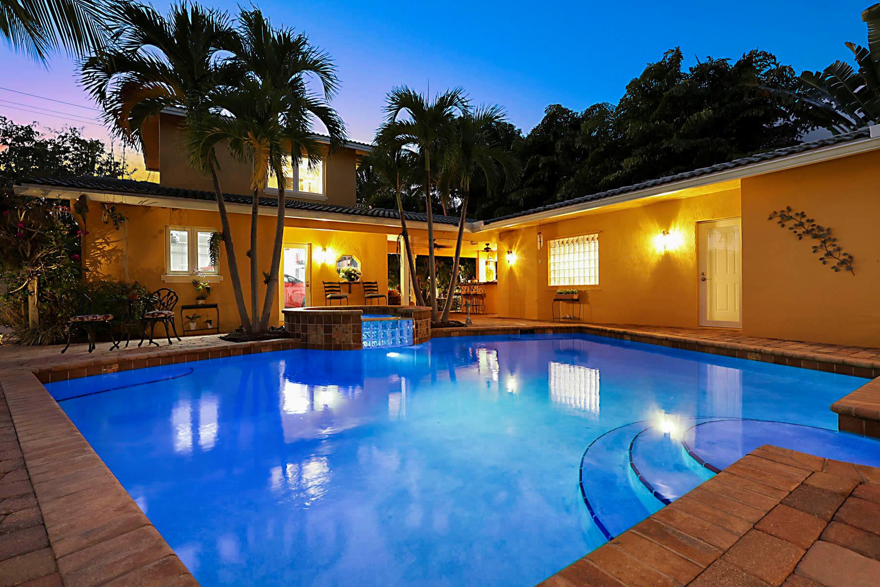 Discover a rare compound-style retreat in the heart of East Boca Raton--a spacious 4-bedroom, 4-bathroom single-family home set on an expansive third-acre lot with a private pool, greenhouse, multiple outdoor living areas, and thoughtful upgrades throughout. Designed for comfort, entertaining, and flexible living, this property offers a blend of charm, functionality, and future potential that's hard to find in this prime location. Inside, the home features an LG washer and natural-gas LG dryer, along with a newly installed Rheem Platinum 55-gallon natural gas water heater that services the main living areas. The upgraded kitchen is equipped with Frigidaire Professional refrigeration and a full suite of KitchenAid appliances including a natural gas stove and hood, oven, and microwave, plus