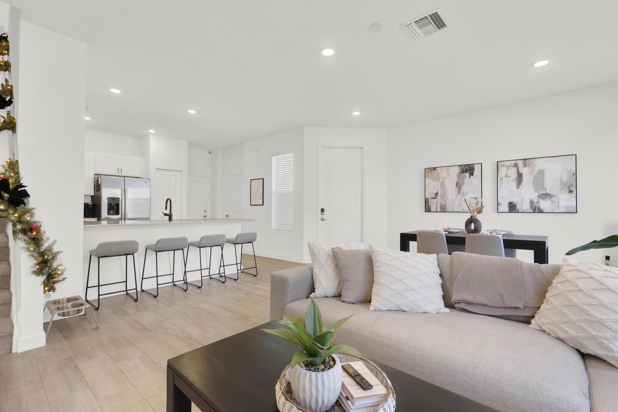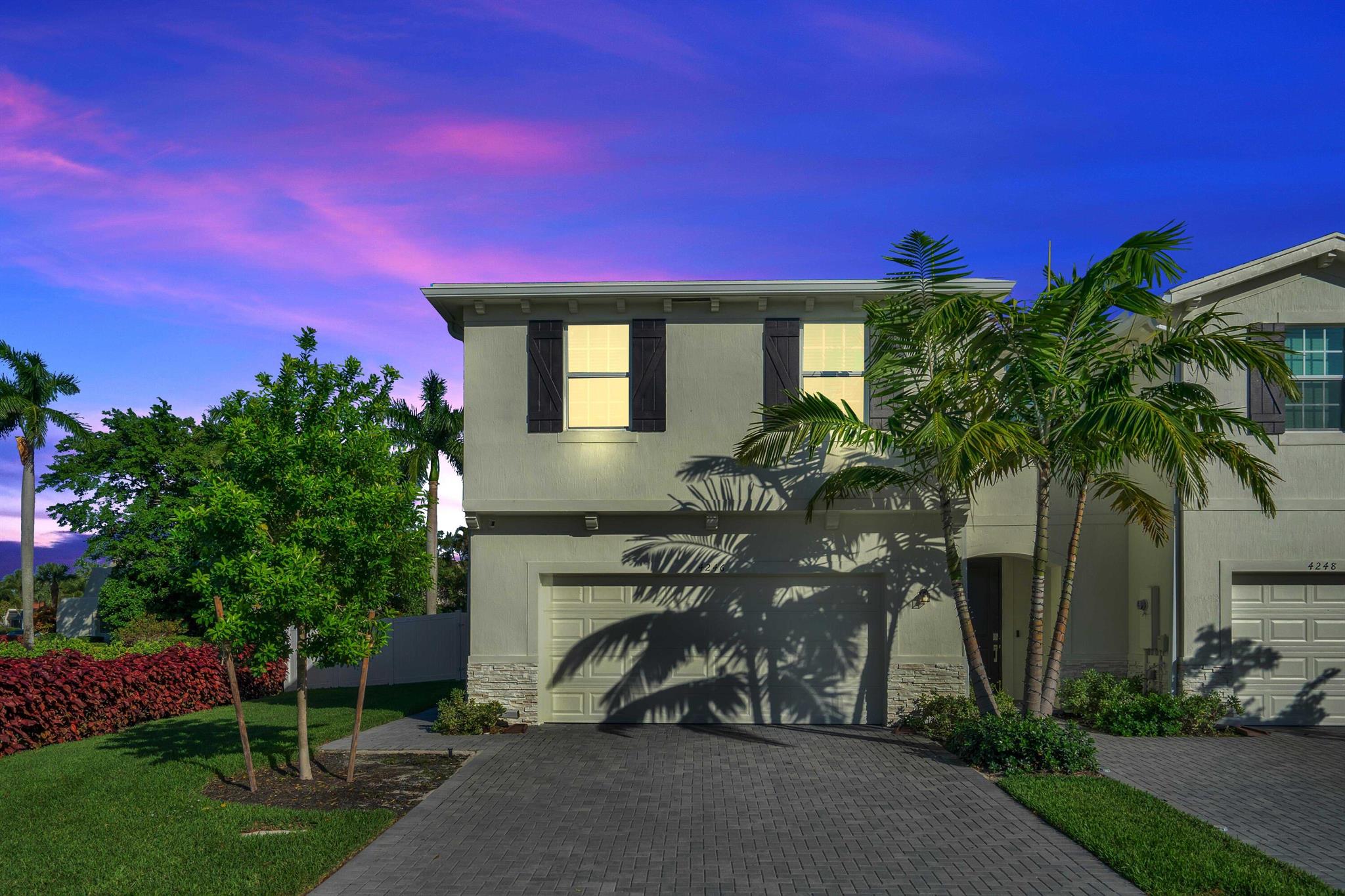Welcome home to this beautifully upgraded END-UNIT townhome in Lakeshore at the Fountains! The open-concept first floor offers a modern kitchen with seamless flow into the dining and family room, perfect for entertaining or everyday living. Upstairs features four bedrooms, including a spacious primary suite with a large walk-in closet. This nearly new home includes numerous upgrades: a fenced backyard, extended patio, custom closets throughout, epoxy-finished 2-car garage, Alexa-enabled smart switches, added recessed lighting and upgraded hardware and fixtures. Located in a gated community with a pool and cabana directly across the street for your convenience. Just a short drive to downtown West Palm Beach, beautiful beaches, and Wellington's equestrian venues, shopping and dining.