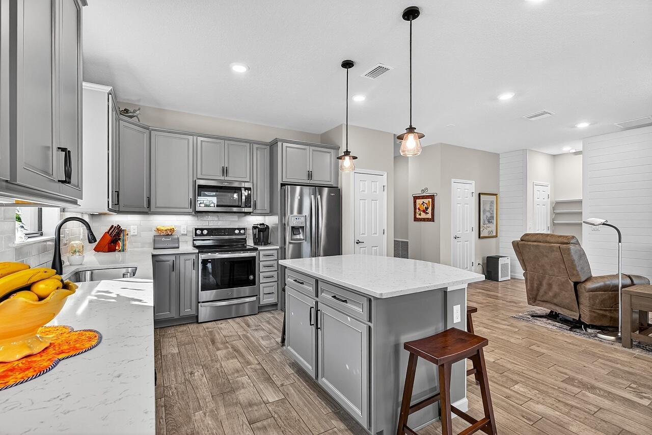 Discover true waterfront living at Magnolia Court in Waterway Village. This beautifully upgraded 2020 Divosta Marina Floor plan offers a lifestyle that the other listings simply can't match--serene water views, enhanced outdoor living, and thoughtful interior finishes that elevate everyday comfort.Step inside to 1,704 sq ft of stylish, low-maintenance living featuring porcelain tile throughout, impact windows, custom window treatments, and a motorized blind in the living room for effortless light control. The heart of the home is the bright, open kitchen with quartz countertops, Whirlpool appliances, designer backsplash, under-cabinet lighting, and upgraded pull-out cabinetry that makes storage a breeze.The waterfront lifestyle continues into the spacious primary suite, complete