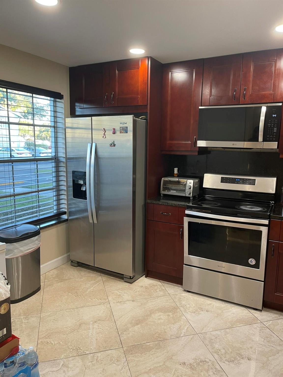 Spacious 3/2.5, 2 story townhouse with fenced patio. Gated community close to highways, PBI airport, beaches, new Tanger Outlet Mall. This is one of a kind townhouse in Palm Club West where the owner included part of the patio and the laundry room inside the AC first floor for more space and convenience of using the laundry. The unit is totally updated, newer appliances, kitchen and bathroom cabinets. Large tile porcelain tiles on first floor and laminate wood floors on the second floor.Patio doors are impact. Jacuzzi in the guest bathroom. Hurricane panels for all windows. AC is 5 years old, new roof (assessment included in the HOA payment.) HOA includes gate, water, internet, cable, and exterior and roof insurance. Community amenities include swimming pool, tennis & picnic area.