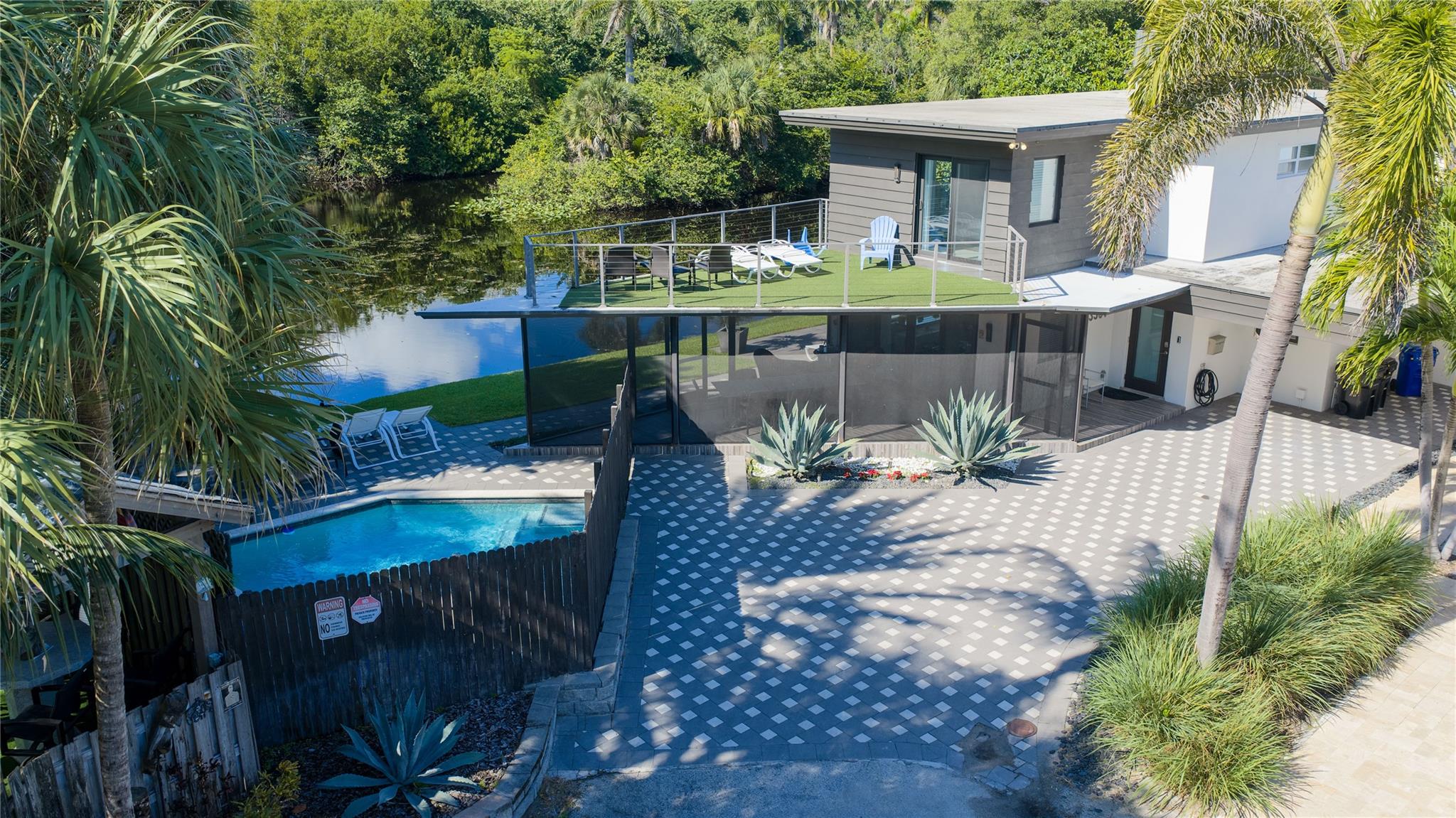 Prime location one block from Fort Lauderdale Beach and steps from Birch State Park. This two-story waterfront home sits on a quiet lagoon with direct paddleboard access, offering a rare blend of beach convenience and private retreat. The 5 bed 4 bath main home plus a 1 bed 1 bath guest suite creates flexible living for multigenerational needs, guests, or added income. Mid-century modern style, open living areas, a screened porch, an upper deck off the primary suite, and a heated saltwater pool elevate everyday living. Approved as a vacation rental with strong income potential, the property delivers comfort, access, and a lifestyle that is hard to match. WATERFRONT IS NOT OWNED BY HOMEOWNER. Waterfront Lagoon is part of Birch State Park Property. You can launch paddle boards and canoes.