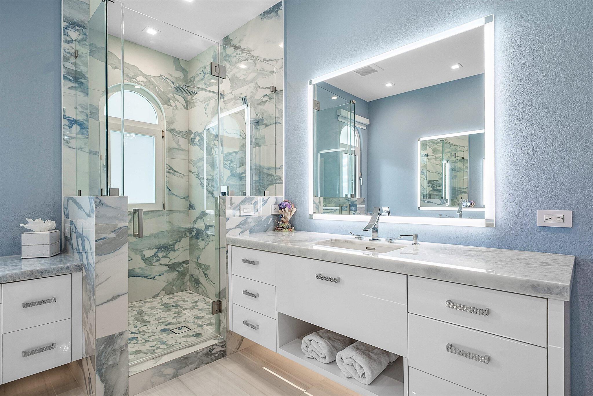 Sophisticated and move-in ready, this end-unit residence offers 2,938 SF under air and was fully renovated in 2021 by Alacasa Design Studio. Every detail reflects refined coastal living--light-filled interiors, 24x48 European porcelain tile, modern circular staircase, crown moldings, and automated blinds throughout.The chef's kitchen features Thermador WiFi-enabled appliances, custom two-toned cabinetry, Oyster White marble countertops, a waterfall island with prep sink, and hidden walk-in pantry. The open living area flows to multiple covered balconies, ideal for indoor-outdoor entertaining.The primary suite offers sweeping ocean views, custom his-and-hers closets, and a spa-like bath with dual floating vanities, designer lighting, and an oversized walk-in shower.