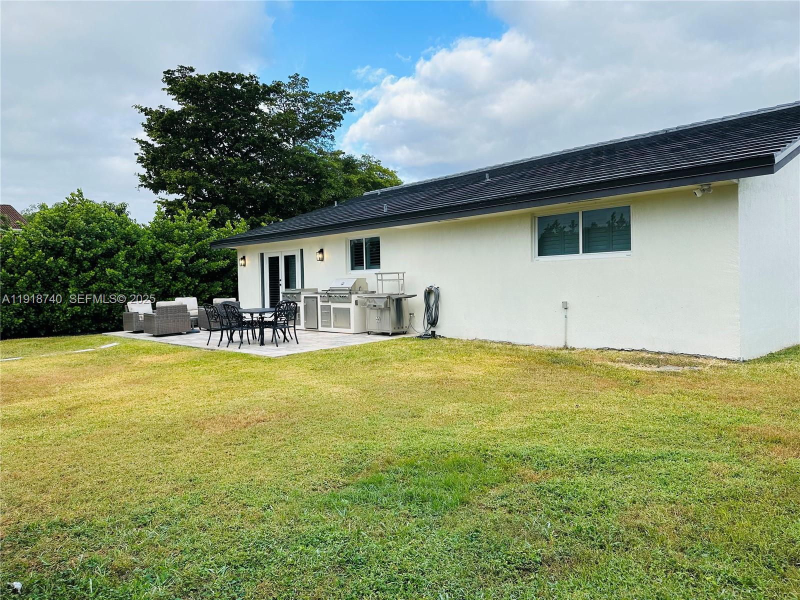 Charming 3 Bedroom/2.5 Bath, adjusted 2151sq.ft. Family Home on Corner Oversized Lot. Spacious Backyard. Completely fenced and privacy hedge. Located in a peaceful and sought-after neighborhood. Perfectly designed for modern living, this home offers a combination of comfort, style, and functionality, making it the ideal place to settle down with your family. NEW: driveway, front porch entrance, roof, outdoor kitchen, firepit, mature fruit trees. Sprinkler system. Complete Outdoor Oasis. Bright and Spacious Interiors, perfect for both everyday living and entertaining guests. All impact windows and doors have plantation shutters. New tile throughout. Renovated bathrooms and kitchen. Lots of natural light provides a warm, welcoming atmosphere. Room for Pool. Room for Boat or RV parking. 1 car garage with laundry facilities.