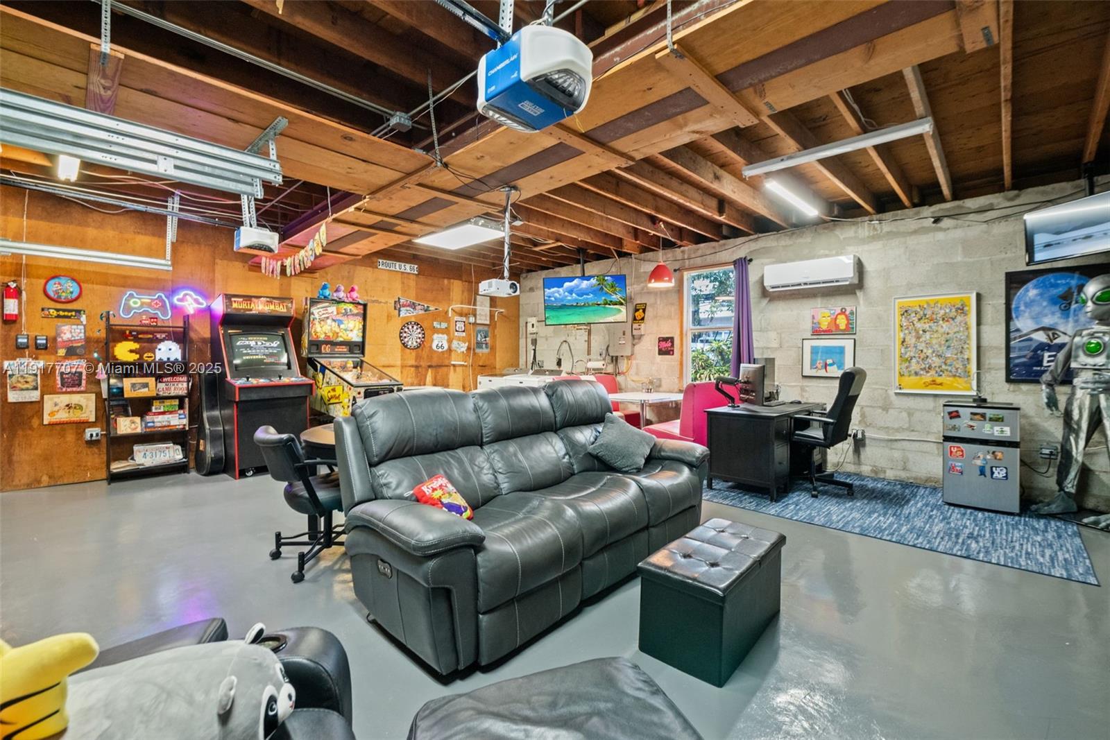 Step into this beautifully maintained and thoughtfully updated single-family home offering comfort, functionality, and flexible living space. Recently tented and freshly repainted, this property blends modern upgrades with timeless charm — ideal for those seeking move-in-ready convenience and extra space to grow. Inside, the home features raised ceilings and exposed beams that run through the living room, kitchen, and bedrooms, creating an airy, open feel. The spacious primary suite boasts an extra-large bedroom and walk-in closet, while the additional bedrooms offer comfort and flexibility — including a smaller third bedroom that still includes a full closet. Both bathrooms have been refreshed with tasteful touch-ups and modern updates, complementing the home’s clean, inviting style. Cooling is handled by a new central AC system, with mini-splits installed in the garage and guest bedroom for optimal climate control. The impact windows, generator, and 2017 roof add peace of mind, while the tankless water heater and upgraded electrical and plumbing systems (mostly PVC) provide long-term reliability. A standout feature of this property is the massive 900 sq. ft. two-car garage, fully updated with cement floors, new electrical (2021), laundry area, and a game-room-style setup perfect for hobbies, entertaining, or additional living space. A workshop area conveniently connects to the garage, offering ample storage and workspace for projects.