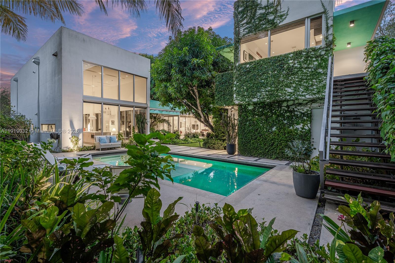 A masterpiece of contemporary living designed by renowned architect Roney Mateu, this exceptional residence seamlessly blends modern interiors with lush tropical gardens on a 15,000+ SF corner lot. The main house offers 5 bedrooms and 4 1/2 baths, with soaring 20 ft ceilings and expansive glass walls that fill the home with natural light and create a gallery-like ambiance. Verdant landscaping surrounds the property, creating a true private oasis. The tranquil garden with sparkling pool, outdoor kitchen, and a private outdoor shower provide an effortless connection to nature and the perfect setting for Miami’s year-round indoor–outdoor lifestyle. At the heart of the home is a sleek MiaCucina kitchen equipped with premium Wolf and Sub-Zero appliances, ideal for cooking, hosting, and modern family living. A rare highlight is the detached guest house, featuring its own kitchen, full bath, and a 2-car garage below - an ideal space for an artist’s studio, home office, gallery, or guest retreat. Perfectly situated in one of Miami’s most desirable family neighborhoods, this residence is within walking distance to Gulliver Schools and minutes from other top academies, parks, and lifestyle amenities.