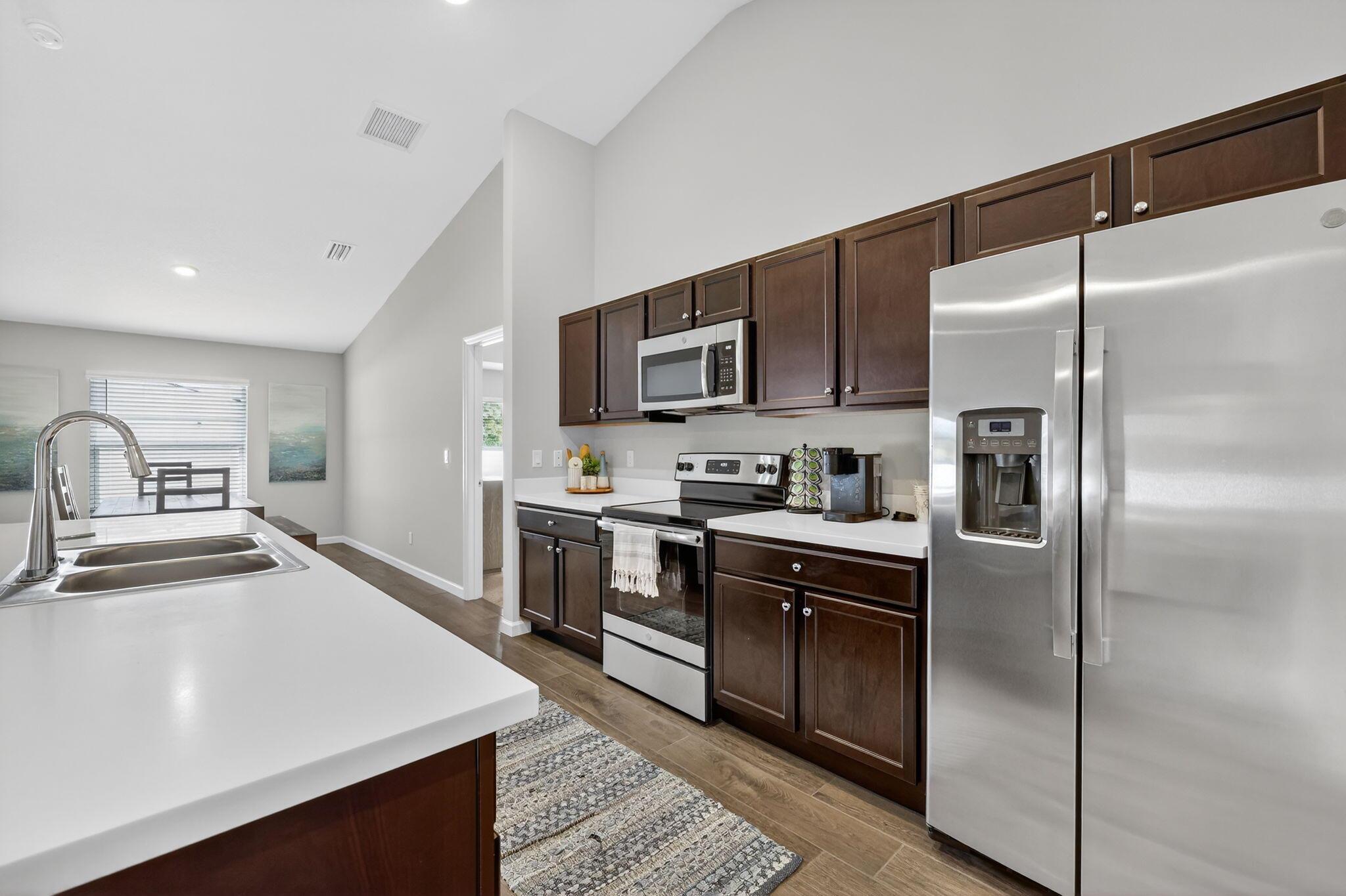 THE ORIGINAL VERONA MODEL BUILT BY AWARD WINNING SYNERGY HOMES. THE HOME IS LOADED WITH UPGRADES , FURNITURE INCLUDED. 4/2/2 WITH 1935 SQ FT OF LIVING AREA.HUGE COVERED PATIO, SOLID SURFACE COUNTER TOPS, STAINLESS STEEL APPLIANCES, MODEL IS 5 YEARS NEW. AWESOME LOCATION, EASY ACCESS TO FLORIDA TURNPIKE,