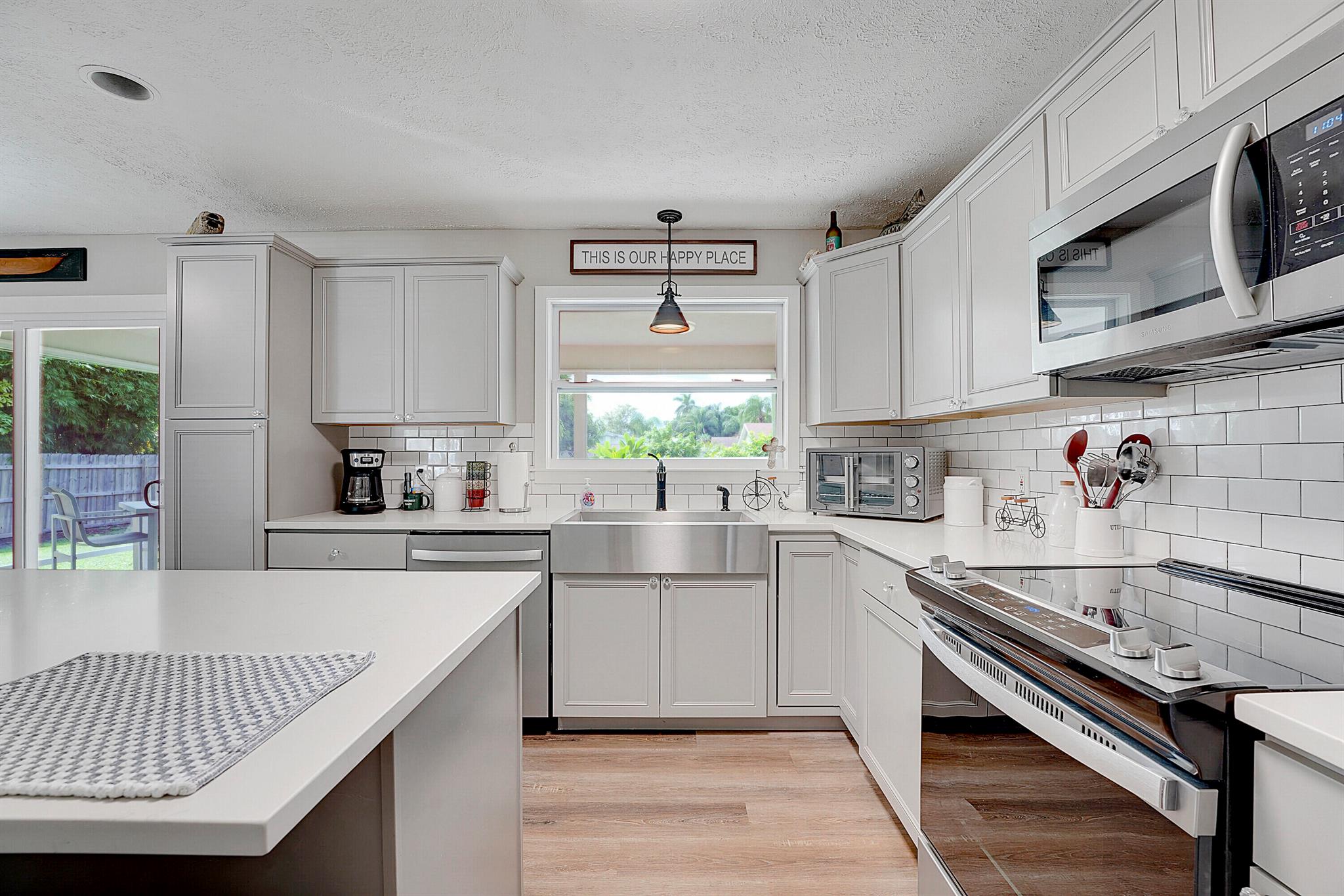 No HOA in South Stuart!! Come see this remodeled fenced in with new back patio home today. Seller has updated the home with a 2022 Roof, 2022 Siding and paint, 2022 Flooring, Kitchen, Water Heater 2021, Ac compressor replaced 2024!! Pride of ownership shows when you walk in. Shed in the back stays with the home and there is a dog run separate from the backyard for your pets if needed. Septic tank pumped recently as well. There is literally nothing you need to do to this house to move in. Move right in with everything already done for you today!