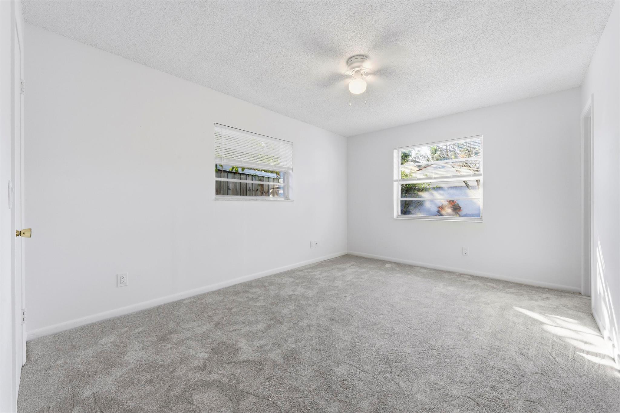 Step into this move-in-ready, beautifully renovated home featuring a bright, modern interior and solid CBS construction. The updated kitchen shines with shaker cabinetry, quartz countertops, and ample workspace--perfect for cooking and entertaining. Enjoy durable tile flooring in the main living areas and brand-new carpet in all bedrooms for added comfort. Both bathrooms have been refreshed with updated vanities and toilets, and the entire interior has been freshly painted. Peace of mind comes easy with full hurricane protection via accordion shutters, plus a new 2025 electric panel and modernized switches and receptacles throughout. Relax on the expansive covered and screened-in back patio, where you can unwind and enjoy the coastal breezes. Huge driveway fits up to six vehicles! Must see