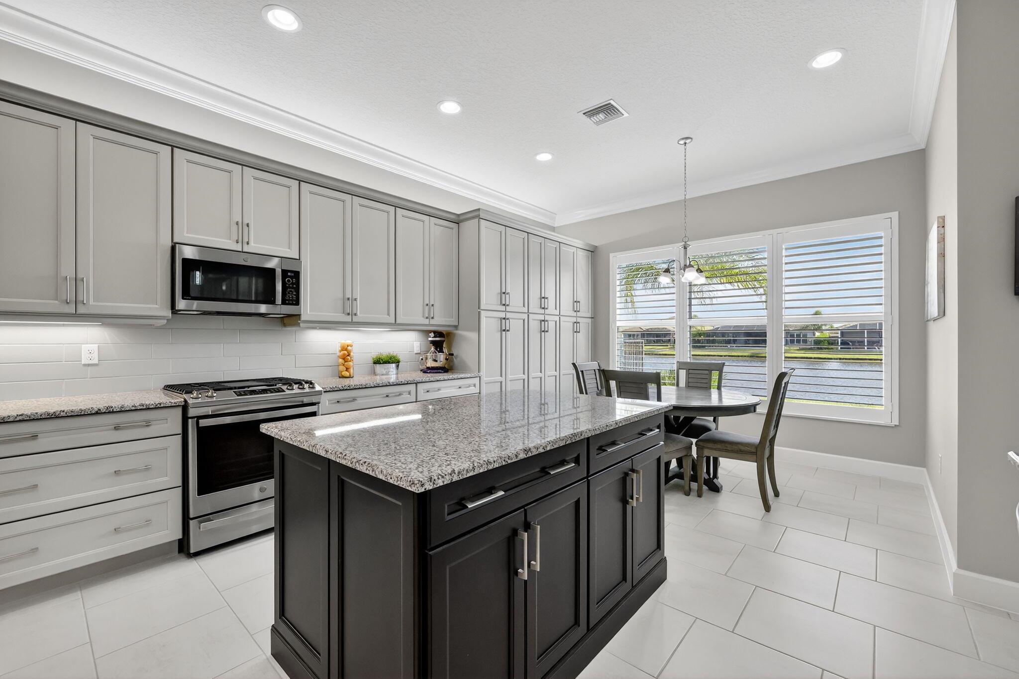 Live the Valencia Riverland Lifestyle in Style. Step into this stunning Caroline model, on a lakefront lot. Designer upgrades and thoughtful details create a space that feels both elegant and inviting. Imagine mornings with sunrises and lake views, afternoons entertaining in your open concept living area, and evenings unwinding in your luxurious primary suite. Highlights include a Gourmet kitchen with upgraded cabinetry, granite counters & GE Profile stainless steel appliances. Designer finishes throughout for a polished, modern look. Flexible spaces, perfect for guests, hobbies, or a home office. Covered patio with room for a pool -- design your dream backyard oasis. Both garages have been extended 2 feet.
