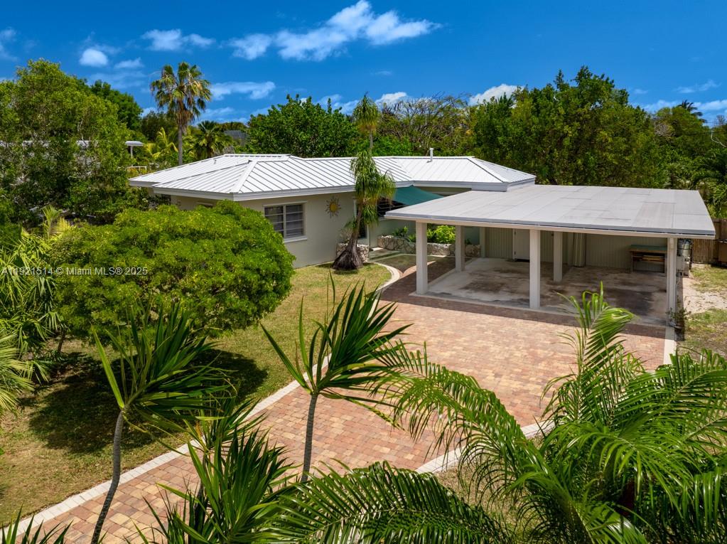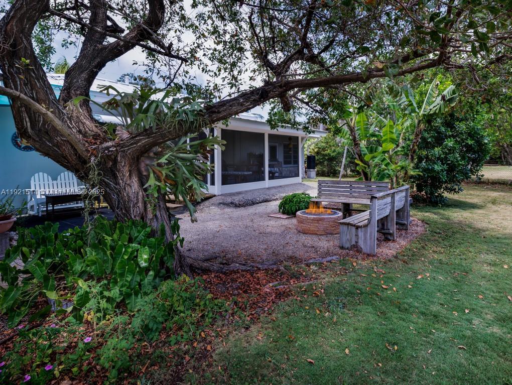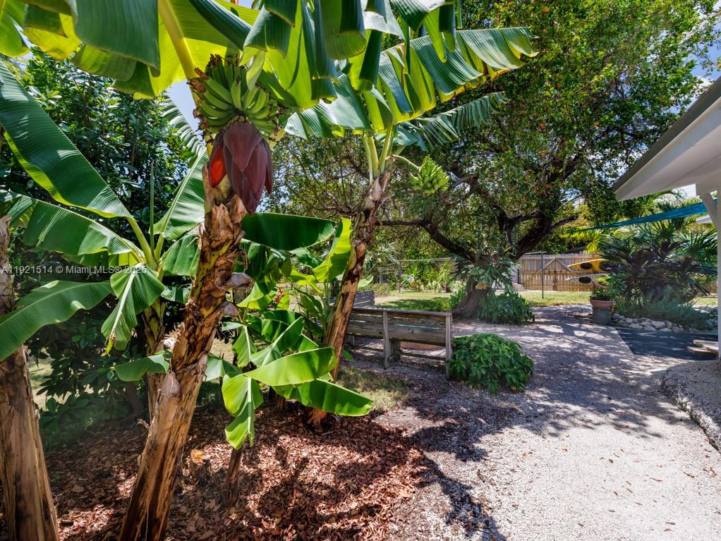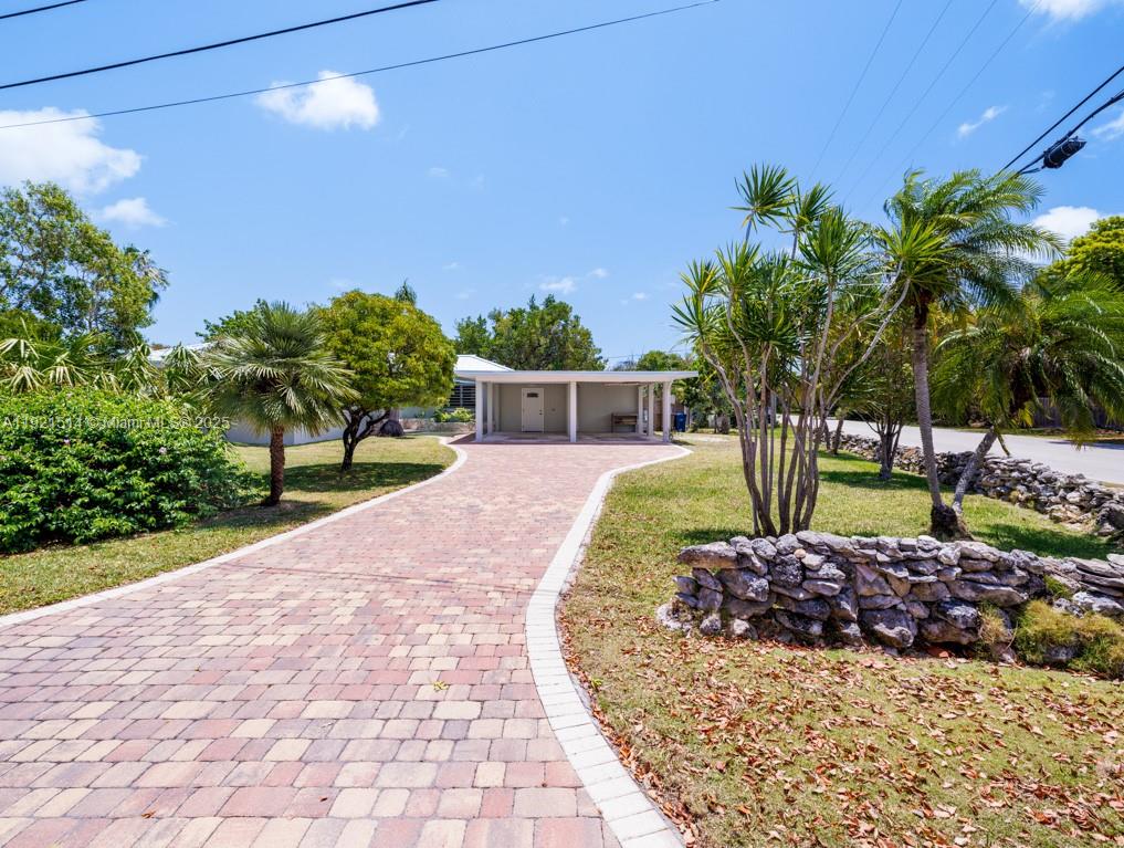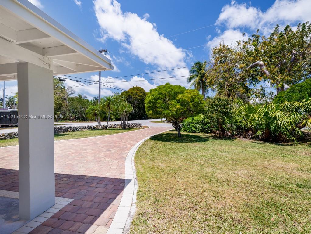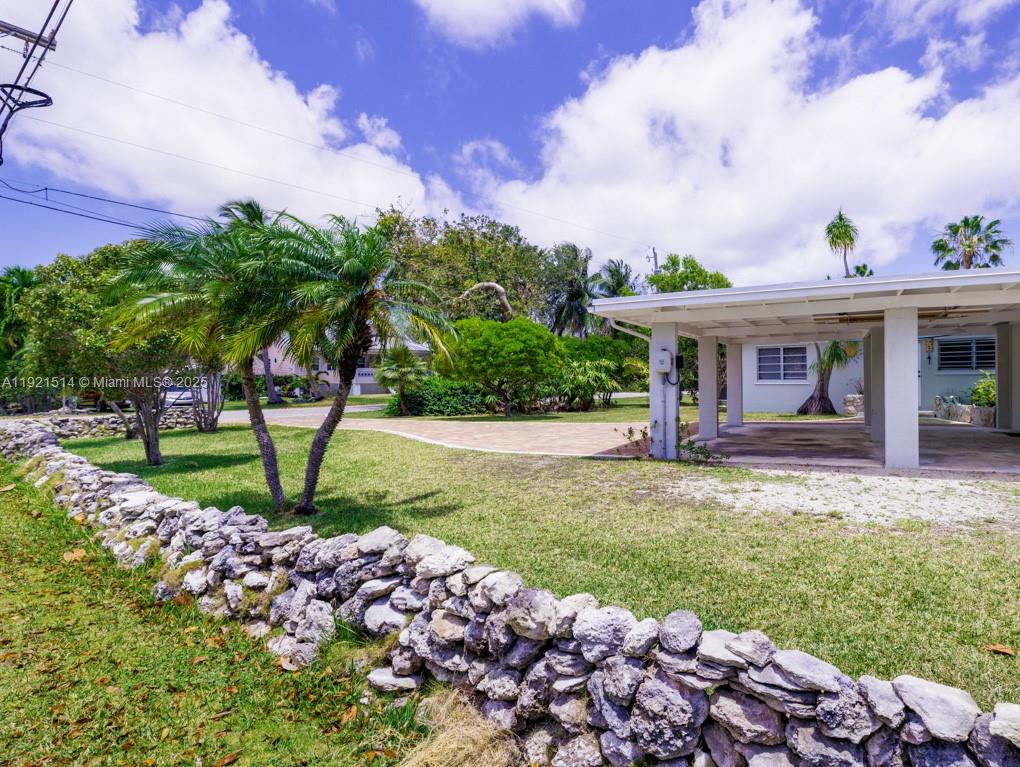 This 25,000 sq. ft. property has plenty of room to add a pool and/or tiki hut, park an RV, boat trailers, so much more! Over ½ acre, the 4 lots are bordered by Coconut Hwy. to the north, Avenue B to the west, and Hibiscus Ln. to the south from which vehicles can access the large, fenced portion of the back yard. A signature rock wall and paver drive enhance the property. Step inside the well-maintained 1497 sq. ft. CBS home and you'll feel 'old Keys' charm mixed with the new. The large Florida room can be used for guests or gatherings; the inviting porch is screened on three sides. The 'tub room' features a whirlpool tub with the potential of adding a 2nd bath. Beautiful cypress accents the ceilings and many of the interior walls; new quartz counters and a tiled backsplash complement the original cypress kitchen cabinets.