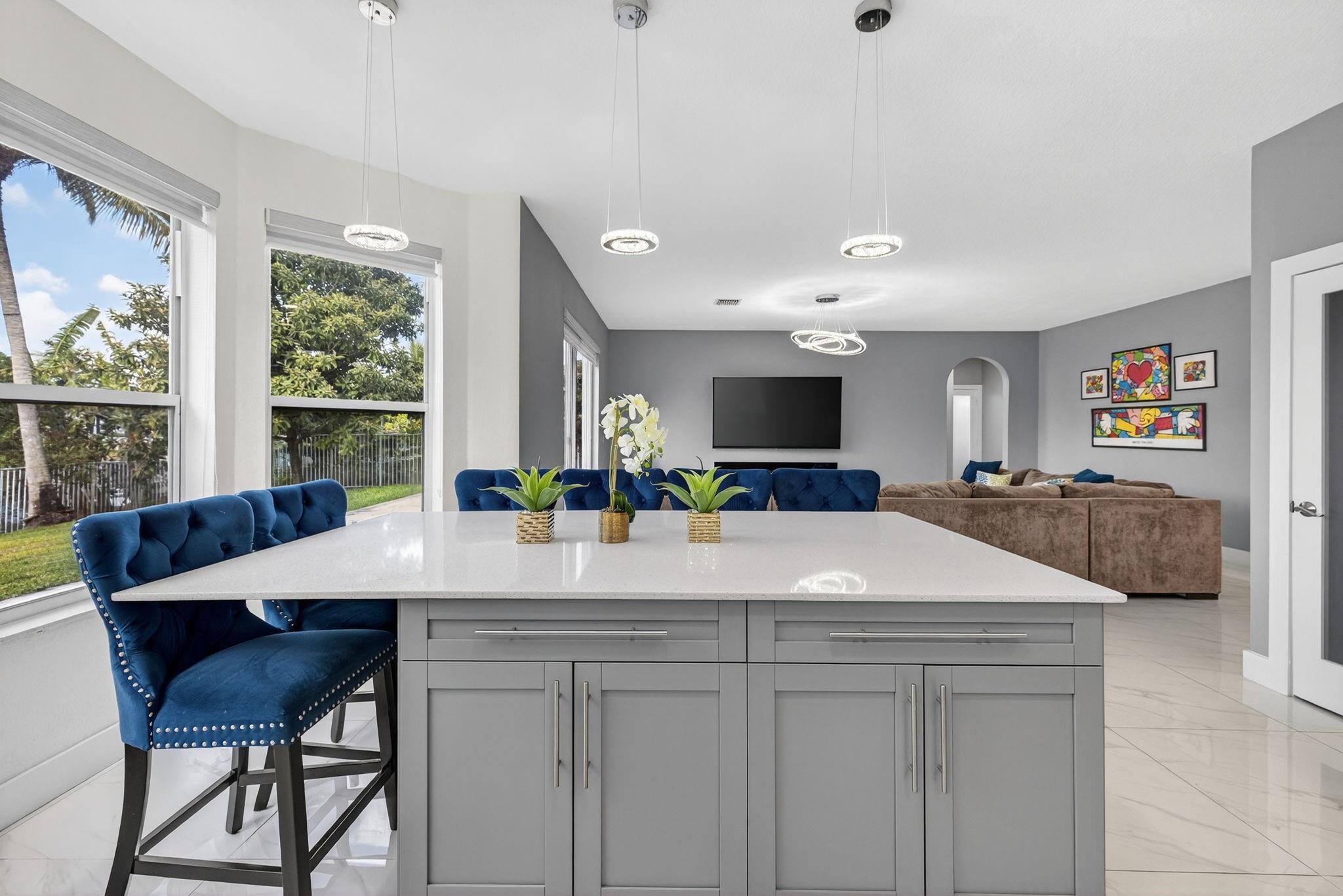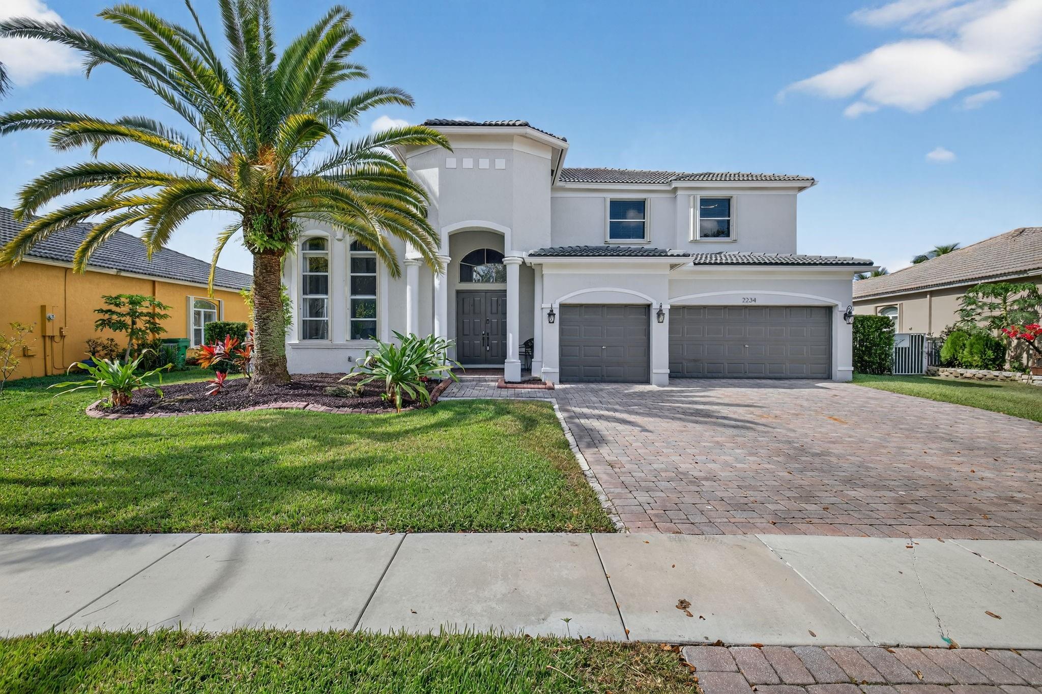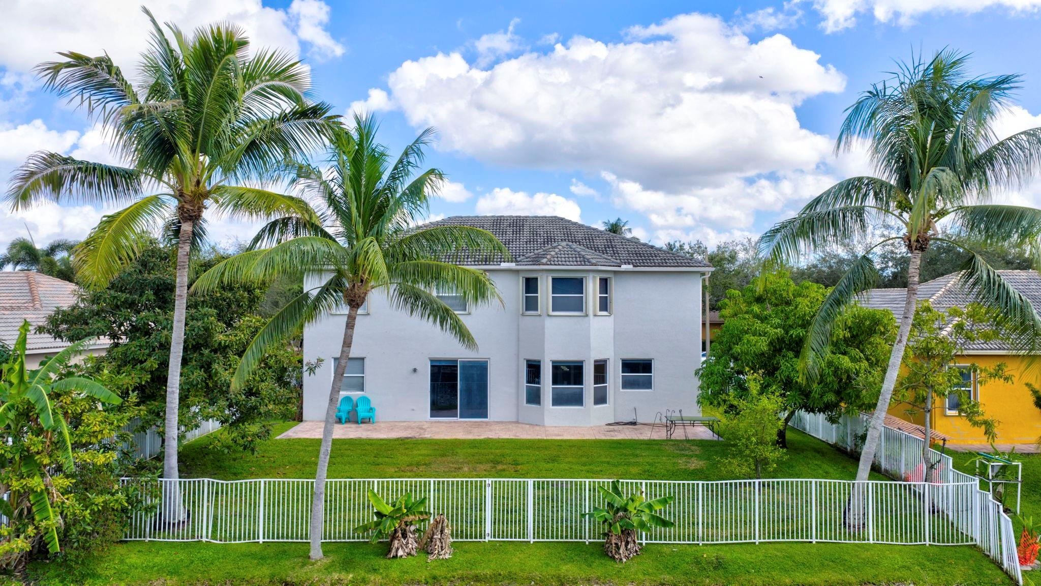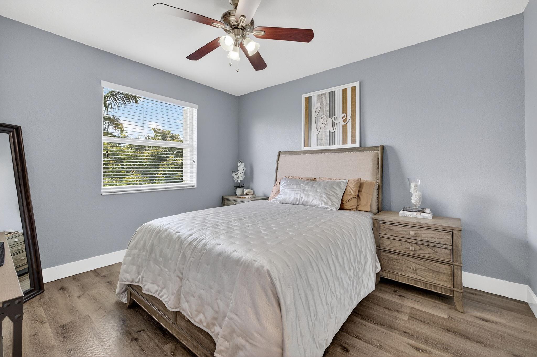 Beautifully updated 5 BD, 3 BA lakefront home with a spacious layout and a convenient bedroom & bathroom on the 1st floor. Gorgeous remodeled kitchen has quartz counters, SS appliances, shaker cabinets & a big island that flows into a huge family room perfect for entertaining. Spacious primary suite offers a sitting area, closet cabinetry, a spa-inspired bathroom with a freestanding tub, frameless shower, dual vanities & modern finishes. Upstairs, you'll find a versatile loft that works beautifully as a den, office, playroom, or study area. Upgrades include renovated bathrooms, new tile & LVP flooring, modern lighting, 2 newer AC's & accordion shutters. Low HOA fees $166 incl: community pool, gym, tennis, basketball, playground & park. Monarch Lakes provides access to top tier schools.