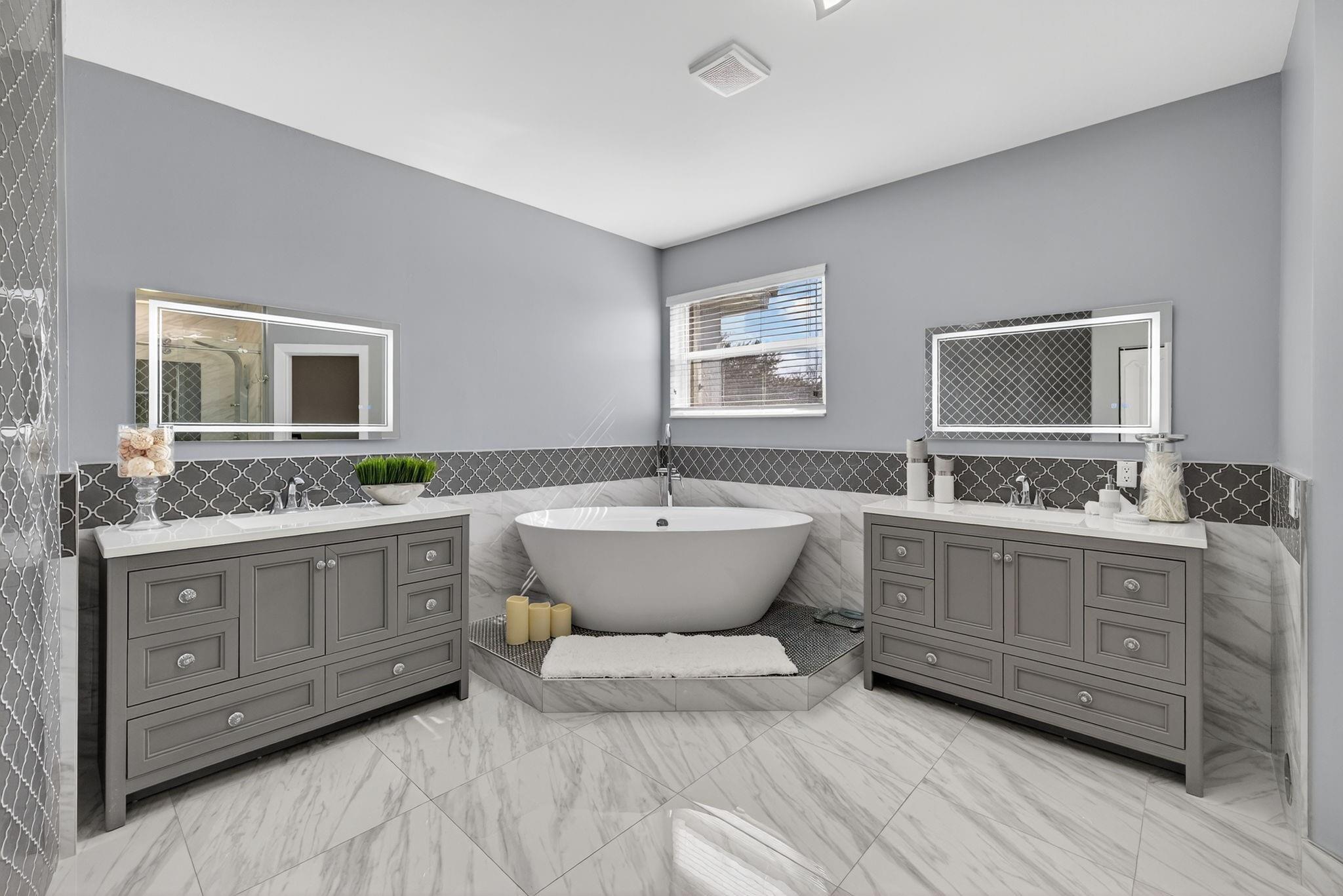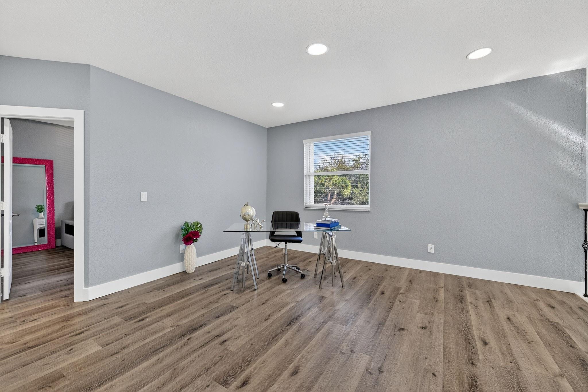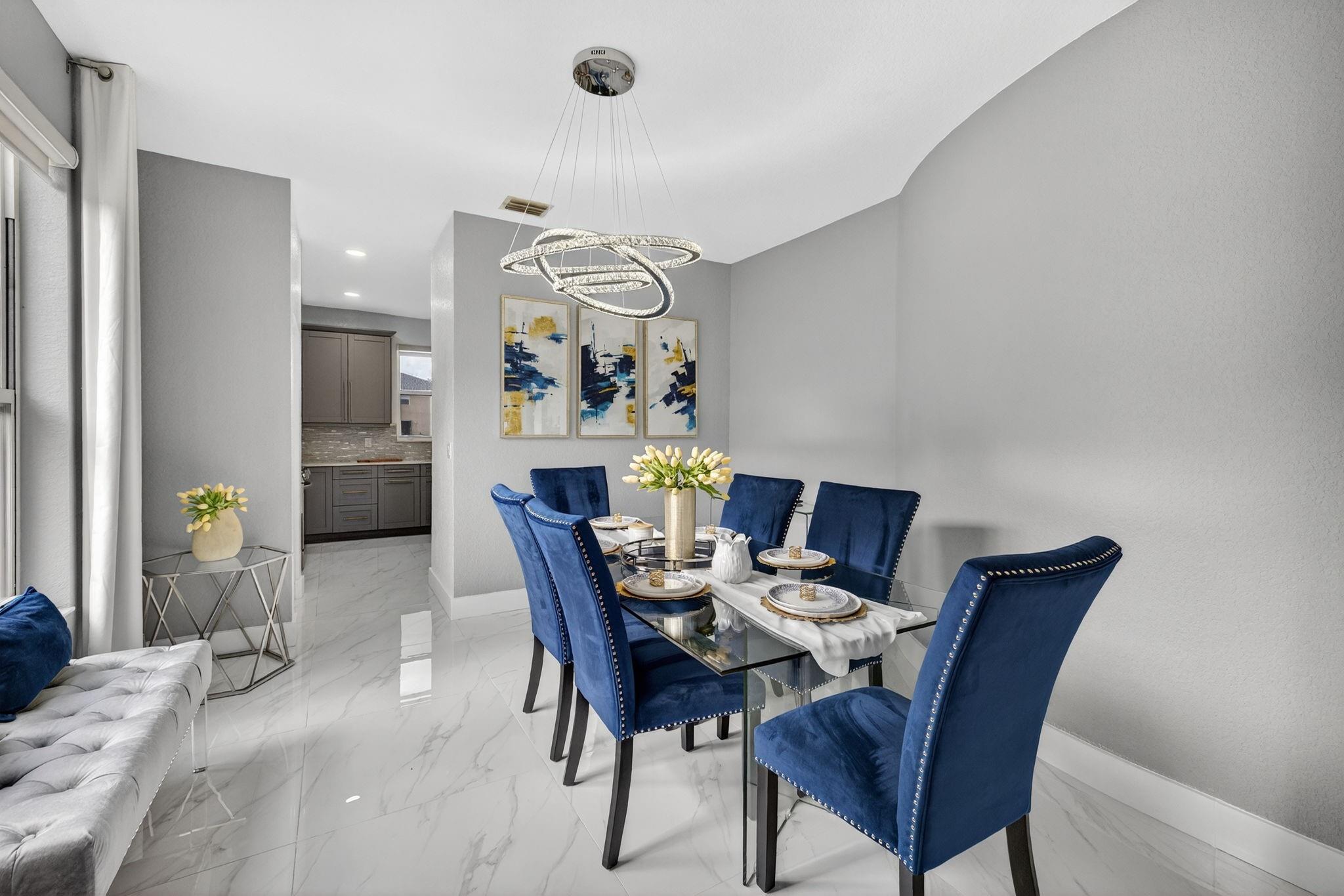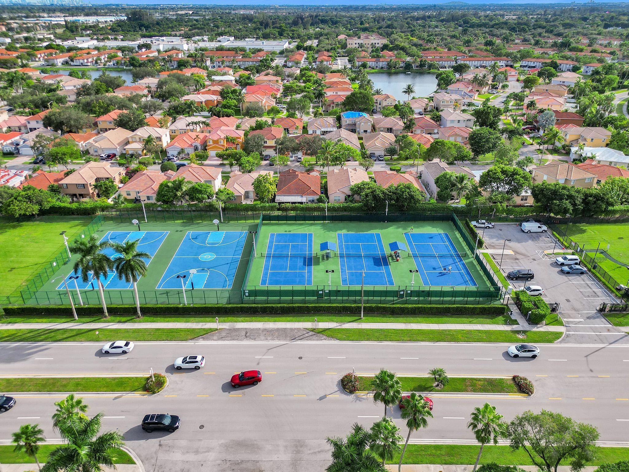 Beautifully updated 5 BD, 3 BA lakefront home with a spacious layout and a convenient bedroom & bathroom on the 1st floor. Gorgeous remodeled kitchen has quartz counters, SS appliances, shaker cabinets & a big island that flows into a huge family room perfect for entertaining. Spacious primary suite offers a sitting area, closet cabinetry, a spa-inspired bathroom with a freestanding tub, frameless shower, dual vanities & modern finishes. Upstairs, you'll find a versatile loft that works beautifully as a den, office, playroom, or study area. Upgrades include renovated bathrooms, new tile & LVP flooring, modern lighting, 2 newer AC's & accordion shutters. Low HOA fees $166 incl: community pool, gym, tennis, basketball, playground & park. Monarch Lakes provides access to top tier schools.
