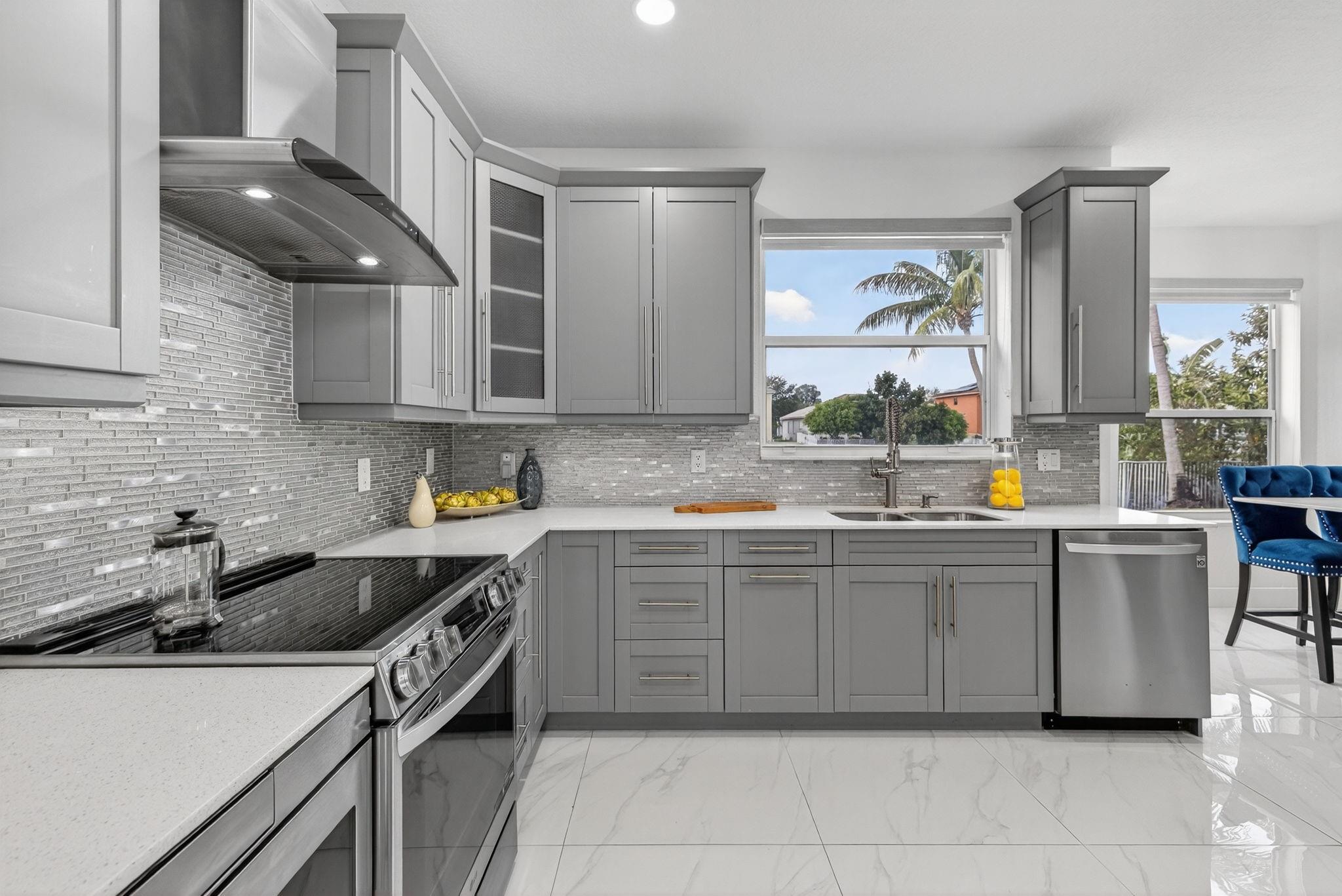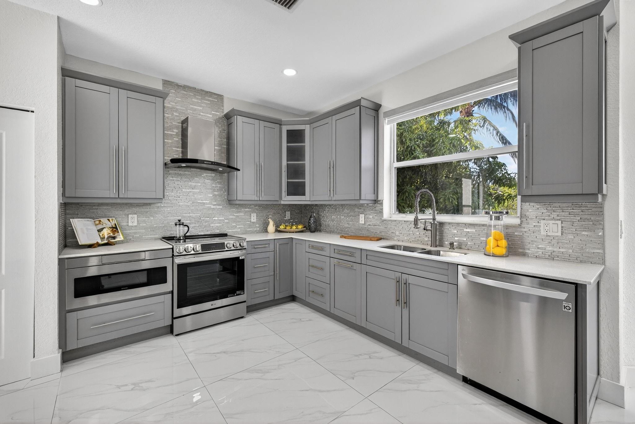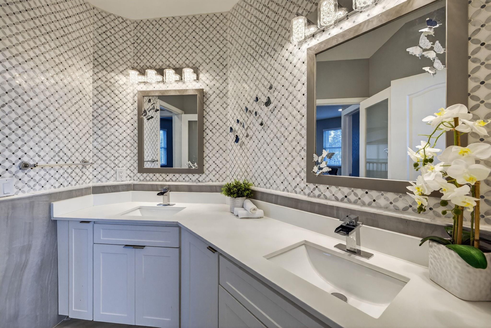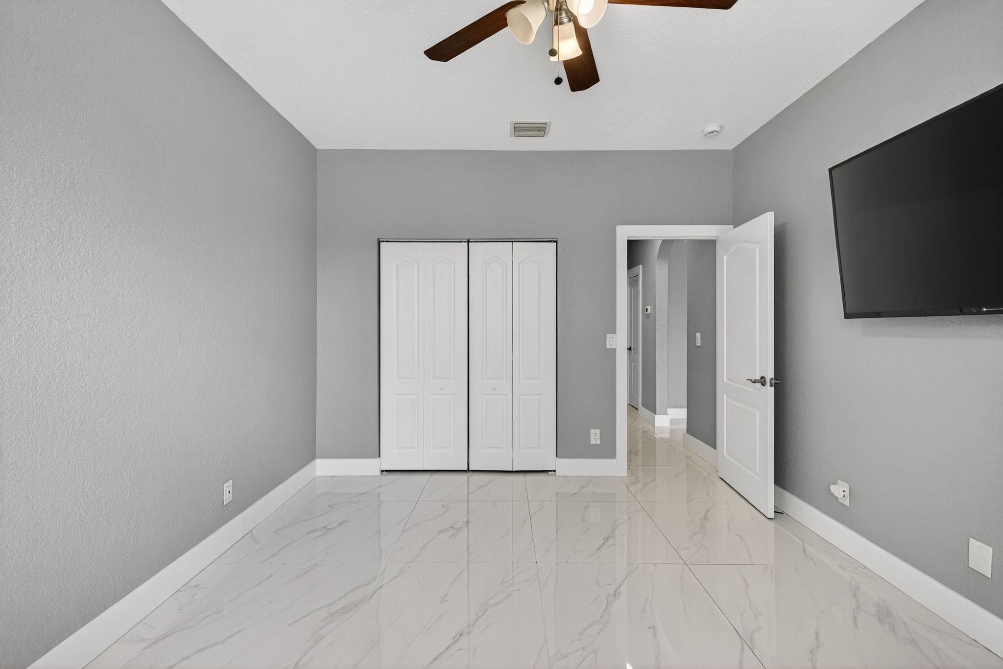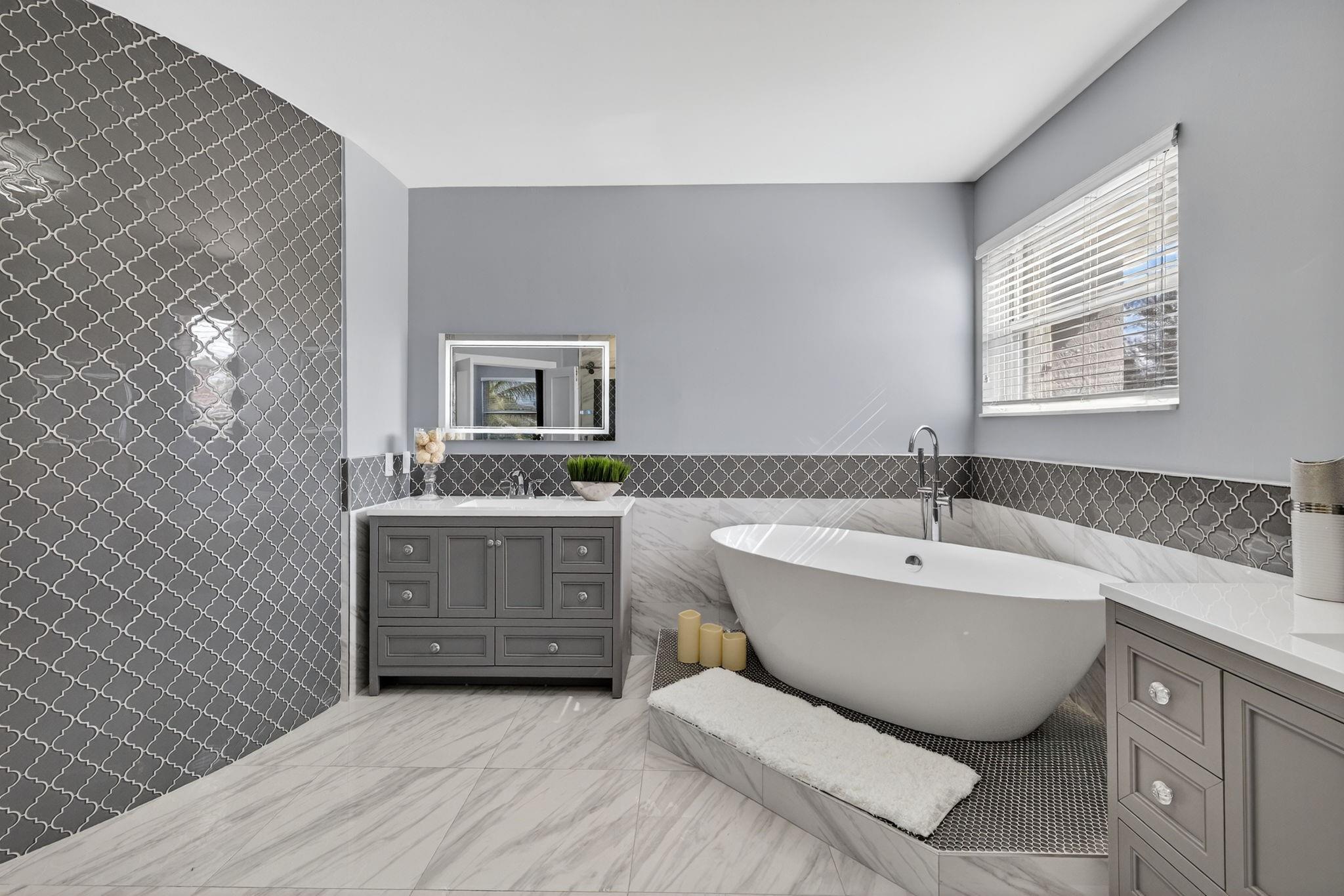 Beautifully updated 5 BD, 3 BA lakefront home with a spacious layout and a convenient bedroom & bathroom on the 1st floor. Gorgeous remodeled kitchen has quartz counters, SS appliances, shaker cabinets & a big island that flows into a huge family room perfect for entertaining. Spacious primary suite offers a sitting area, closet cabinetry, a spa-inspired bathroom with a freestanding tub, frameless shower, dual vanities & modern finishes. Upstairs, you'll find a versatile loft that works beautifully as a den, office, playroom, or study area. Upgrades include renovated bathrooms, new tile & LVP flooring, modern lighting, 2 newer AC's & accordion shutters. Low HOA fees $166 incl: community pool, gym, tennis, basketball, playground & park. Monarch Lakes provides access to top tier schools.