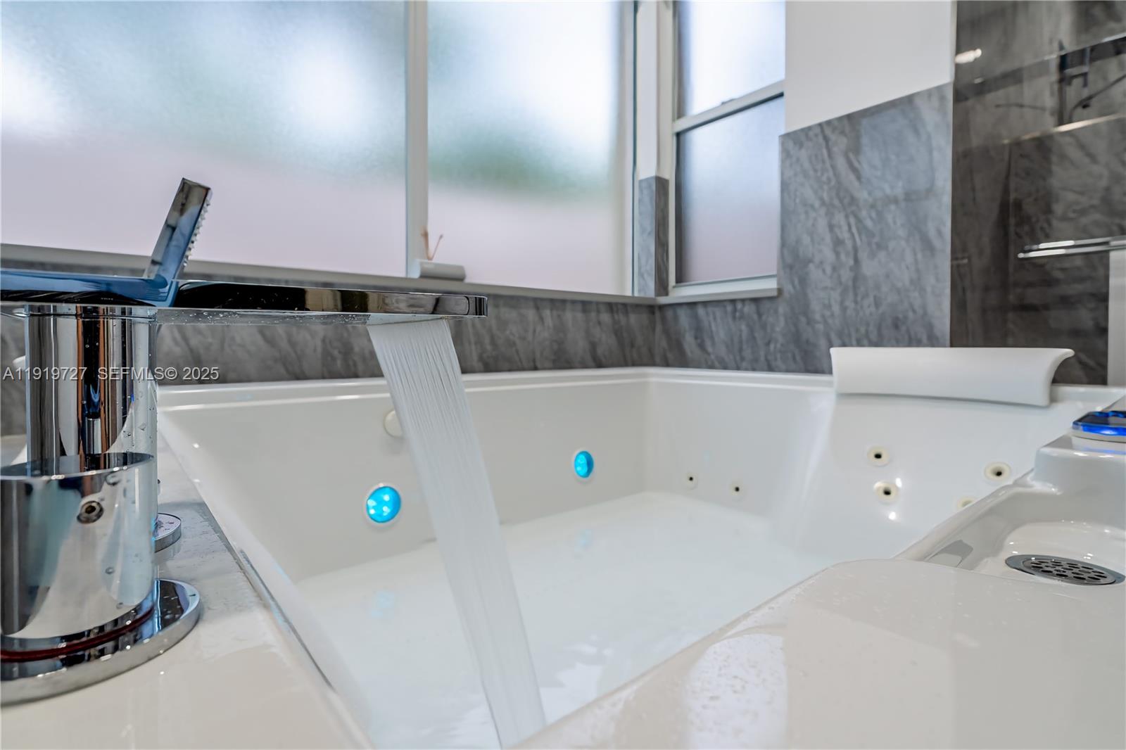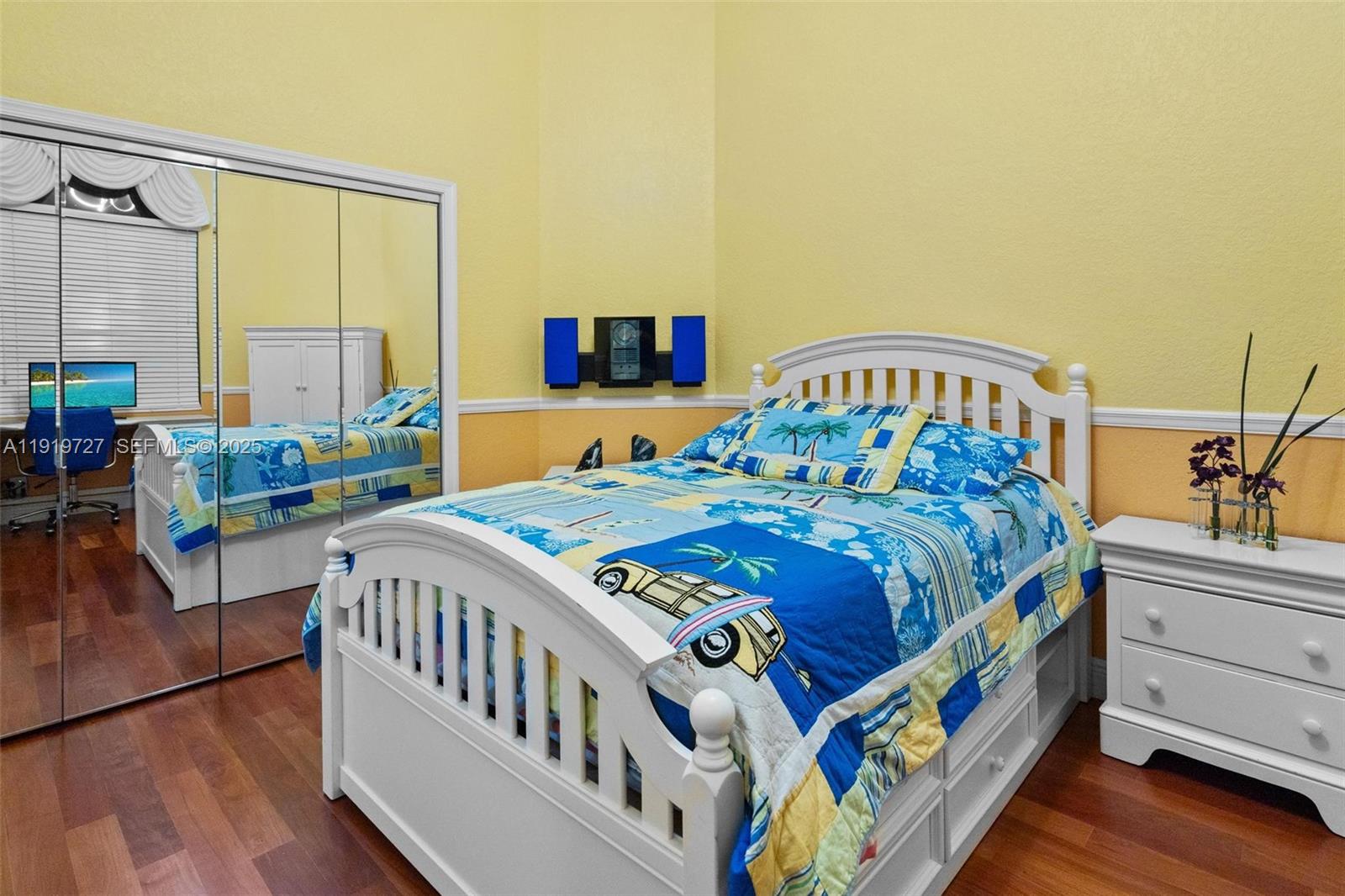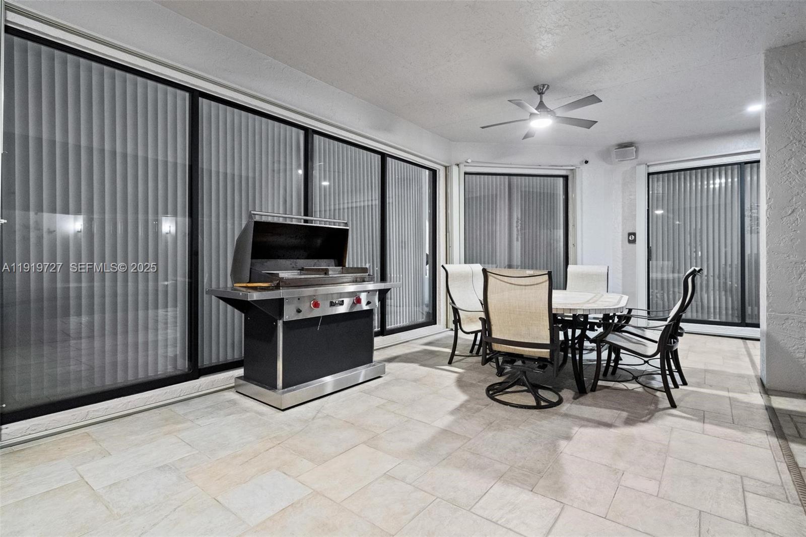 This remarkable 4,828-square-foot, five-bedroom, four-bath residence blends elegance and comfort, beautifully set on a private corner lot. Imperial White/Grey granite floors flow through the main living areas, creating a refined welcome the moment you enter.The private primary wing offers calming pool views, a spa-inspired bath, and dual California Closets, while a nearby office/den provides the perfect space for work or quiet retreat. A thoughtful three-wing layout ensures privacy for everyone. Family bedrooms feature custom closets and beautifully finished baths, and the dedicated Wellness Wing includes a custom Finlandia sauna, home gym, and full bath. An impressive guest suite serves as a true secondary primary. At the center, soaring ceilings connect the formal living, dining, and oversized family room. The gourmet kitchen showcases premium appliances, Amadeus granite, and custom cabinetry for everyday living and entertaining.Outdoors, the corner lot becomes a private tropical oasis with a heated saltwater pool, spa, screened patio, and lush landscaping. Additional highlights include a custom finished garage, Tesla charging station, and integrated smart-home technology — combining convenience and modern living.