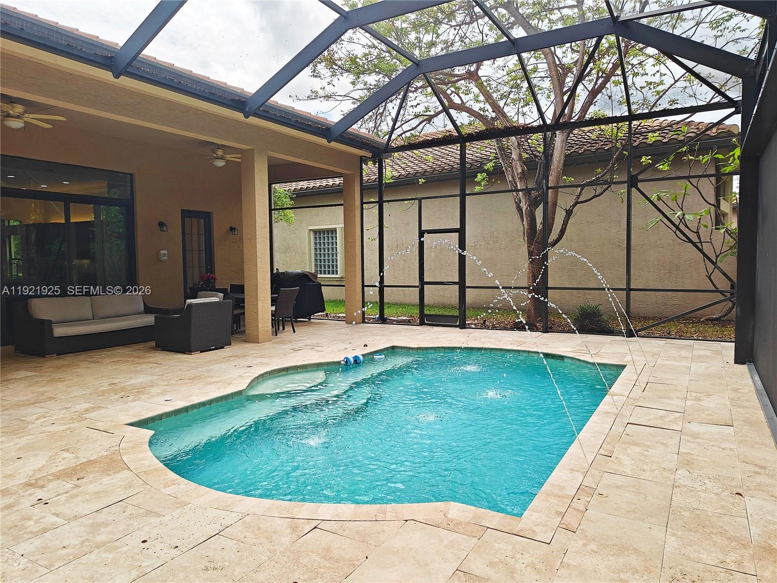 Nestled in the guard-gated, resort-style Bridges of Delray, this single-story Paseo model, built in 2014 and hardly lived in, is in like-new condition and sits on a rare private ¼-acre corner lot offering unmatched privacy with no neighbors to the right, behind, or directly in front. Meticulously maintained, the home features 3 bedrooms, 3.5 baths, plus a large den/office with windows and a door (can be used as a 4th bedroom), a gourmet kitchen with 2 islands, upgraded appliances, wet bar, porcelain and bamboo floors, central vacuum with kitchen sweep (toe-kick dustpan), hurricane-impact windows and doors, and a whole-house generator connected to the city’s natural gas supply for seamless, unlimited runtime during any outage. Living spaces flow seamlessly to the outdoors, which boast a heated whirlpool pool with a dual pump system, a covered screen-enclosed patio, cabana bath, outdoor shower, and an extra-long paver driveway on a professionally landscaped ¼-acre lot with automatic HOA sprinklers. Architectural exterior lighting highlights the home’s design and mature landscaping at night. Residents enjoy resort-style amenities including a clubhouse, fitness center, Har-Tru clay tennis courts with tennis pro, indoor and outdoor basketball, resort pool and hot tub, poolside restaurant, yoga studio, sauna, splash pad, and playground. Just 3 miles to Delray Marketplace and 12 miles to the ocean. Move-in ready, this home perfectly blends privacy, luxury, and resort-style living.
