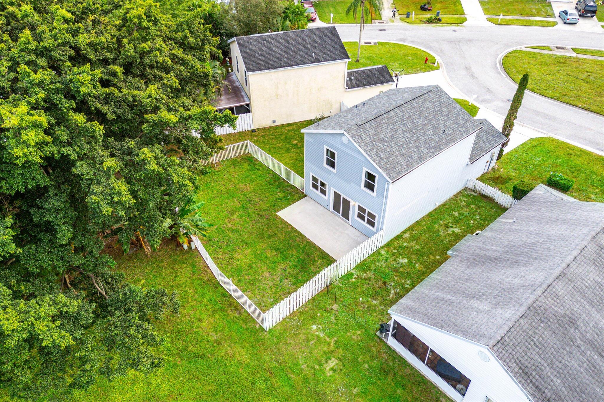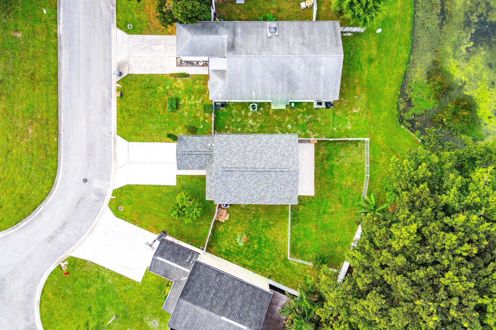 Welcome home to this charming three-bedroom, two-and-a-half-bath lakefront home with a one-car garage, located in the desirable community of Palm Club West. The property features a very spacious yard with room for a pool, brand-new roof (2024) and full impact windows and sliders (2021), offering peace of mind and long-term value. The location of this home is exceptional, offering a quiet and friendly neighborhood setting on a cul-de-sac with an elementary school only a ten-minute walk away. From the moment you enter, you'll notice the refined touches throughout, including diagonally laid tile flooring in the main living areas, updated trim, and fresh interior paint. The bright and airy kitchen features decorative solid-wood shaker cabinetry with elegant crown molding and soft-close