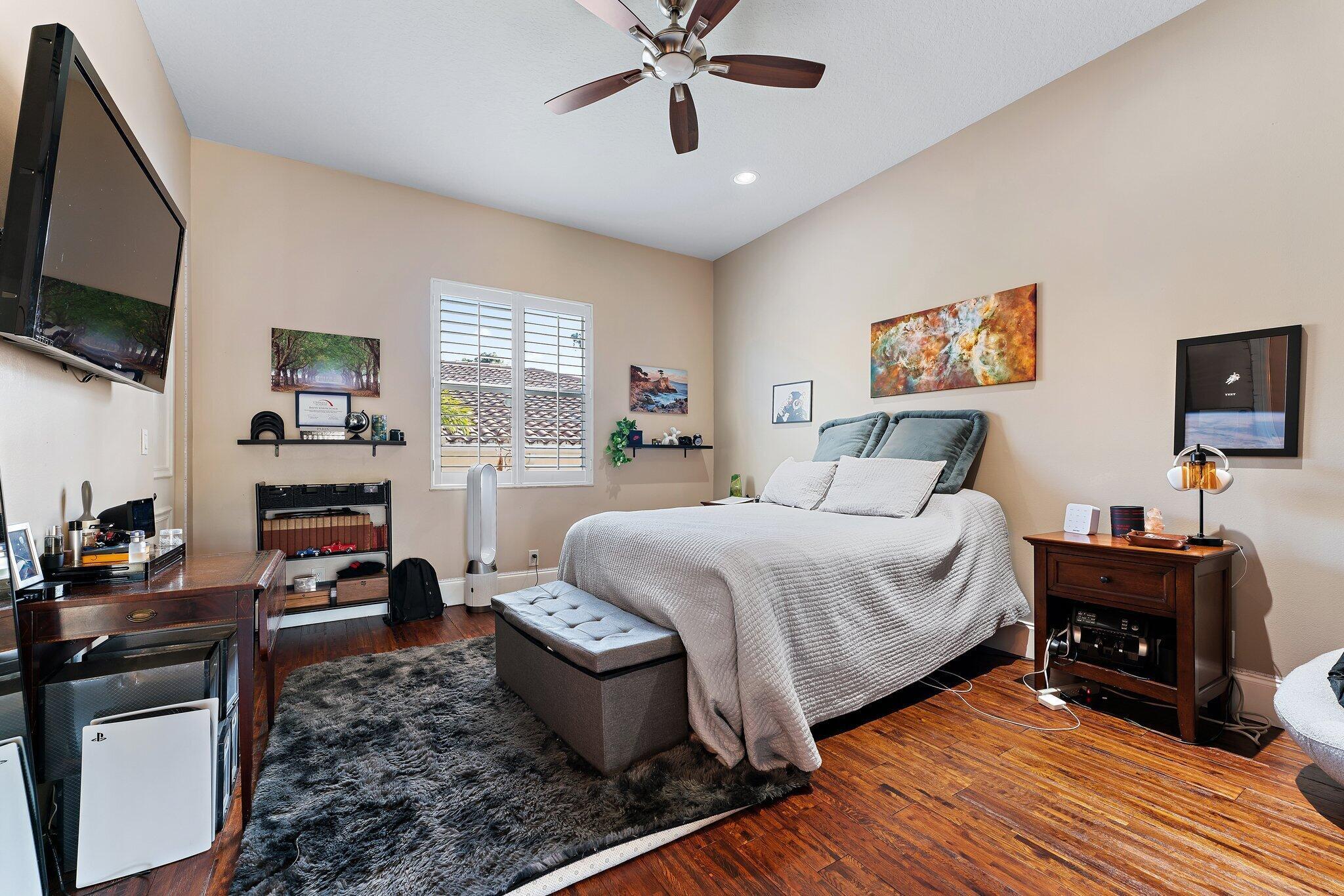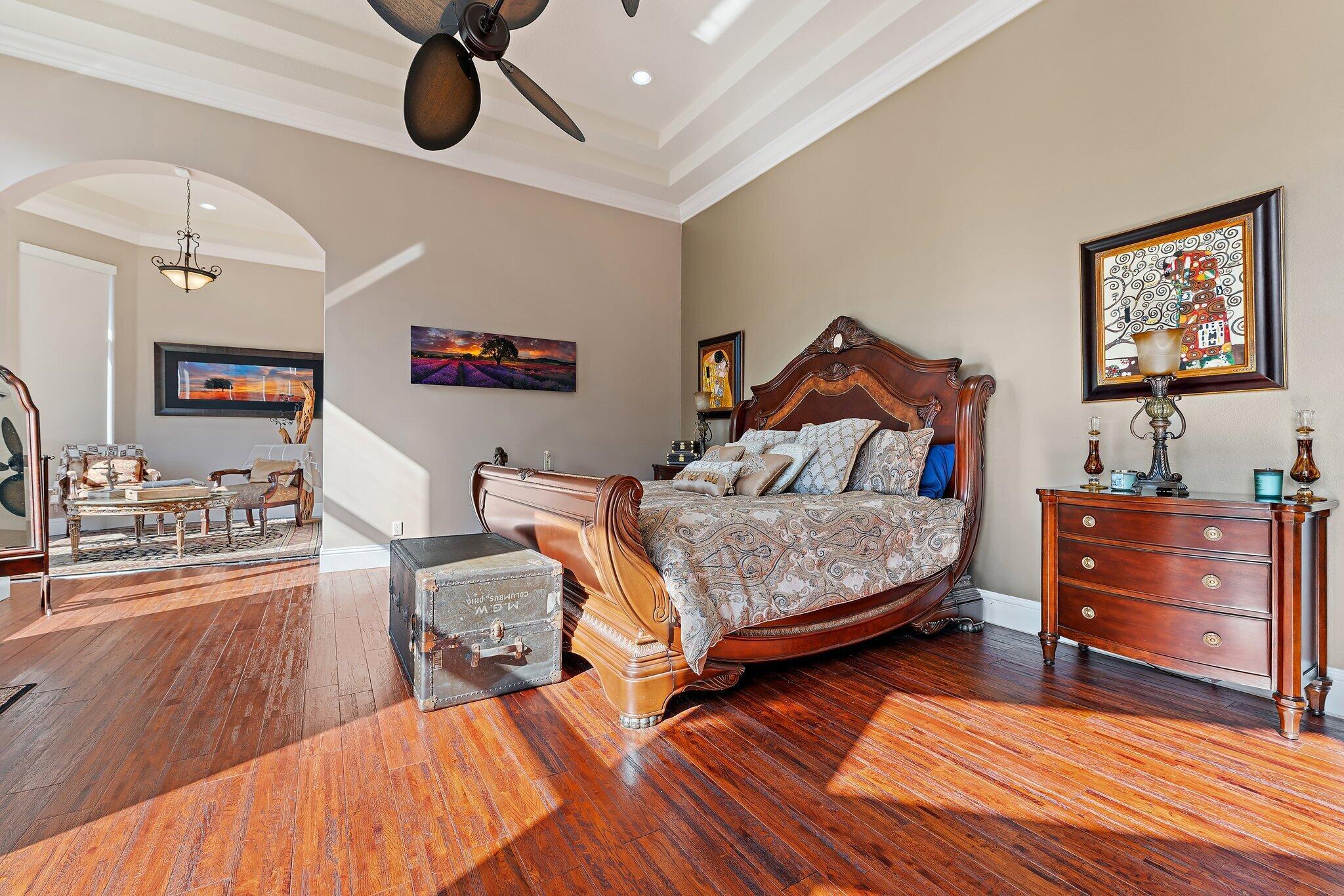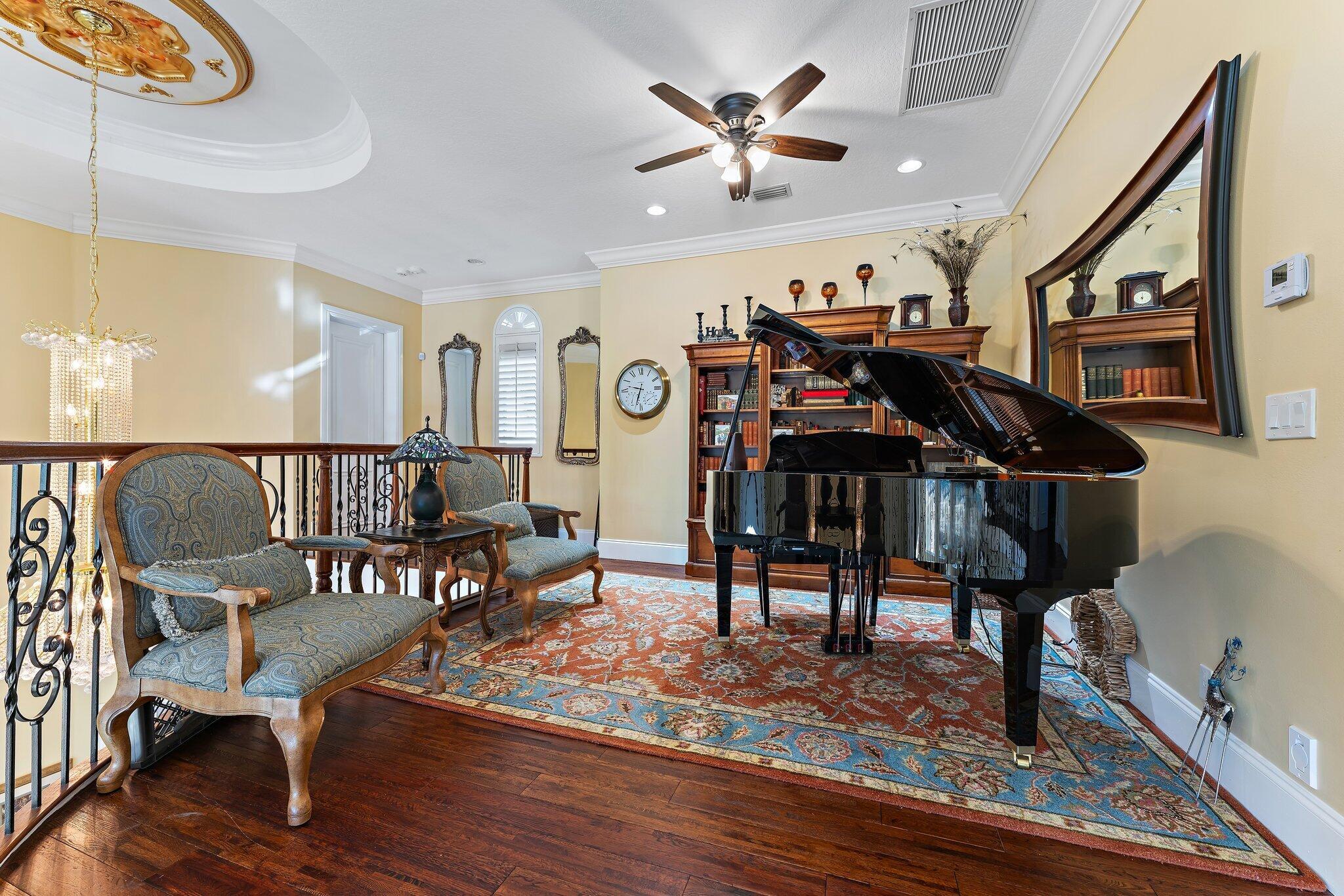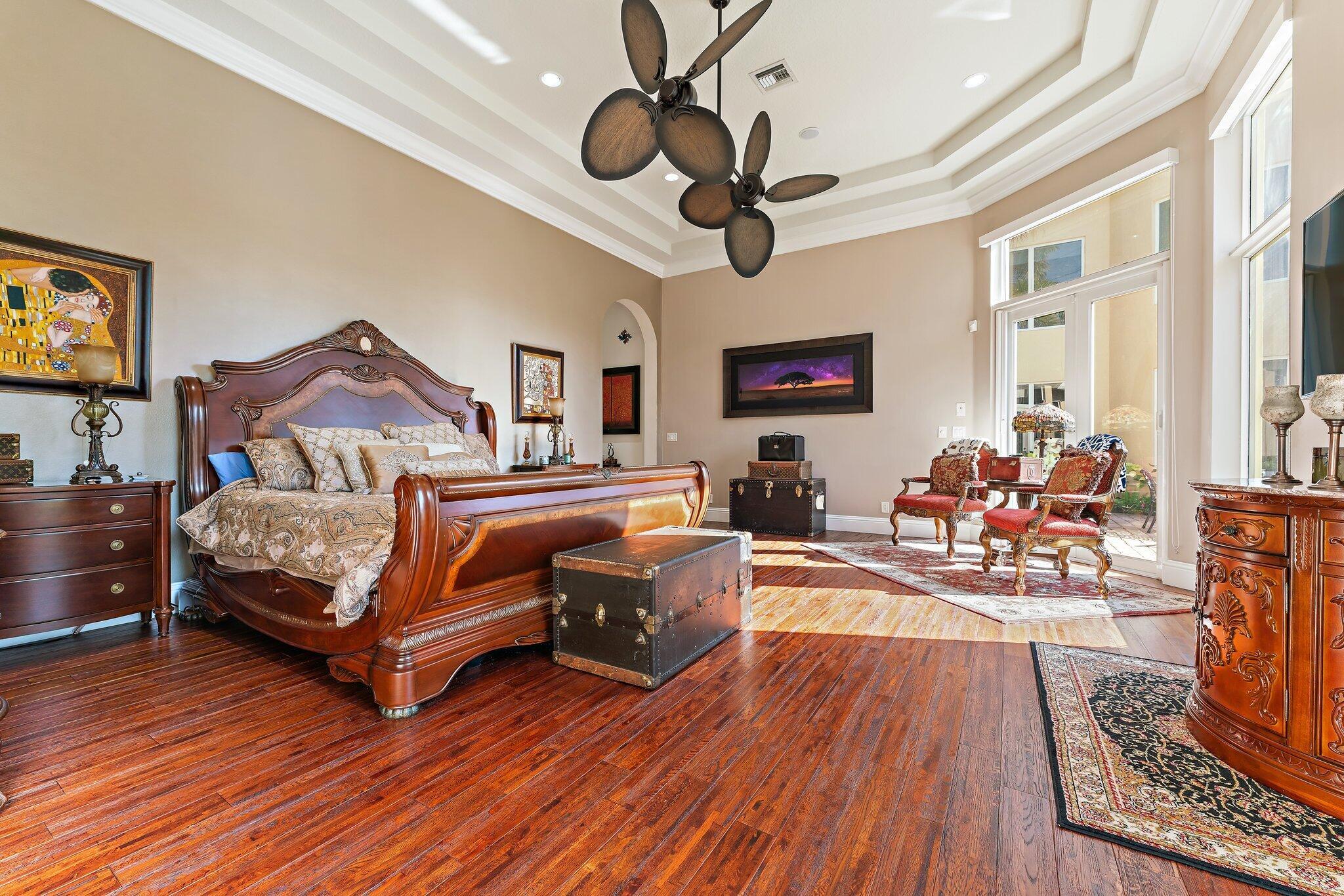 Enjoy the best in luxury living without the high costs of a golf club community. San Michele is a 90 home luxury community located in the heart of Palm Beach Gardens with 24/7 manned and gated security, two lighted tennis courts, a community pool, playground, fitness center, and clubhouse. This home boasts a huge first floor primary suite with separate his/hers bathrooms. One guest suite also occupies the first floor. The 2nd level has four bedrooms plus a theatre room and loft area. Call today to arrange a private showing of this unique and special property.