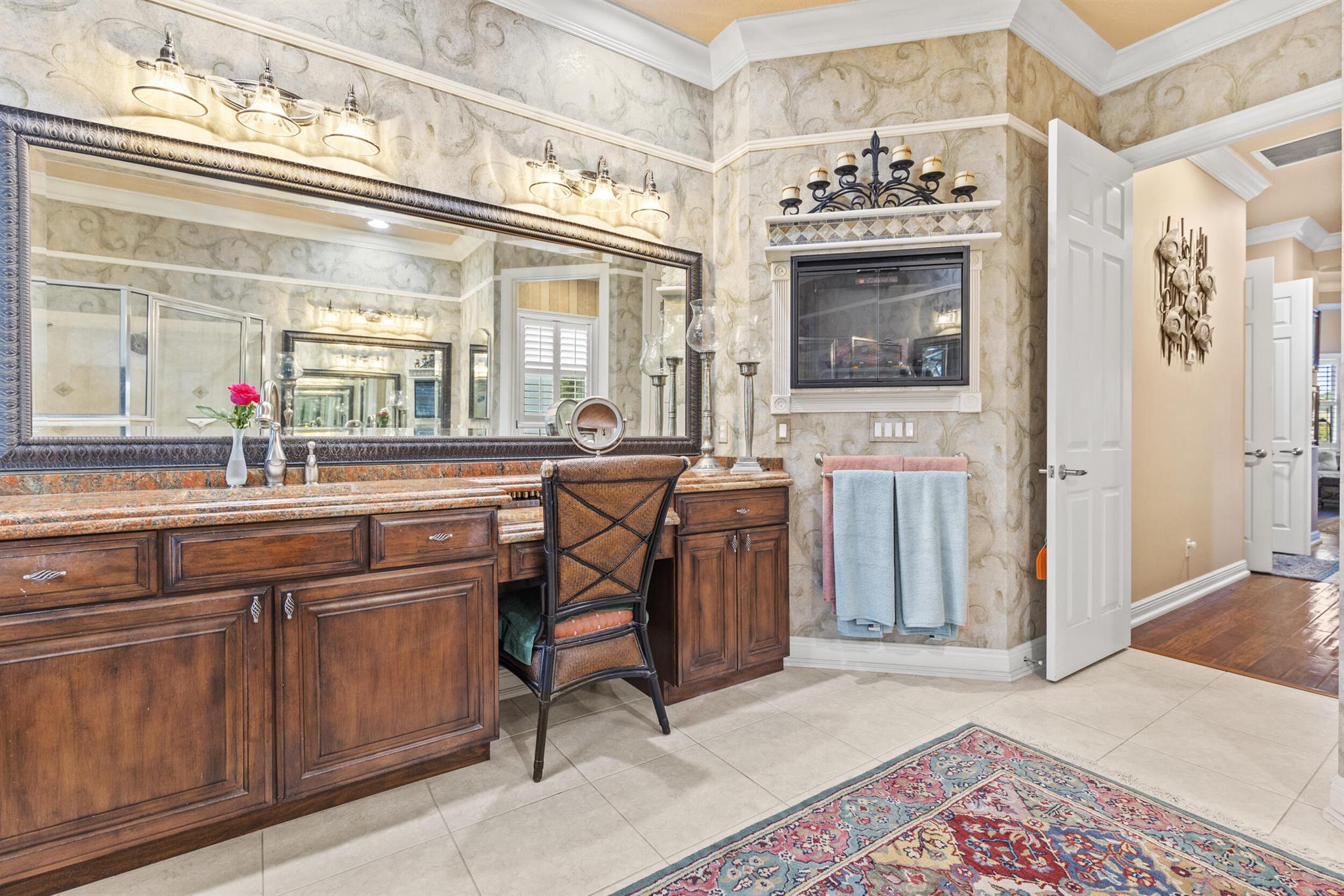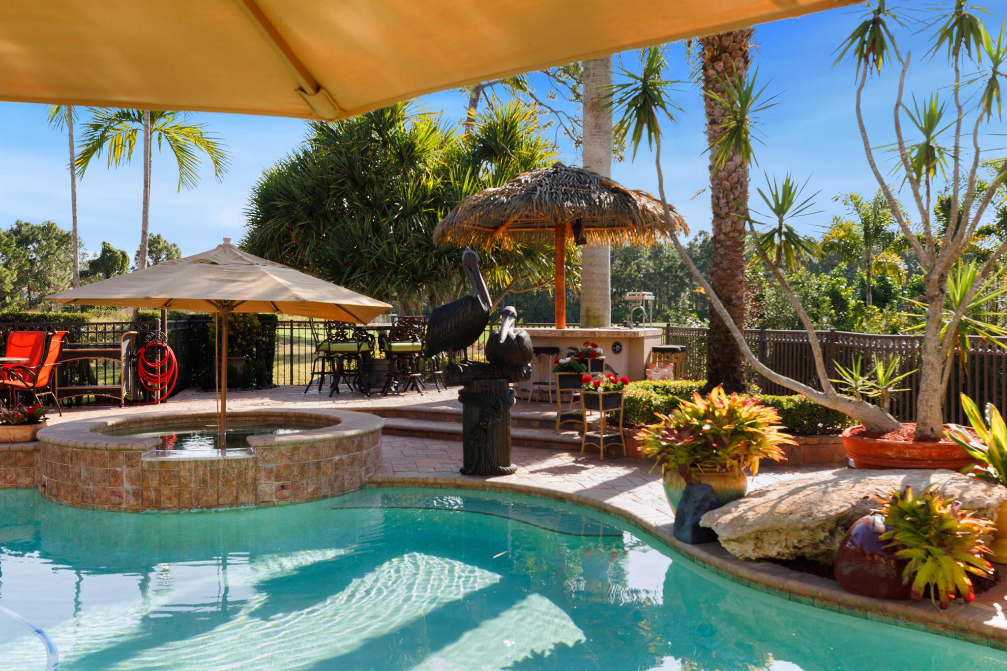 Gorgeous Custom Home on .55 Acre lot at ''PGA Village'' with beautiful view of the 7th Hole of the Pete Dye golf course with exceptional outdoor living! Looking for a Florida Lifestyle you have found it! Featuring CBS Construction, Impact windows, paver driveway, 4 BR's, 4 BA's, Den/Office 4.5 CG w/ great curb appeal & fountains. Foyer entrance, volume ceiling, tile flooring in main areas, formal living/dining room & furniture negotiable. Stunning Gourmet Eat in Kitchen with stainless steel Wolf & Miele appliances including sub-zero refrigerator, gas range/stove, coffee maker, hood, pot filler, breakfast bar & Island. Spacious family room w/ custom featured wall & TV. Split floor plan perfect for family & guests. Furnished outdoor area Boasting a 82 x 48 fenced in patio & heated pool/spa.