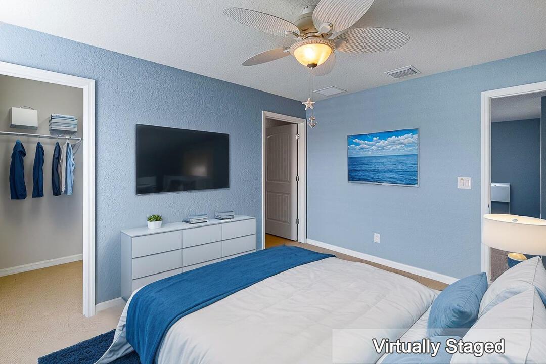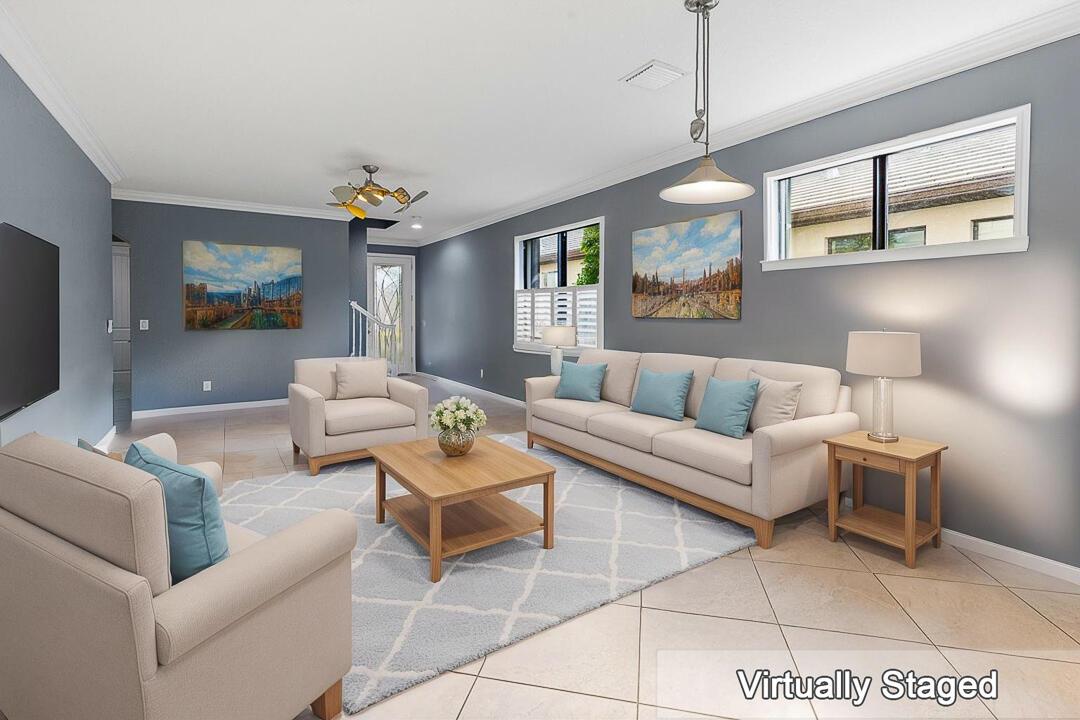 Exceptional Move-In-Ready Home with Saltwater Heated Pool & Spa Oasis! 3-bed, 3-bath, den/office, sunroom and spacious upstairs loft perfect for flexible living or entertainment. Immaculately maintained and beautifully upgraded, this residence offers both style and comfort. At the heart of the home, you'll find quartz countertops, SS app, glide out drawers and gathering island accented by elegant pendant lights. From the eye-catching glass front door, crown molding, 8' doors, plantation shutters and shiplap ceiling, this home impresses inside and out. Step outside into your private screened-in slice of paradise pool and spa, perfect for relaxing evenings or weekend get-togethers plus retractable awning for more shade. Bonus water filteration system. Designed for effortless Florida living!