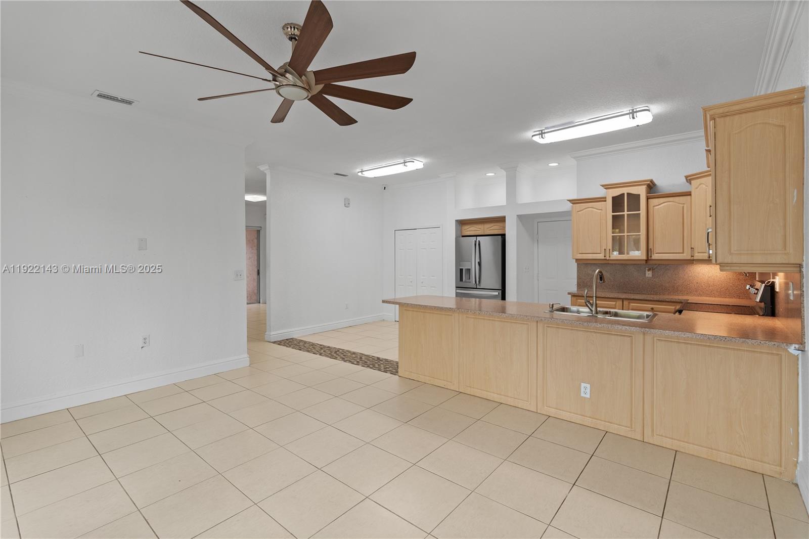Nestled in one of Miami Lakes’ most sought-after communities, this is the ONLY 4-bedroom property currently on the market under $700K. Featuring 4 bedrooms, 2 baths, and approx 2,200 sqft, this residence perfectly blends modern elegance with everyday comfort. The home impresses from the start with vaulted ceilings and tile floors leading to spacious formal living and dining areas. The formal dining room opens to a private exterior patio ideal for peaceful mornings. The generous primary suite offers his-and-hers closets and a spa-like bath with a soaking tub, dual sinks, and a separate shower. An open chef’s kitchen brings form and function together with premium appliances, custom wood cabinetry, a breakfast area, large pantry, laundry/storage room, and a seamless flow into the sunlight-filled family room highlighted by glass doors. Step outside to your fully paved private oasis, complete with an 8-person spa jacuzzi, outdoor sink & prep station, two exterior TVs perfect for entertaining or unwinding. Additional features include an interior and exterior security system, impact windows, stamped concrete driveway, garage, expansive attic for extra storage, and fresh paint & landscaping throughout. All of this is set within one of Miami Lakes most charming and family-friendly neighborhoods, just minutes from major highways, shopping, restaurants, entertainment, multiple beautiful public parks offering organized team sports & activities. Located within a fantastic school district.