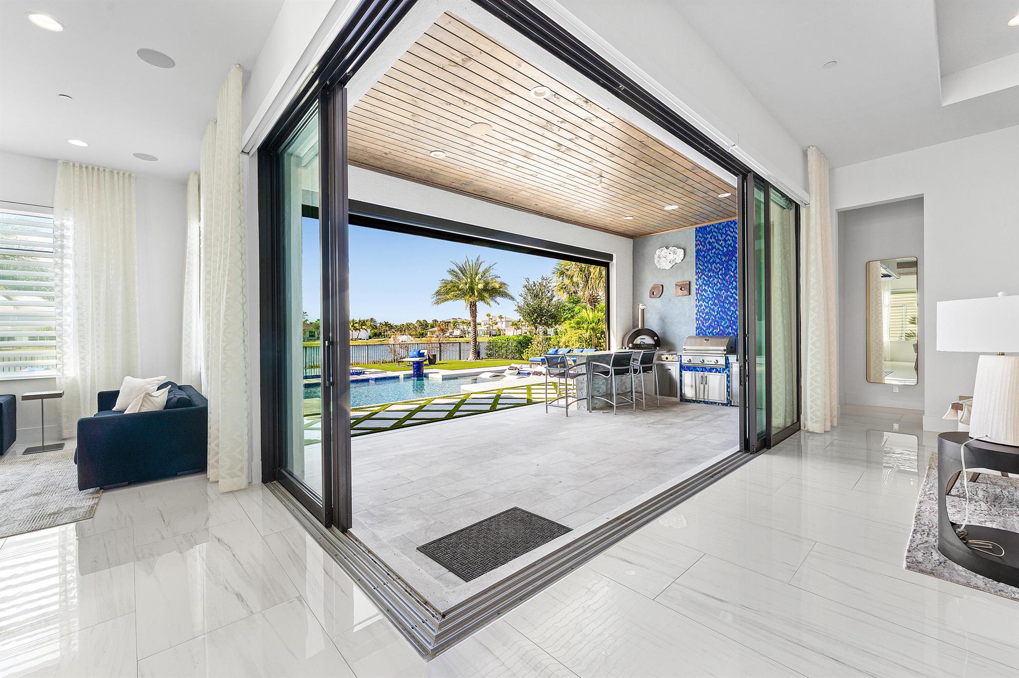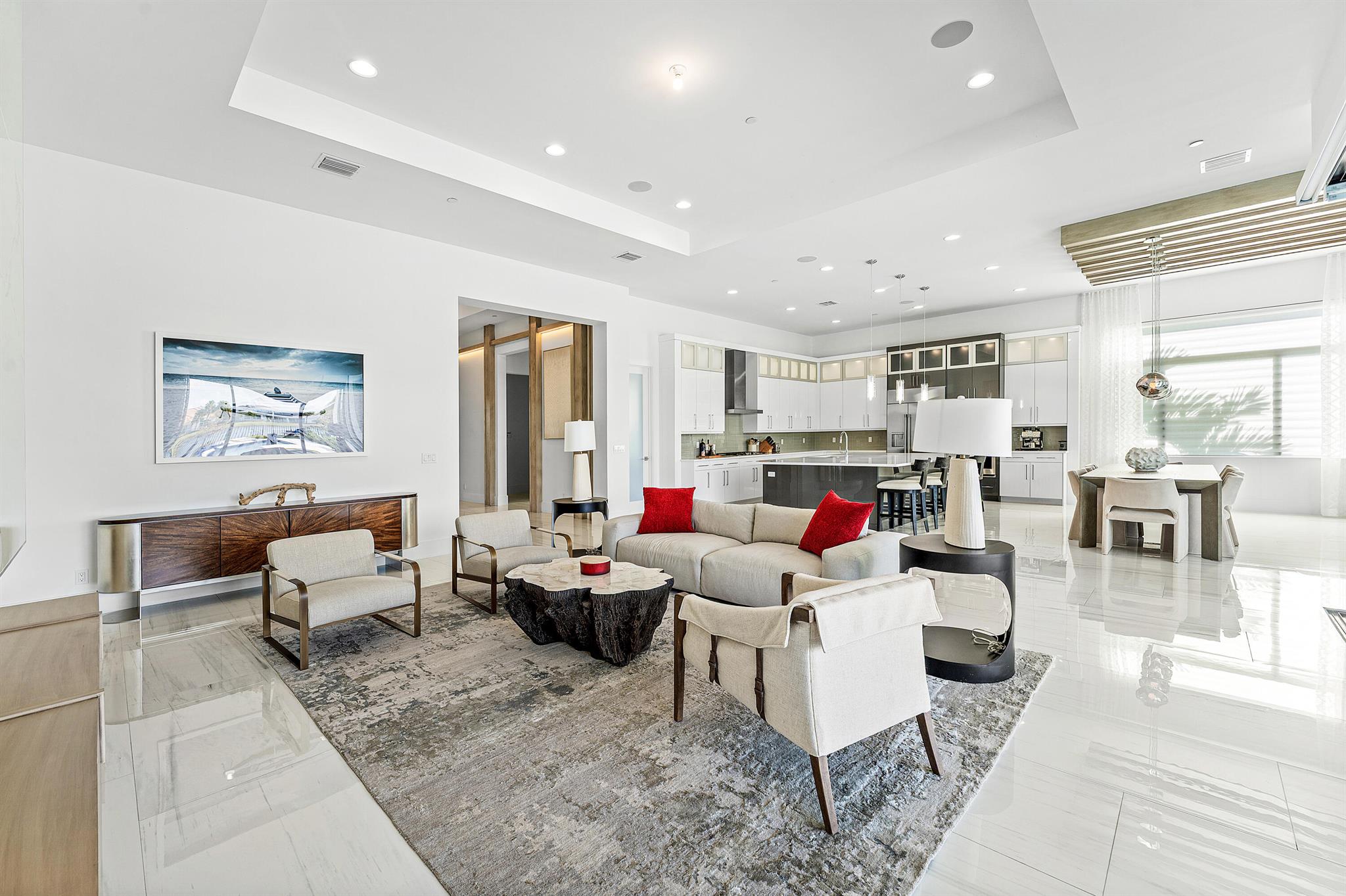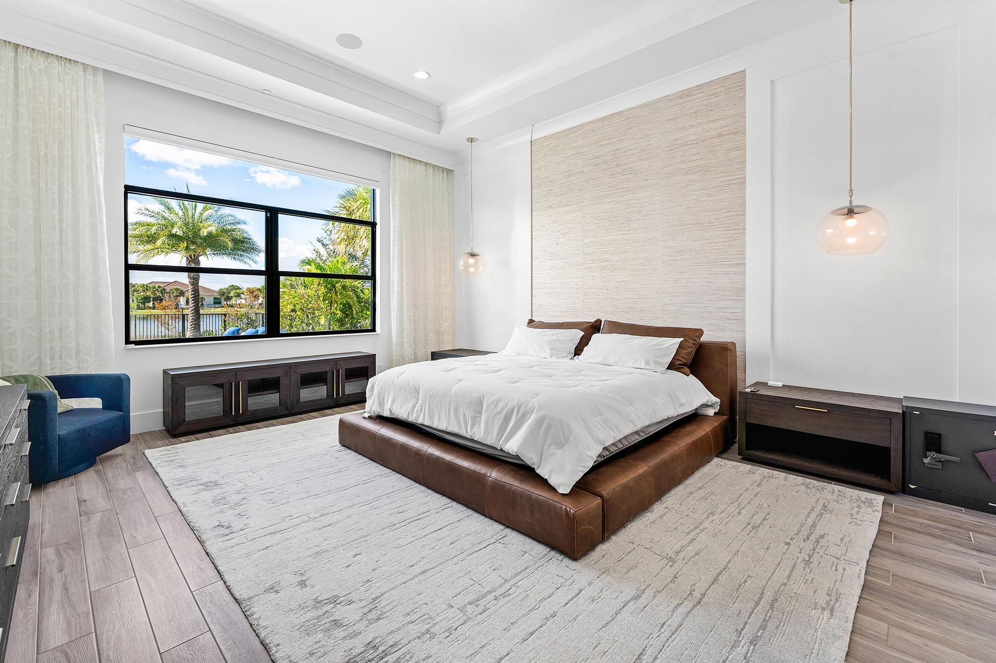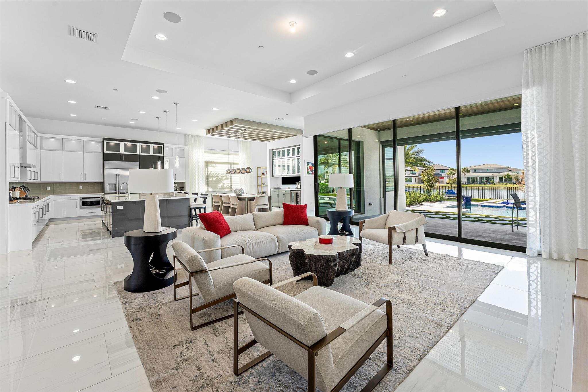 Situated on a premier waterfront lot in Coral Isles at Avenir, this modern residence delivers the ultimate South Florida lifestyle. Replicated from the builder's model and enhanced with extensive upgrades inside and out, the home is framed by lake views and vibrant sunsets. Featuring 3 spacious bedrooms, each with its own ensuite bath and walk-in closet, plus an oversized office/den. The backyard is a private oasis with a resort-style pool, spa, outdoor kitchen, and lounge overlooking the water. An entertainer's paradise. Inside, seamless indoor-outdoor flow, designer lighting, a full-home surround sound system, and a custom garage-to-gym conversion elevate every detail. Move-in ready, offered furnished or unfurnished with Restoration Hardware interiors. Furniture negotiable.