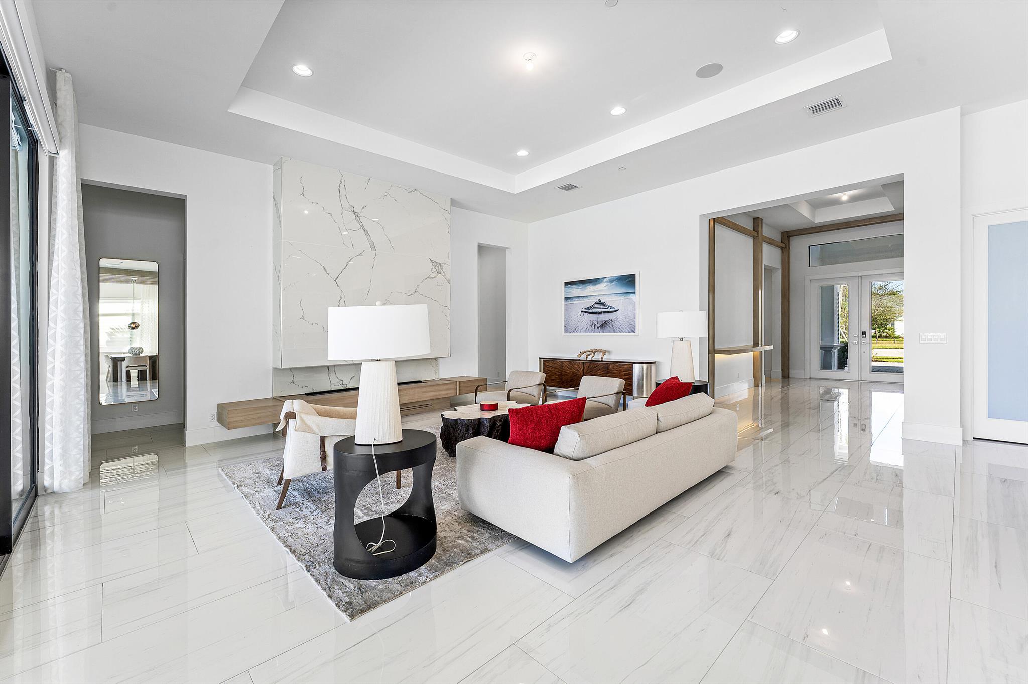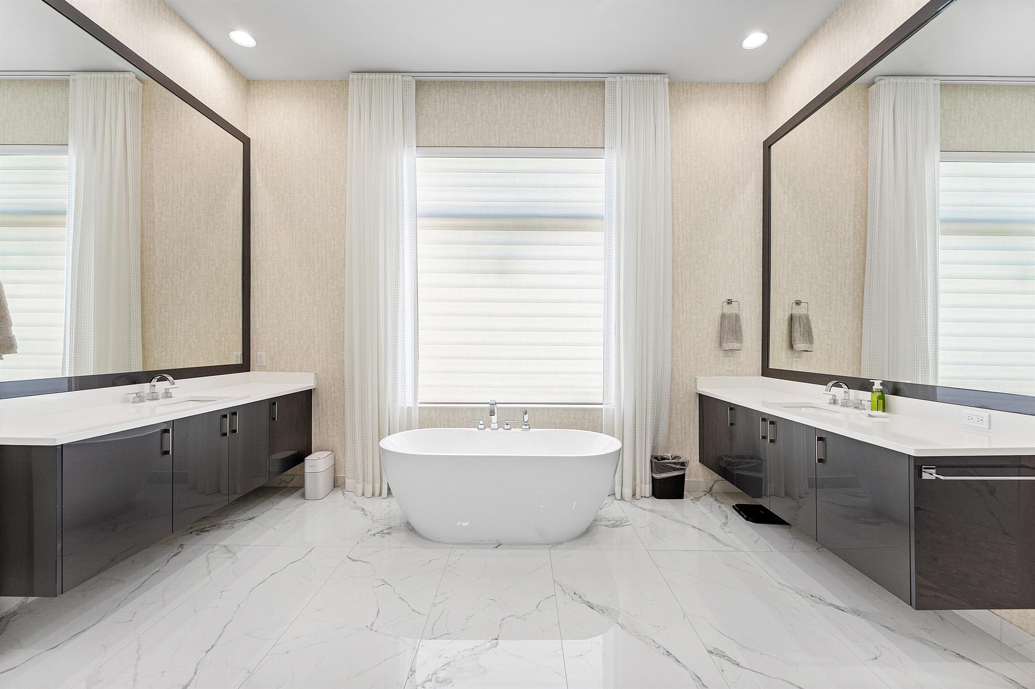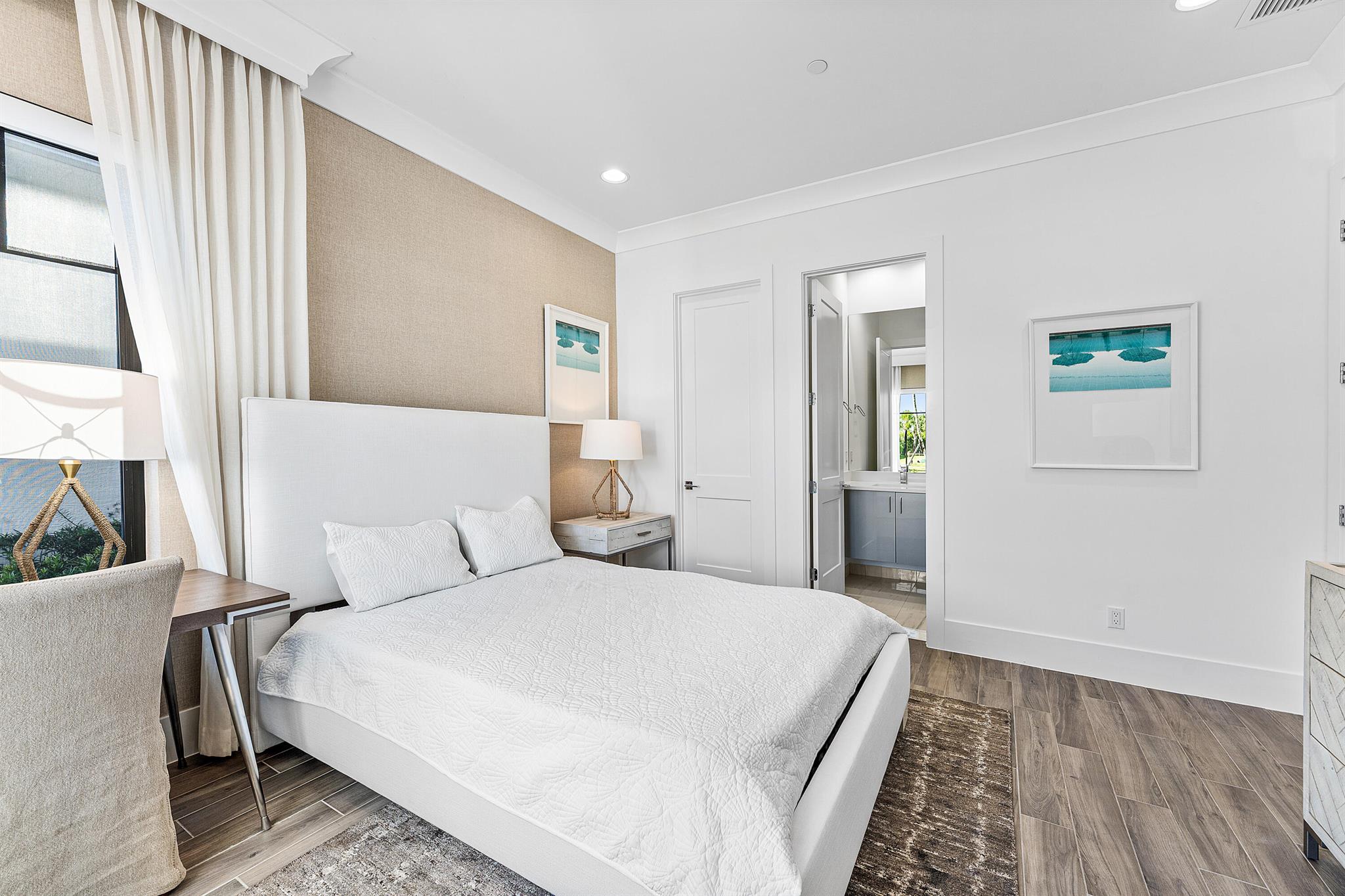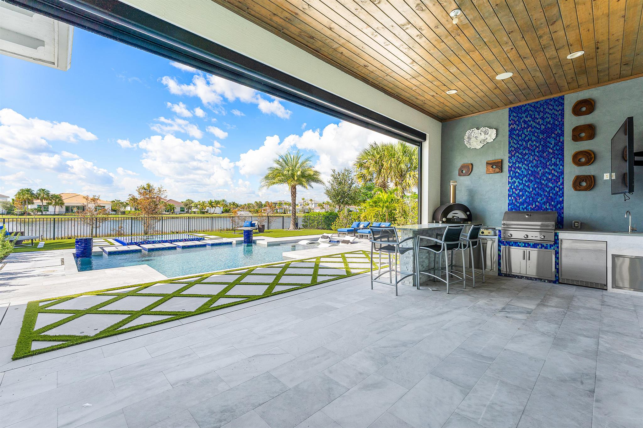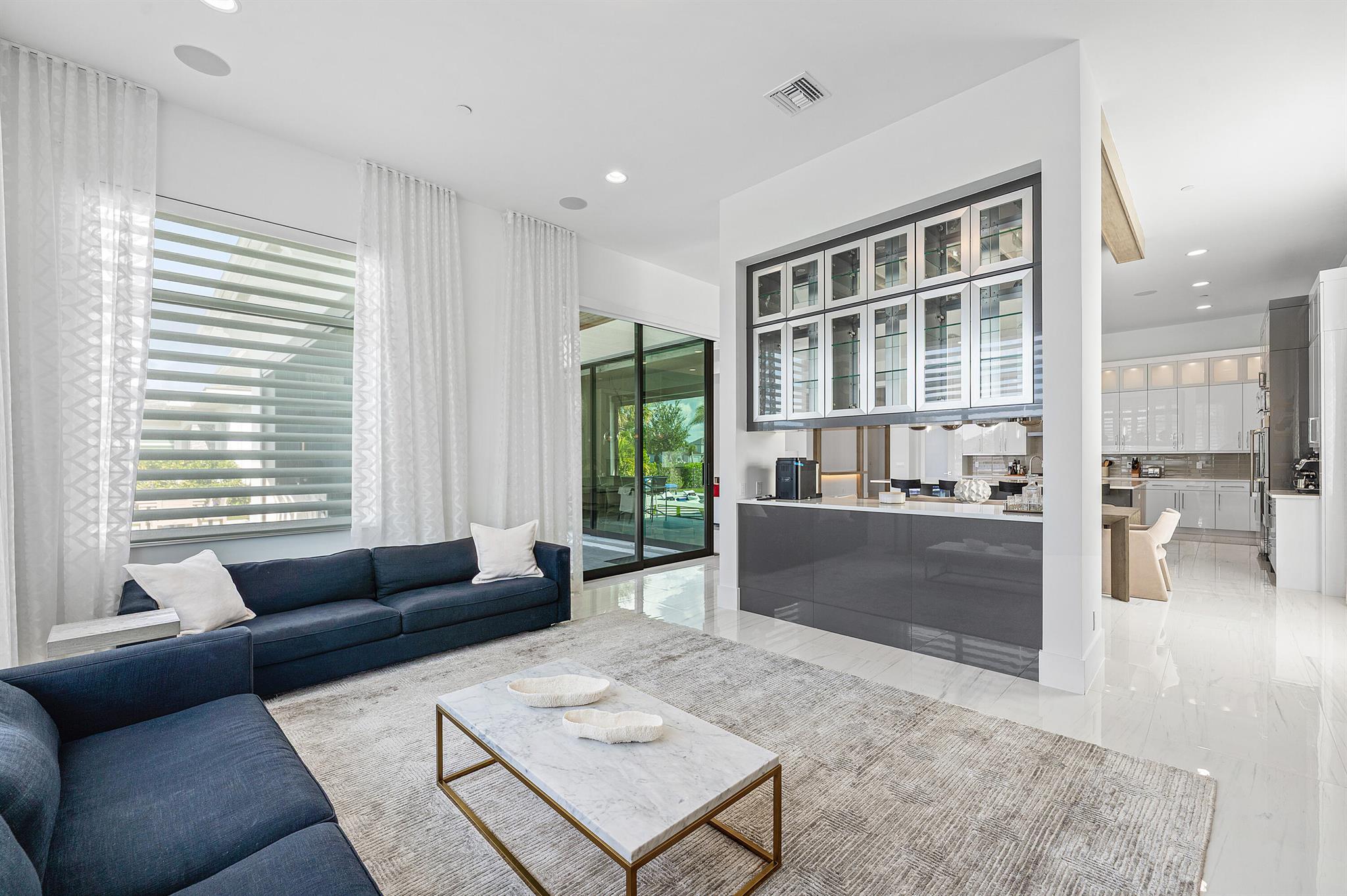 Situated on a premier waterfront lot in Coral Isles at Avenir, this modern residence delivers the ultimate South Florida lifestyle. Replicated from the builder's model and enhanced with extensive upgrades inside and out, the home is framed by lake views and vibrant sunsets. Featuring 3 spacious bedrooms, each with its own ensuite bath and walk-in closet, plus an oversized office/den. The backyard is a private oasis with a resort-style pool, spa, outdoor kitchen, and lounge overlooking the water. An entertainer's paradise. Inside, seamless indoor-outdoor flow, designer lighting, a full-home surround sound system, and a custom garage-to-gym conversion elevate every detail. Move-in ready, offered furnished or unfurnished with Restoration Hardware interiors. Furniture negotiable.