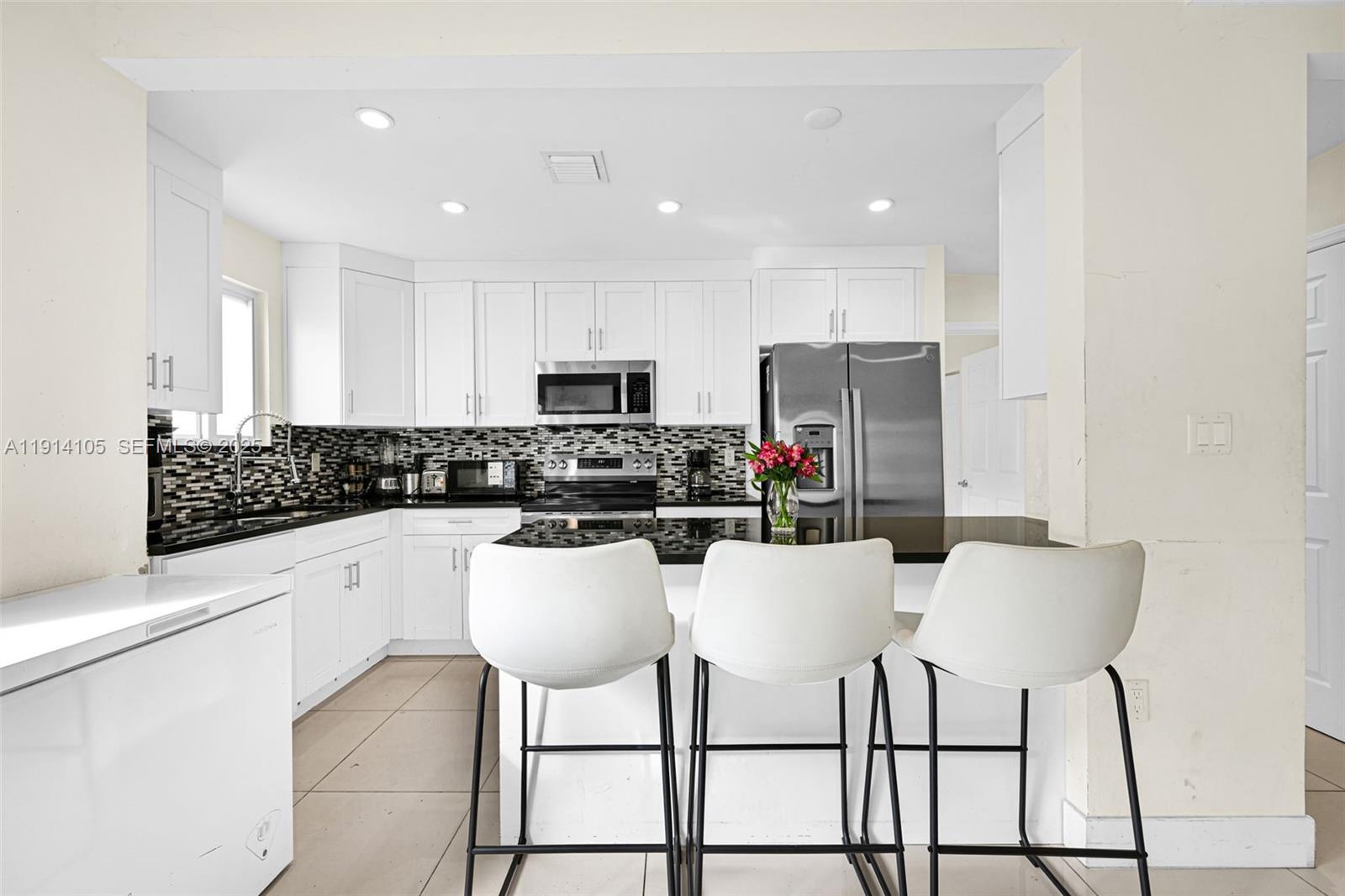 Welcome to this beautiful two-story contemporary residence offering the perfect blend of style, space, and functionality. Located on a quiet residential street, this gated home features 4 bedrooms, 3.5 baths, and generous indoor/outdoor living areas ideal for today’s lifestyle needs. Step inside to a bright, open floor plan with large, polished tile floors, recessed lighting, and oversized windows that bring in abundant natural light. The modern kitchen is designed for everyday living and entertaining, complete with white shaker cabinets, quartz countertops, stainless steel appliances, mosaic backsplash, and a spacious center island with seating. The home includes two primary suites, each featuring fully renovated spa-inspired bathrooms with floor-to-ceiling porcelain tiles, frameless glass showers, LED backlit mirrors, and contemporary vanities. Additional bedrooms are roomy and well appointed, perfect for family and guests. For added safety and peace of mind, the property is equipped with hurricane-impact windows and doors throughout. The oversized backyard is a true highlight, fully fenced, private, and offering endless potential. Enjoy mature fruit trees, a pergola, and a storage shed, with plenty of room to add a patio, playground, garden area, or even a future pool.