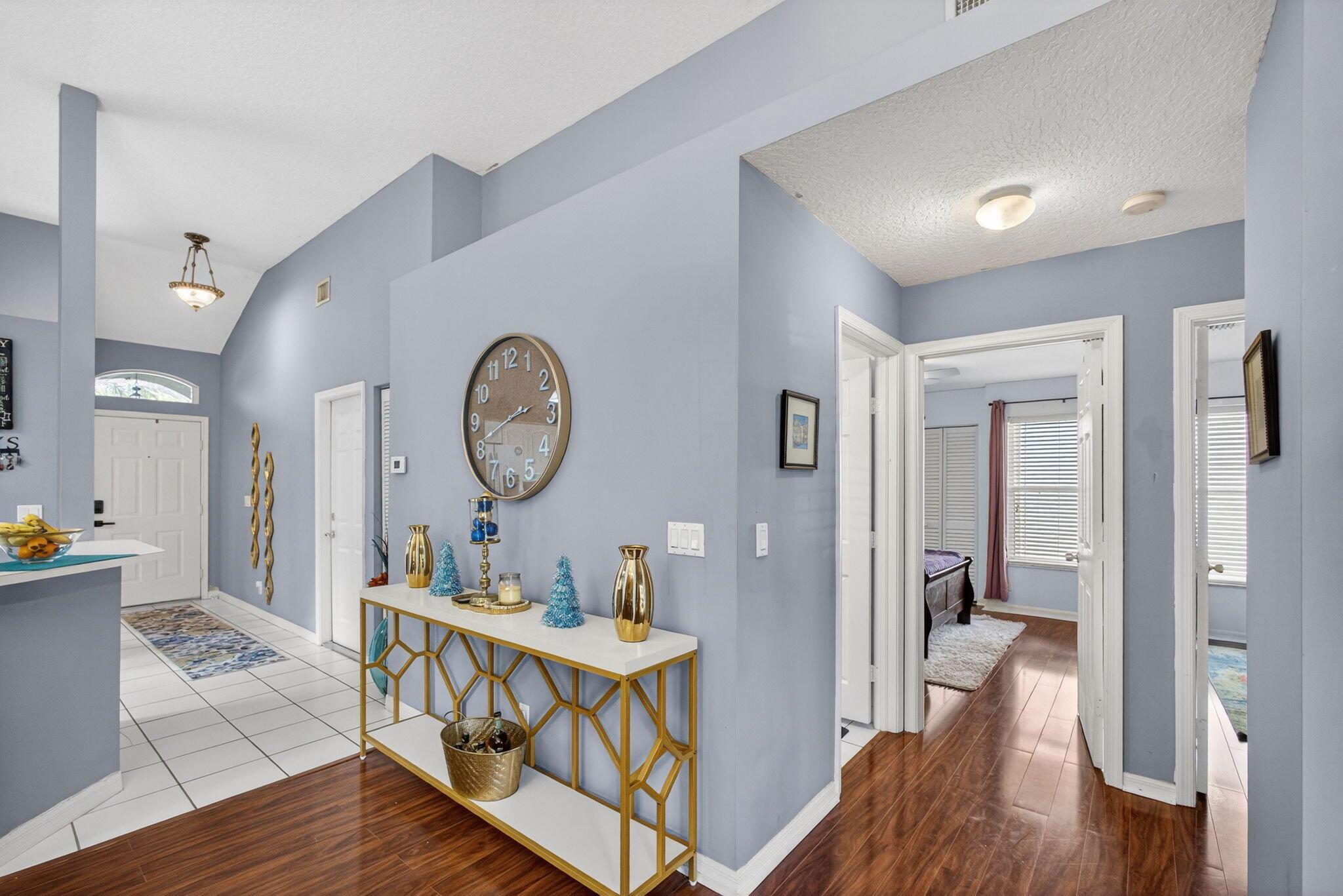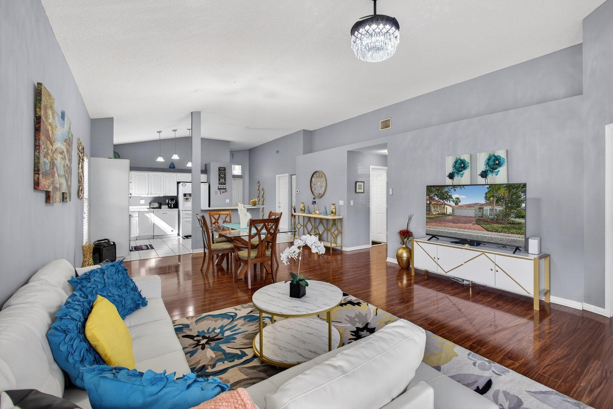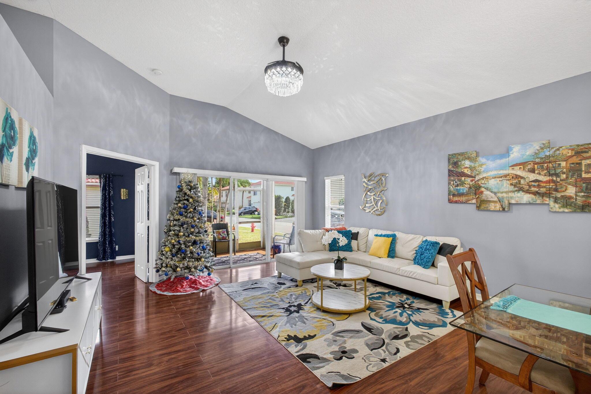 $10,000 buyer credit toward closing costs or rate buydown. View this home before it's gone! Single-story corner-lot home with 3 bedrooms 2 bathroom. This home comes with a Den/bonus room which is currently being used as a bedroom, 2-car garage, eat-in kitchen, primary bedroom with large walk-in closet, and sliding doors to the patio from master and living room. Features vaulted/tray ceilings, split bedrooms, laminate floors throughout and tile in kitchen & baths. Screened, tiled patio. Exterior painted 11/2025, interior 06/2025. Dining room chandelier does not convey. Community offers gym, clubhouse, 3 pools, racquetball, volleyball, tennis, & playground. Close to City Place, Outlet Mall, Gardens Mall, beaches, I-95 & Turnpike. HOA includes cable, internet, lawn care & 24-hr security.