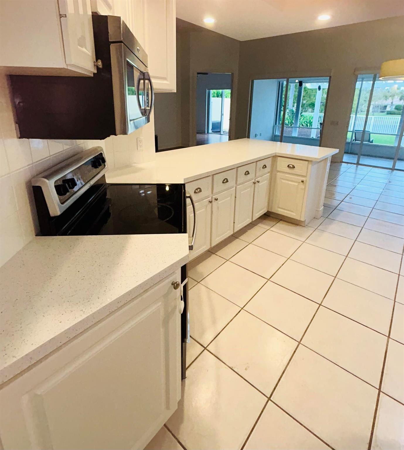 This 4/3 home offers a brand-new $55,000 forty-year metal roof, with a 10-year warranty on labor/materials plus accordion hurrican shutters--a substantial benefit for insurance costs. Includes a spacious open floor plan. The gourmet kitchen features premium quartz countertops and white cabinetry, flowing into the main living areas for upscale entertaining or relaxed everyday living. The luxurious master suite offers separate sinks and toilets, a jacuzzi tub and a walk in shower with a glass enclosure. Enjoy the large fenced in backyard or screened in patio overlooking the lake while grilling on your outdoor kitchen! enjoy 5-star amenities including resort-style pool, a state-of-the-art fitness center, tennis, scenic walking paths and pickleball courts and 24 hr gated security.