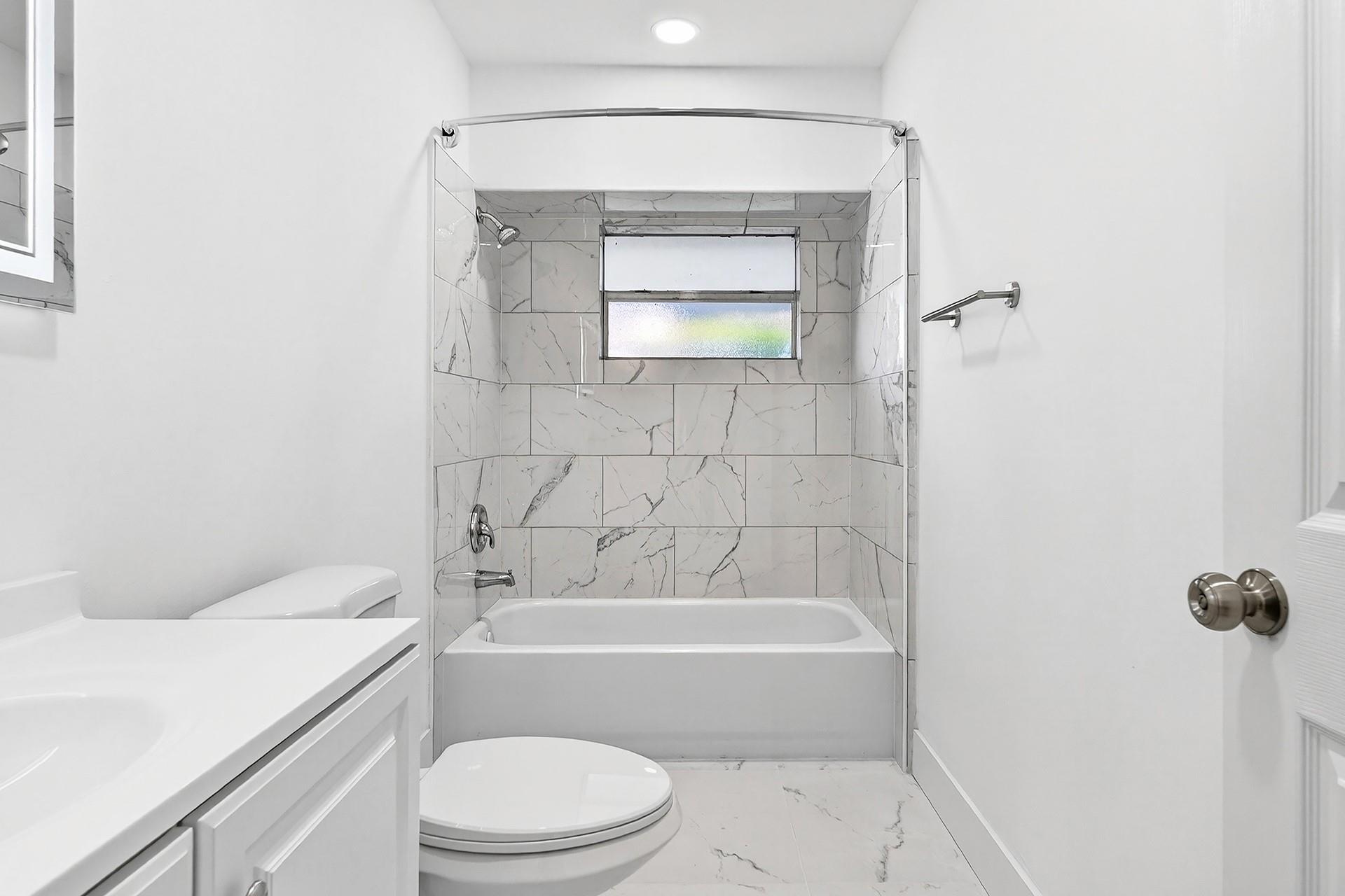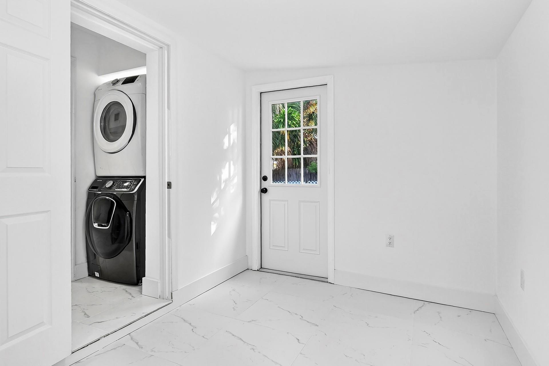 Charming remodeled 3-bedroom, 1-bath home in a desirable no-HOA Lake Worth community. This bright, move-in ready property offers new large-format tile flooring, fresh interior/exterior paint, updated lighting, and added recessed LEDs for a clean, modern feel. The upgraded kitchen features new stainless steel appliances, white cabinetry, a subway tile backsplash, and a spacious peninsula. Additional highlights include a 2017 outdoor A/C, 2018 indoor unit, newer tankless water heater, and a third bedroom with a private exterior entrance and new concrete slab for extra living space or patio use.