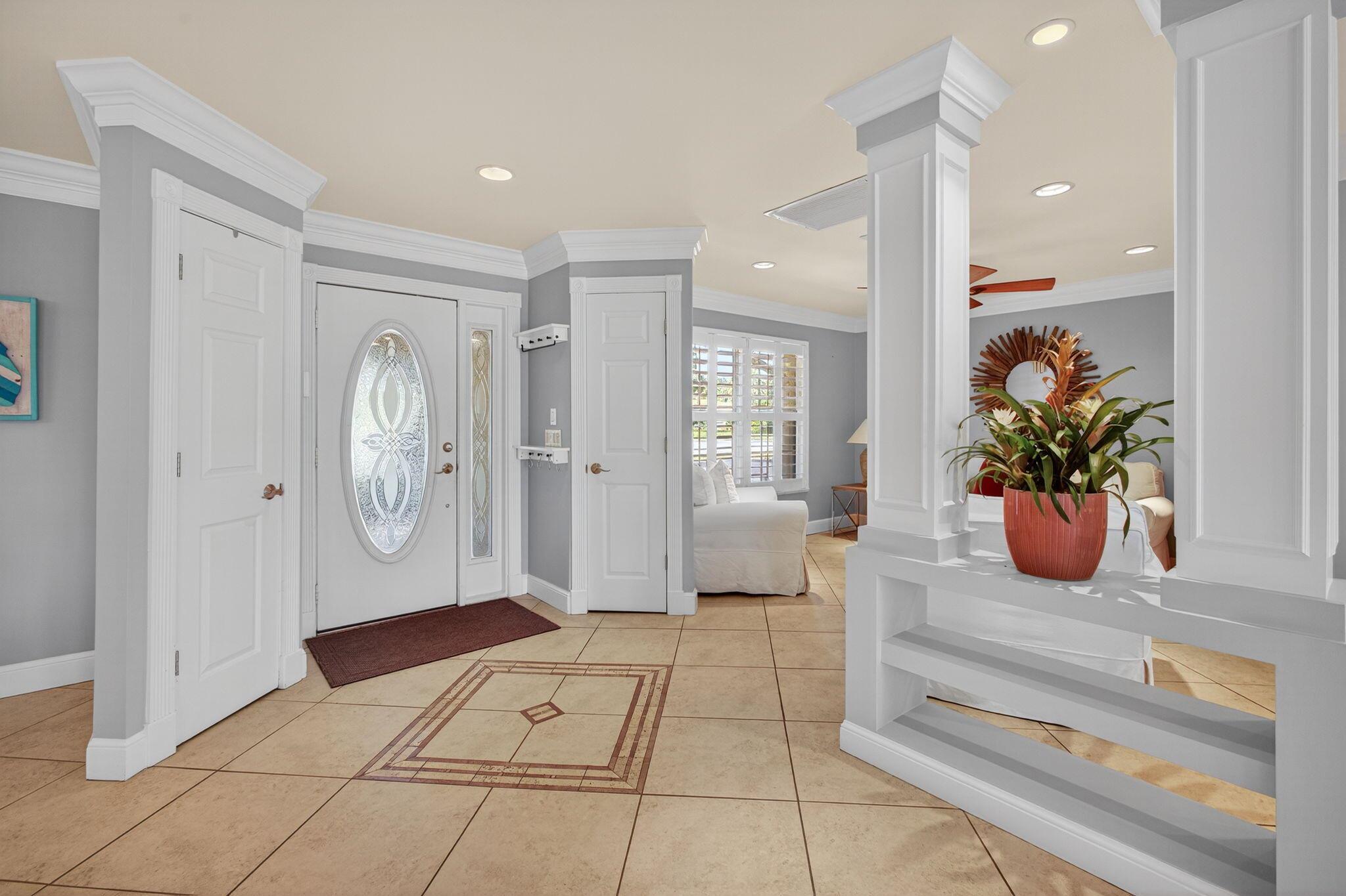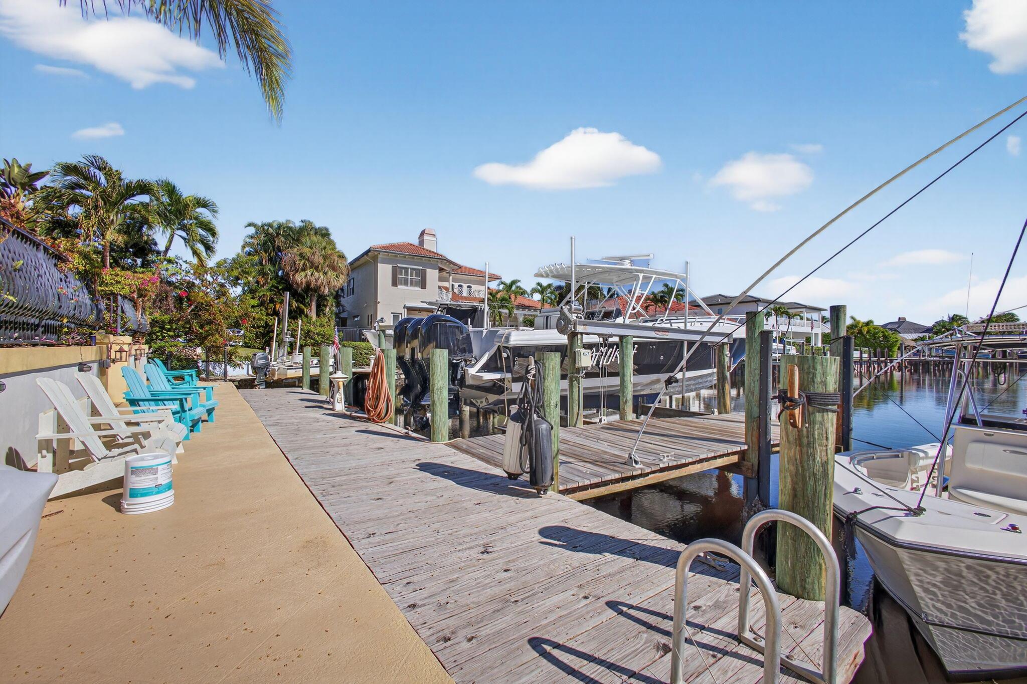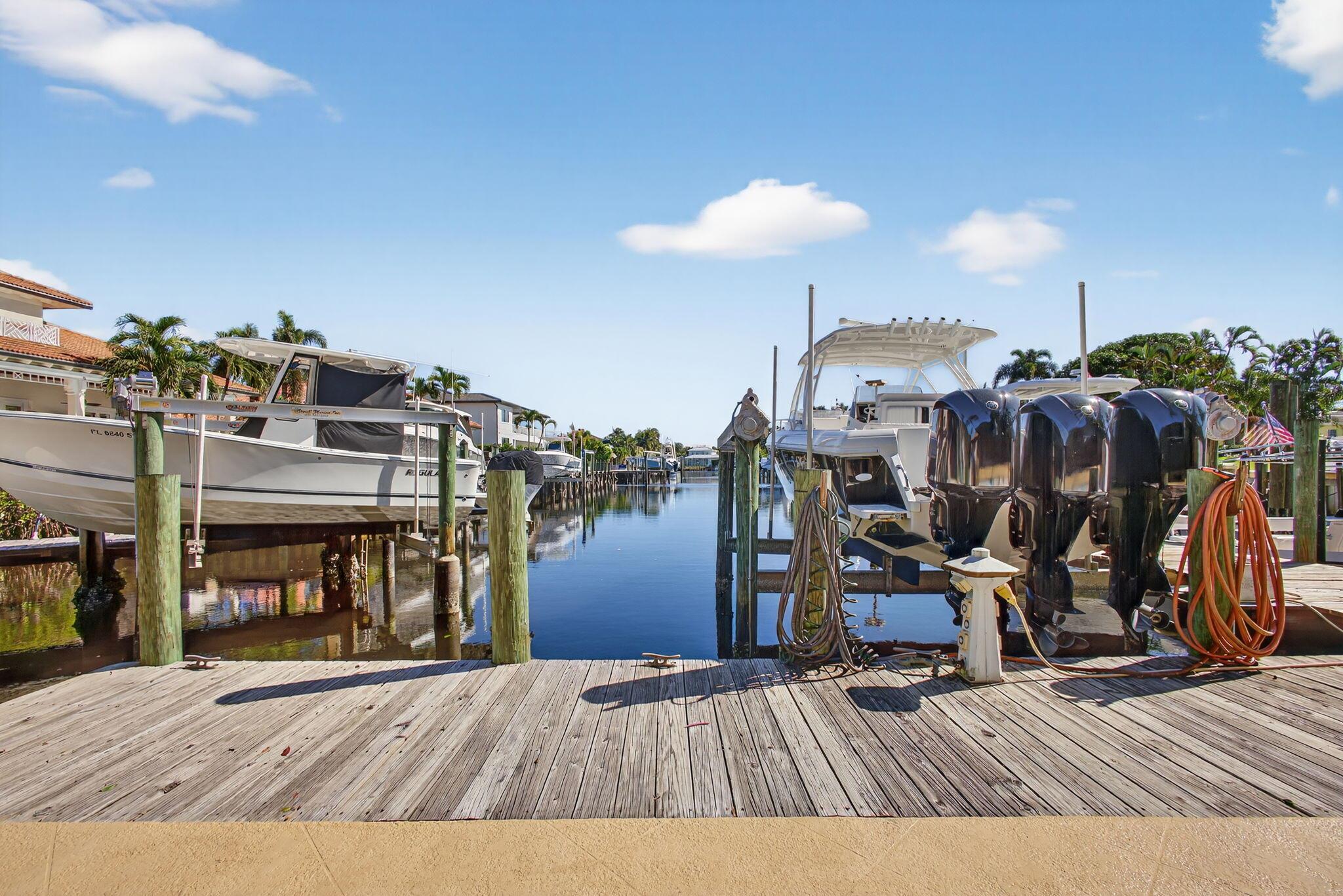 Waterfront home offering a stunning long canal view, a large private dock, and a 20,000 lb boat lift with direct ocean access and no fixed bridges. This spacious open-floorplan home features 4 bedrooms / 3 baths / 2 car garage. Home is rented through August 31, 2026. New owner to agree to transfer lease til lease end.Inside, enjoy a large gourmet kitchen with stainless steel appliances, granite countertops, natural gas stove, 2023 refrigerator, and an ultra-quiet 2022 dishwasher. Additional interior features include crown molding, plantation shutters, hurricane shutters, natural gas washer/dryer, natural gas water heater, and natural gas pool heater and new air conditioner installed in 2025.