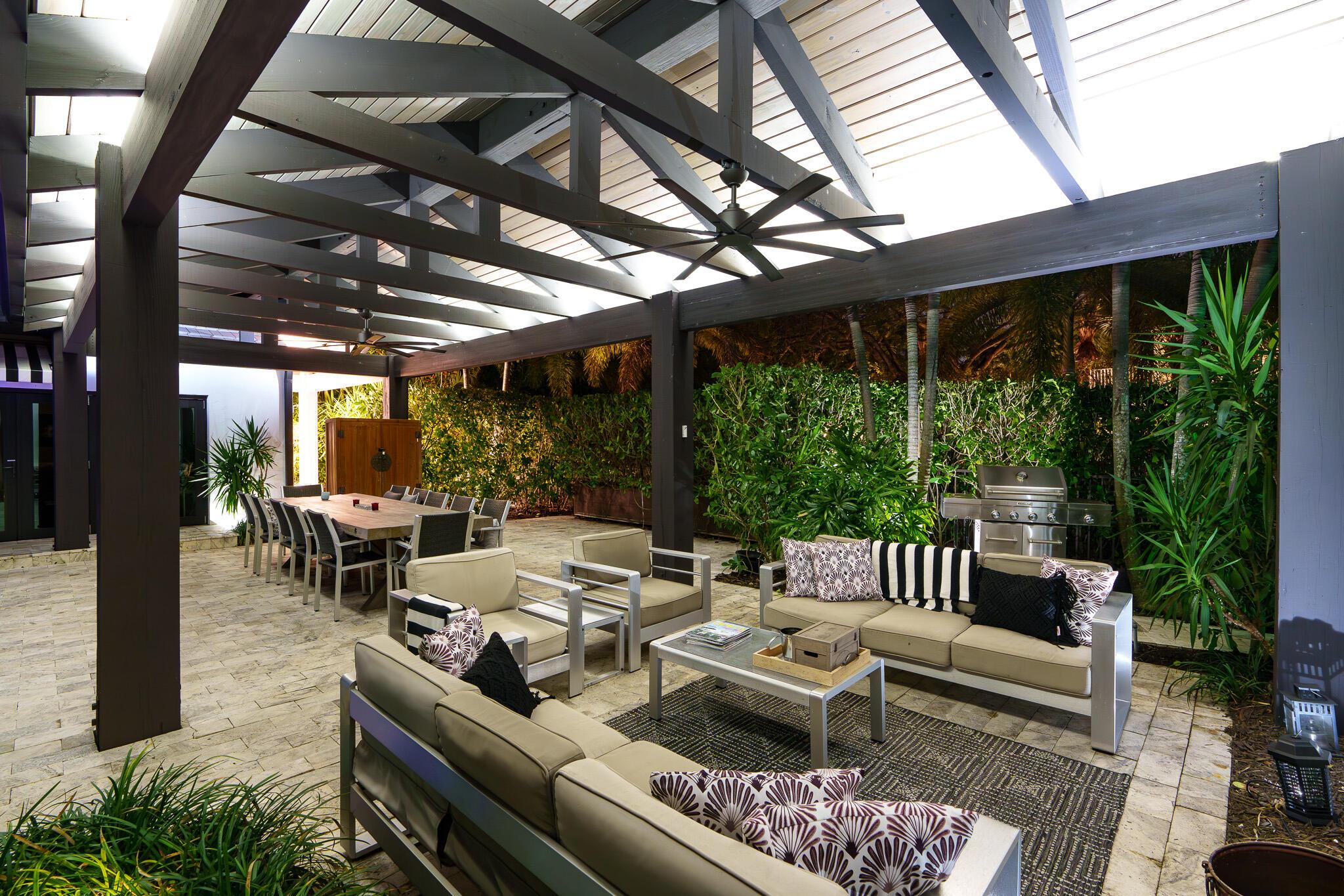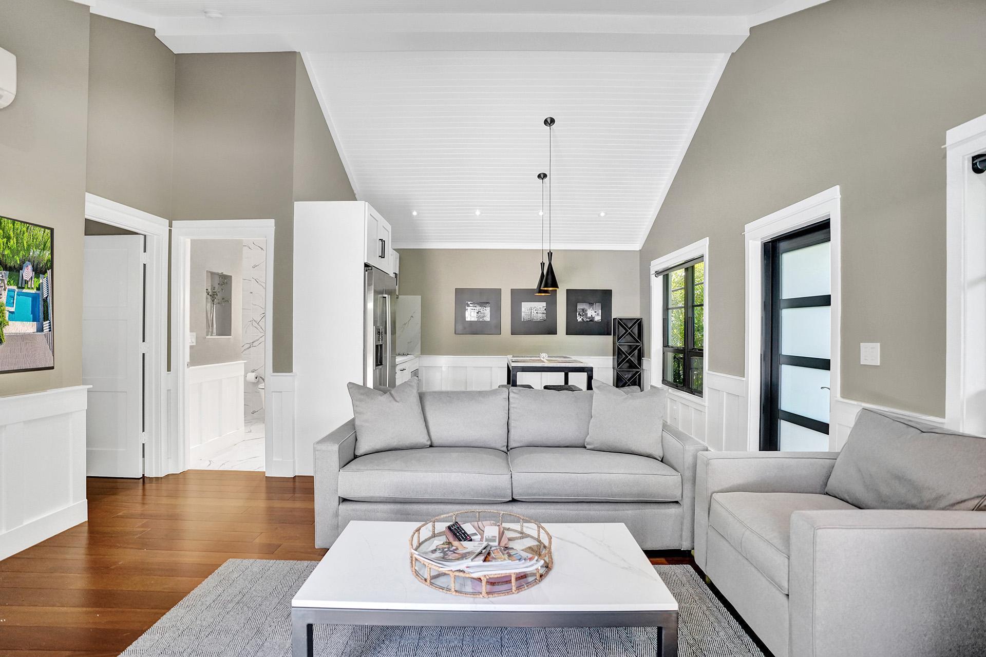 Truly one of a kind. This rare Downtown Delray Beach compound encompasses the entire corner of N Swinton Ave and features a main residence and full guest home connected by a custom breezeway with a stunning resort-style pool and spa at the center. Completely rebuilt in 2021 with brand-new everything, including a new roof, all new appliances, full impact windows and doors, and a whole-home generator.Inside, the main residence was meticulously reimagined with custom millwork, refined wall treatments, designer lighting, built-ins, a large gas stove, and gorgeous pecan flooring. Accordion impact glass doors open wide for seamless indoor-outdoor living. Outside, the pool area is framed by bamboo privacy landscaping, multiple seating areas, and an additional third full bathroom accessible