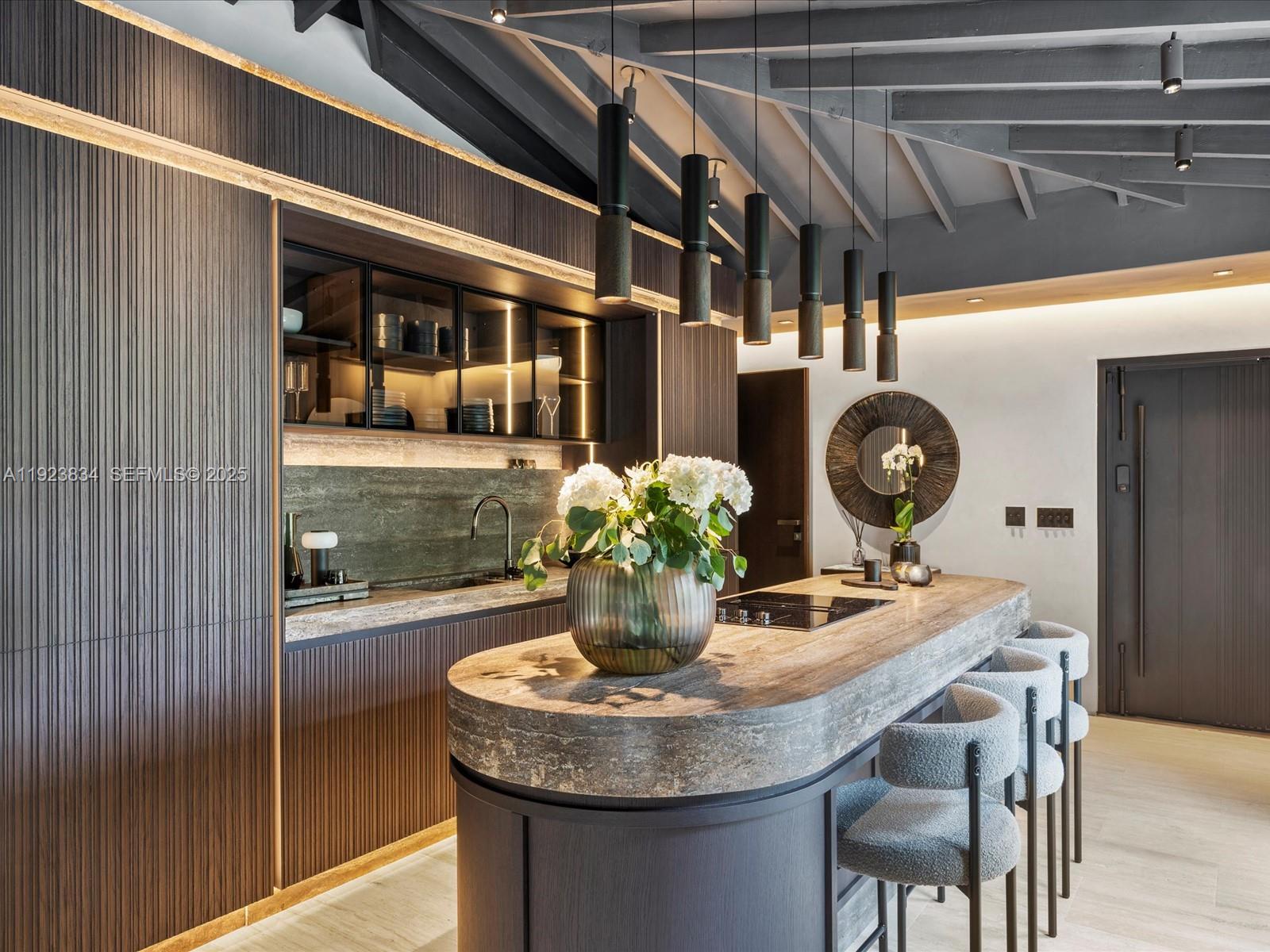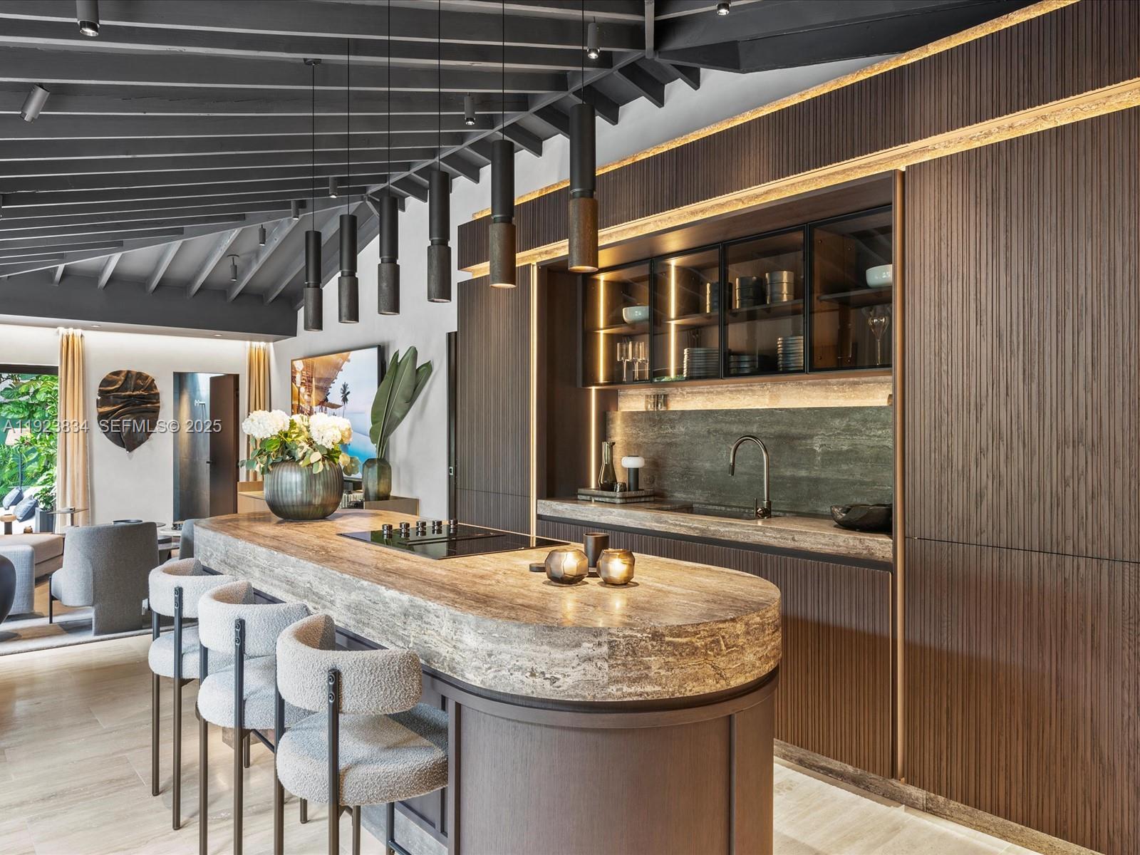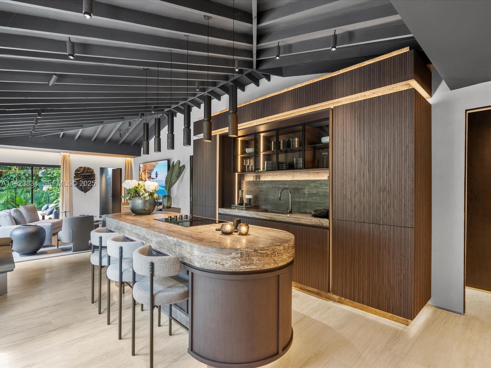 Fully designer renovated contemporary villa in the heart of Coconut Grove. The home includes an Italian-made designer kitchen, custom MisuraEmme closets, and premium Effepi R. fixtures. Professional Fulgor Milano appliances and curated Italian furnishings enhance the home’s streamlined, modern aesthetic. Finishes include Turkish Veincut travertine, limewash walls, and VivaPorte architectural doors for a clean, understated elegance. Additional highlights include Talenti outdoor living, a private firepit lounge, a Gruppo Tresse spa system, integrated Sony systems in every room, and upgraded Buster + Punch lighting. The property is fully gated and ultra-private, offering a quiet and secure environment. A sophisticated residence designed for comfort, quality, and modern living. Property sold AS-IS; Furnished and finished with right to inspect.