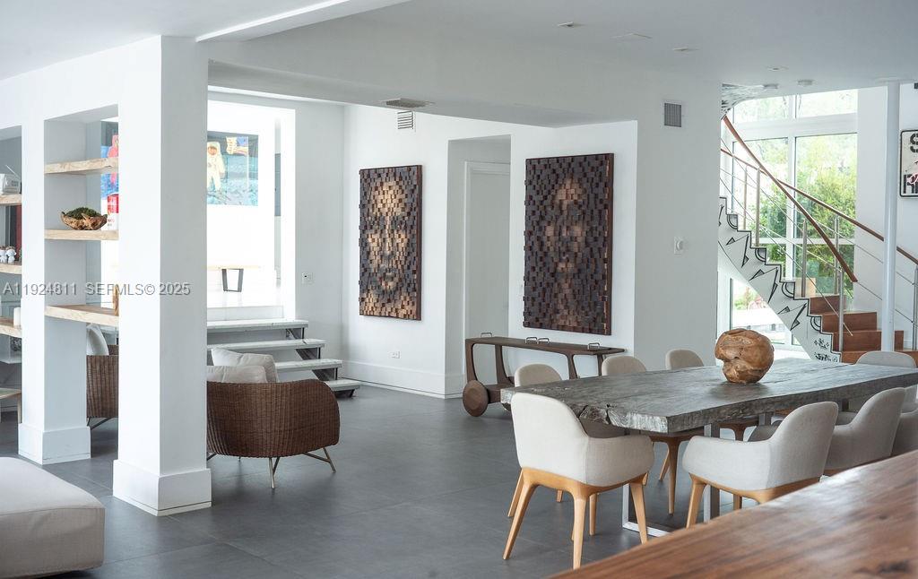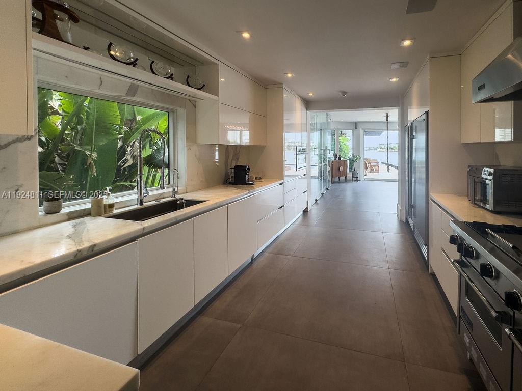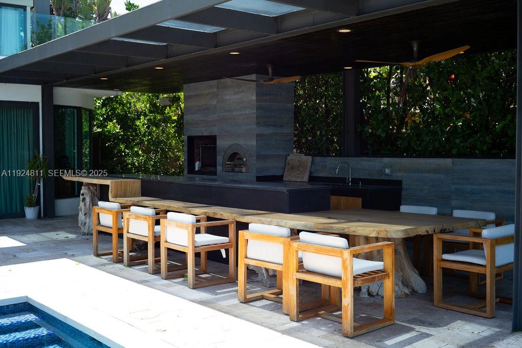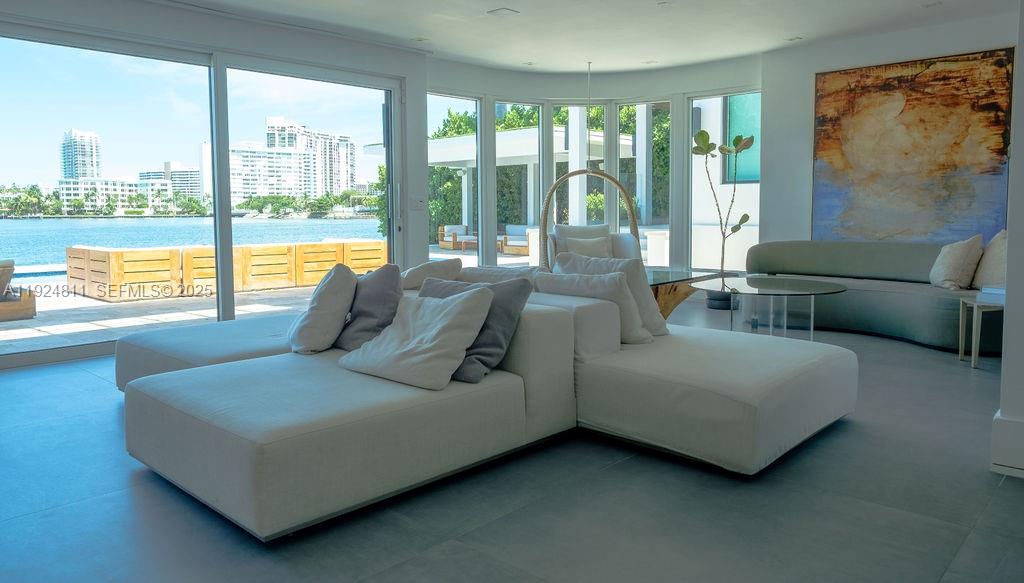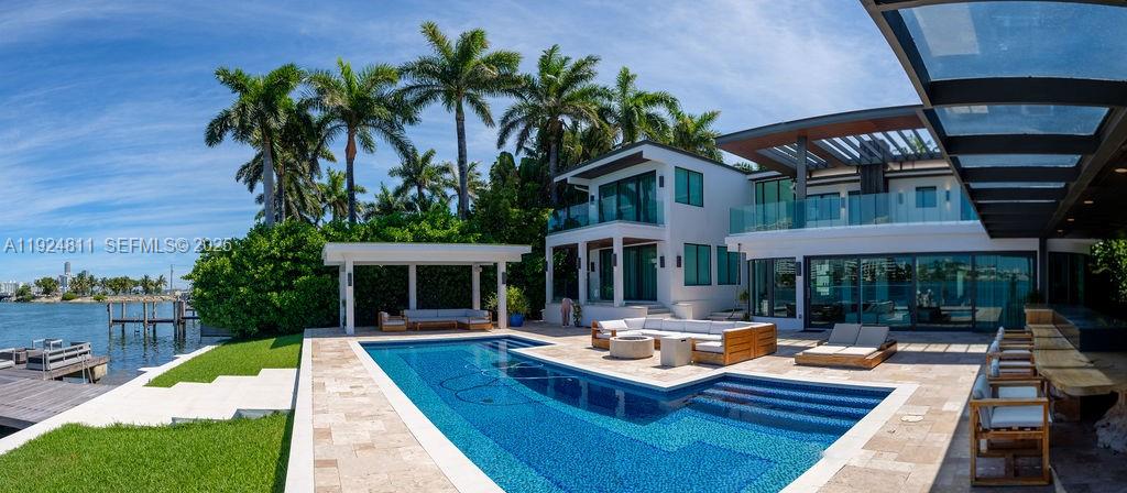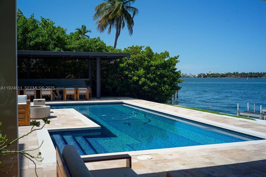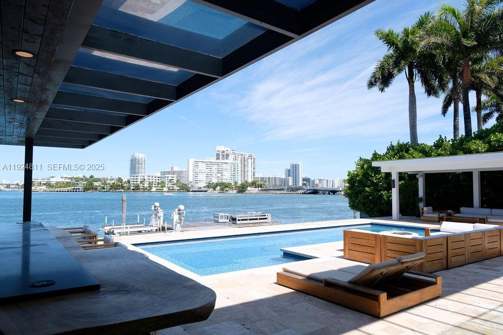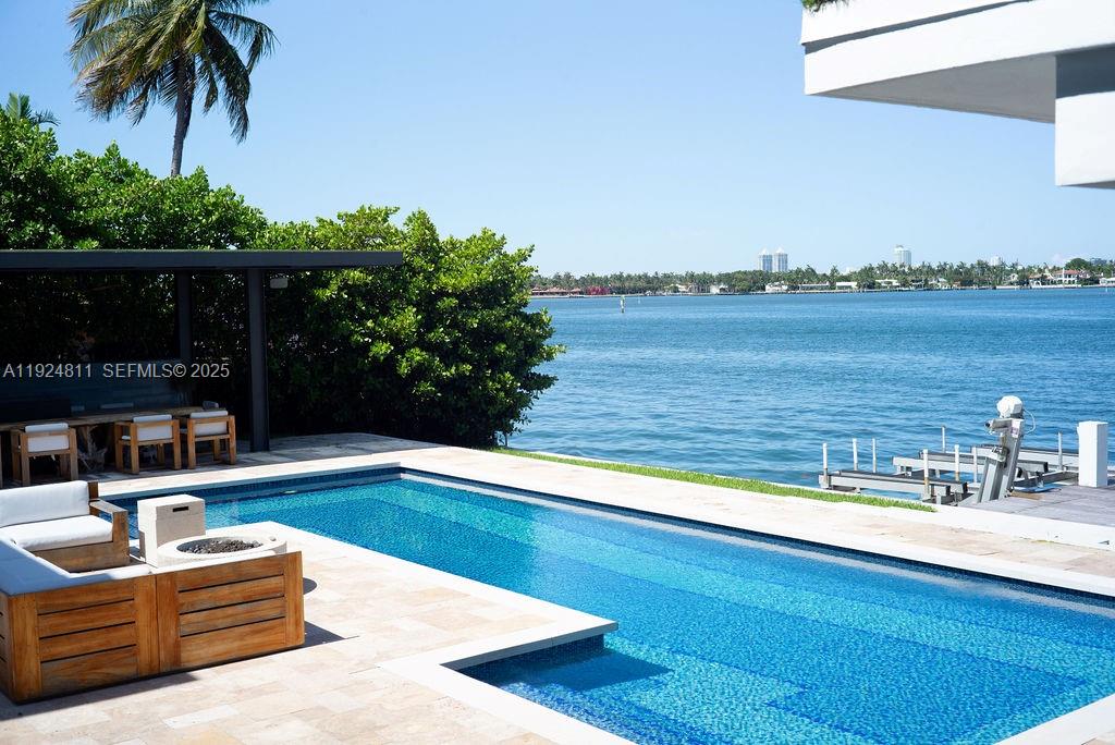This stunning waterfront sanctuary on the prestigious Venetian Islands offers 90 feet of prime bay frontage, seamlessly blending serene privacy with the vibrant energy of Miami Beach. Set on a rare lot-and-a-half, this architectural gem is designed for the discerning art lover and entertainer alike. Inside, soaring ceilings and walls of glass flood the home with natural light, framing sweeping open bay views from nearly every room. The expansive floor plan connects effortlessly to outdoor living areas, where a custom summer kitchen, Brazilian-style BBQ and pizza oven, and sparkling private pool await. Host unforgettable gatherings poolside or unwind under the stars in the elegant lounge areas with gas fire features. A newly designed chef’s kitchen, marble floors, and gallery-style walls enhance the home’s sophisticated yet relaxed ambiance. The property includes 6 bedrooms, 6.5 baths, a custom 4-car garage, and breathtaking view of blue oceans and this wonderful city. A true Miami masterpiece, this is waterfront living elevated — minutes from Sunset Harbour, the Design District, and world-class shopping, dining, and culture.