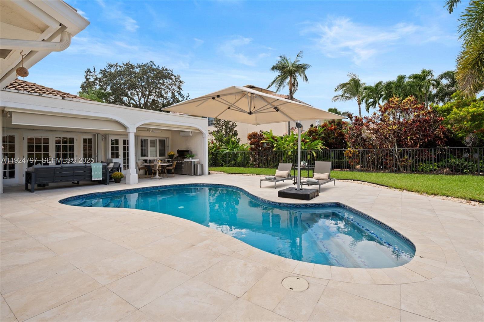 Beautiful Lakefront Family Home in Boca Raton. Enjoy stunning lake views and sunsets from this charming 5-bedroom, 3-bath home in the desirable New Floresta community. Updated with modern touches while keeping itsclassic style, this home offers a bright living room with marble floors, a cozy family room with fireplace, and aspacious kitchen perfect for family gatherings. Relax outdoors by the pool with jacuzzi jets, surrounded byporcelain pavers and a covered veranda overlooking the lake. The large, landscaped lot provides plenty of spacefor kids and pets to play. All windows and doors are hurricane protected, and the home is just minutes from BocaTown Center Mall, parks, and A-rated schools. A perfect home to raise a family and enjoy beautiful sunsets everyevening.