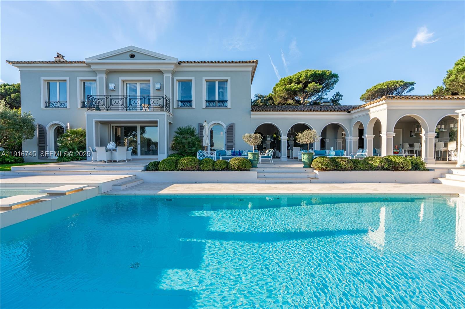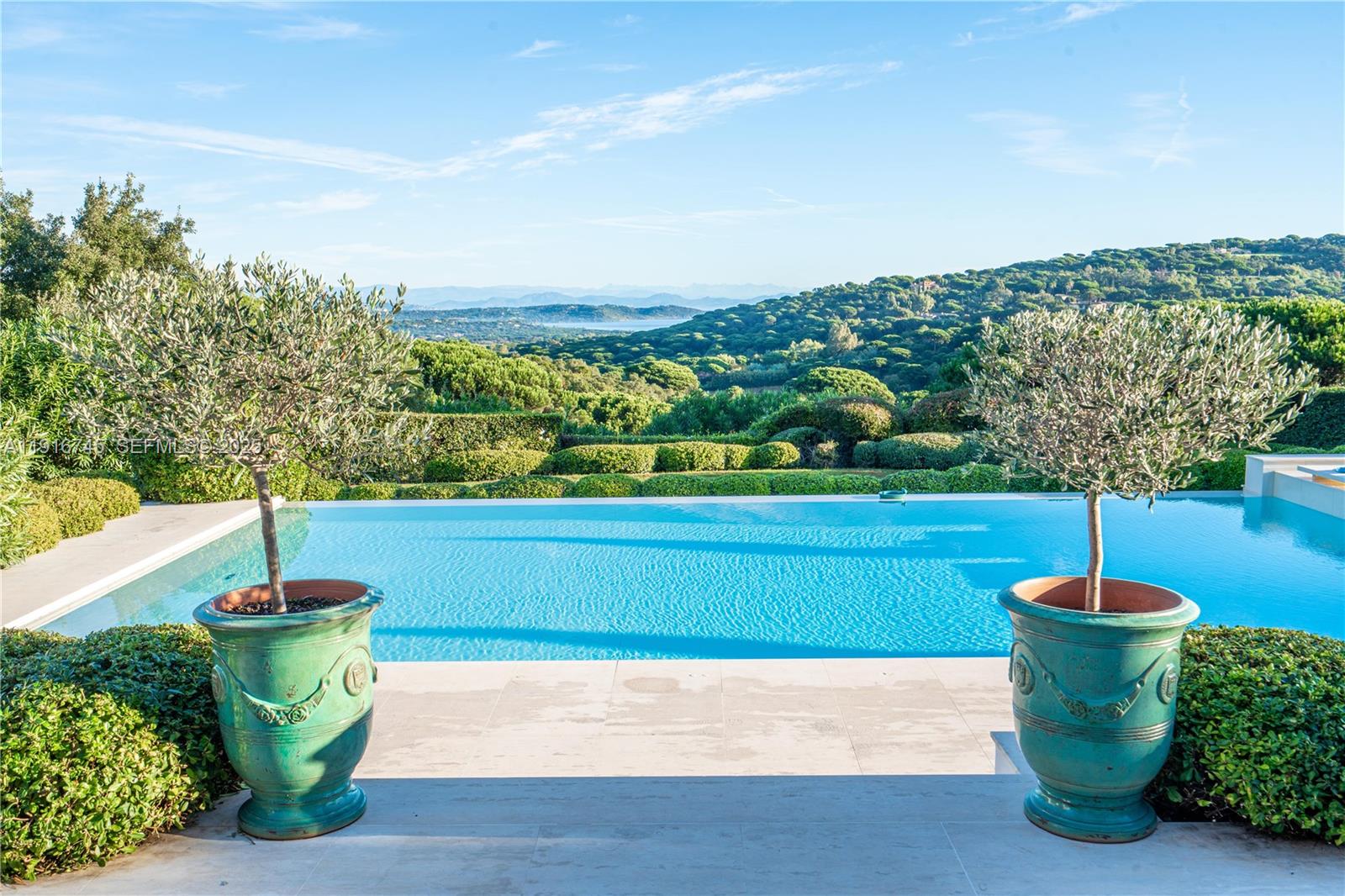 In the peaceful heights of Saint Tropez/Ramatuelle, this 8-bedroom, 7-bathroom manor villa of almost 4300 square feet extends over two levels in the heart of a landscaped 30677 square feet lot. From the moment you enter, the Mediterranean light envelops the spaces and reveals a double view of the sea and countryside of a rare majesty. Landscape garden, pool, Jacuzzi. Price vary on the exchange rate Euro/Dollar