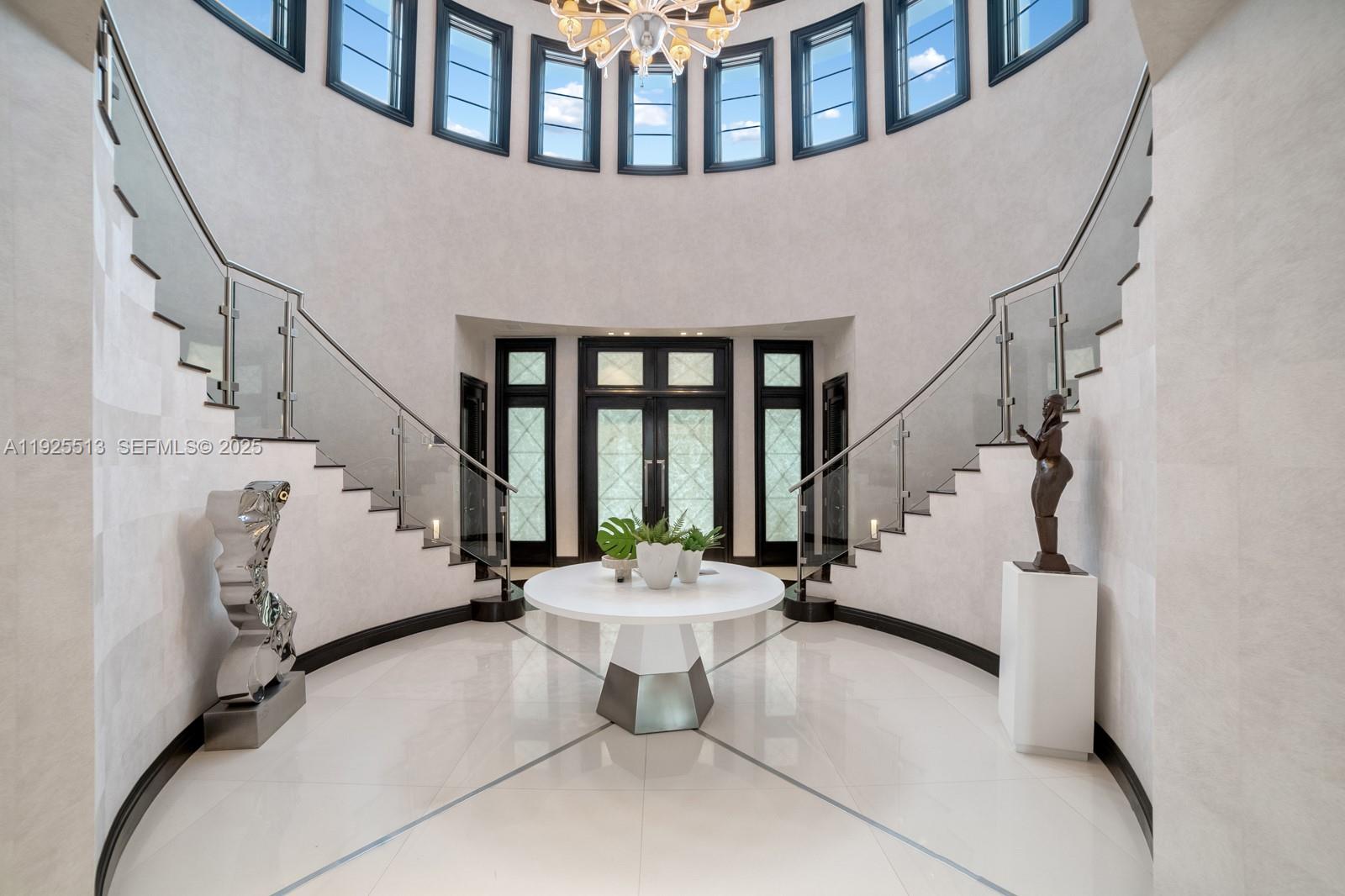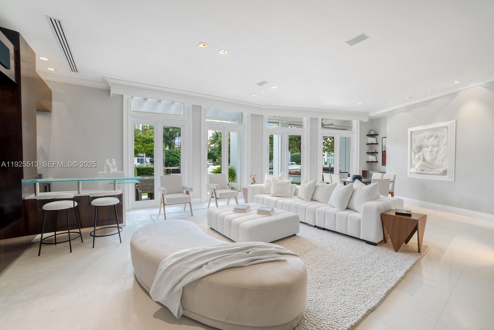 Step Inside With Me! This Golden Beach custom-built waterfront estate exudes a stately grandeur along an impressive 186' on the coveted Southern canal. A classic foyer reveals 25' ceilings and a regal staircase leading to over 7,700SF of glamorous interiors defined by a significant salon, formal dining, study, and theatre. The primary wing boasts spacious designated wardrobes and dual baths adorned with marble. The wellness pavilion features fitness, sauna, steam, and plunge pool which extends to a 100ft saltwater pool. Outdoors, find beautifully manicured landscaping, an expansive loggia with Summer kitchen, and private dock. Premium Crestron automation, wine cellar, butler's pantry, elevator, and 2 garages in a cul-de-sac location complete this prestigious offering in a gated community.