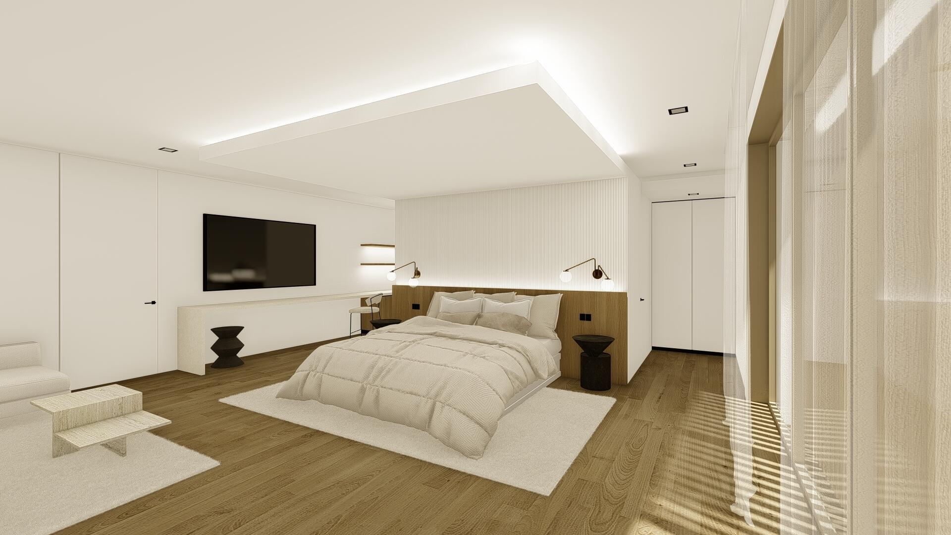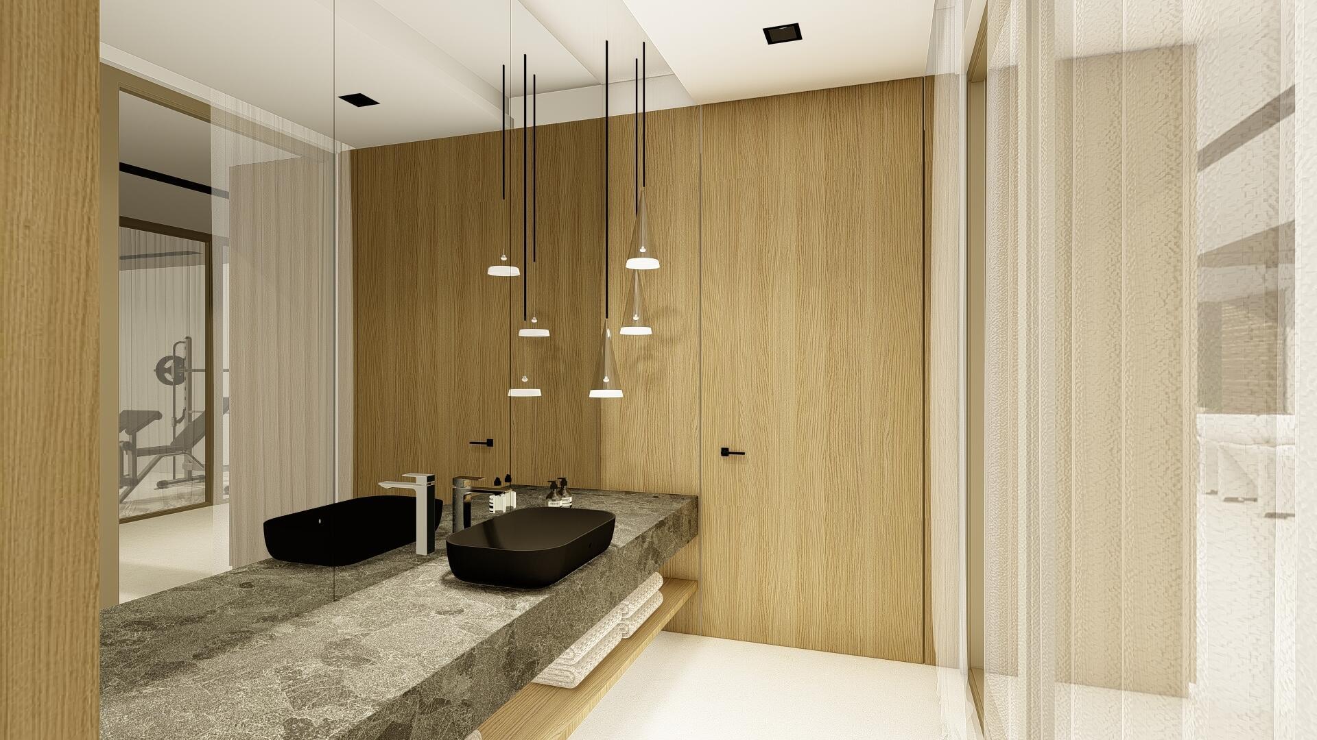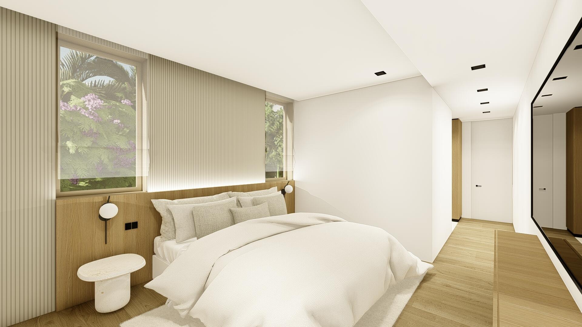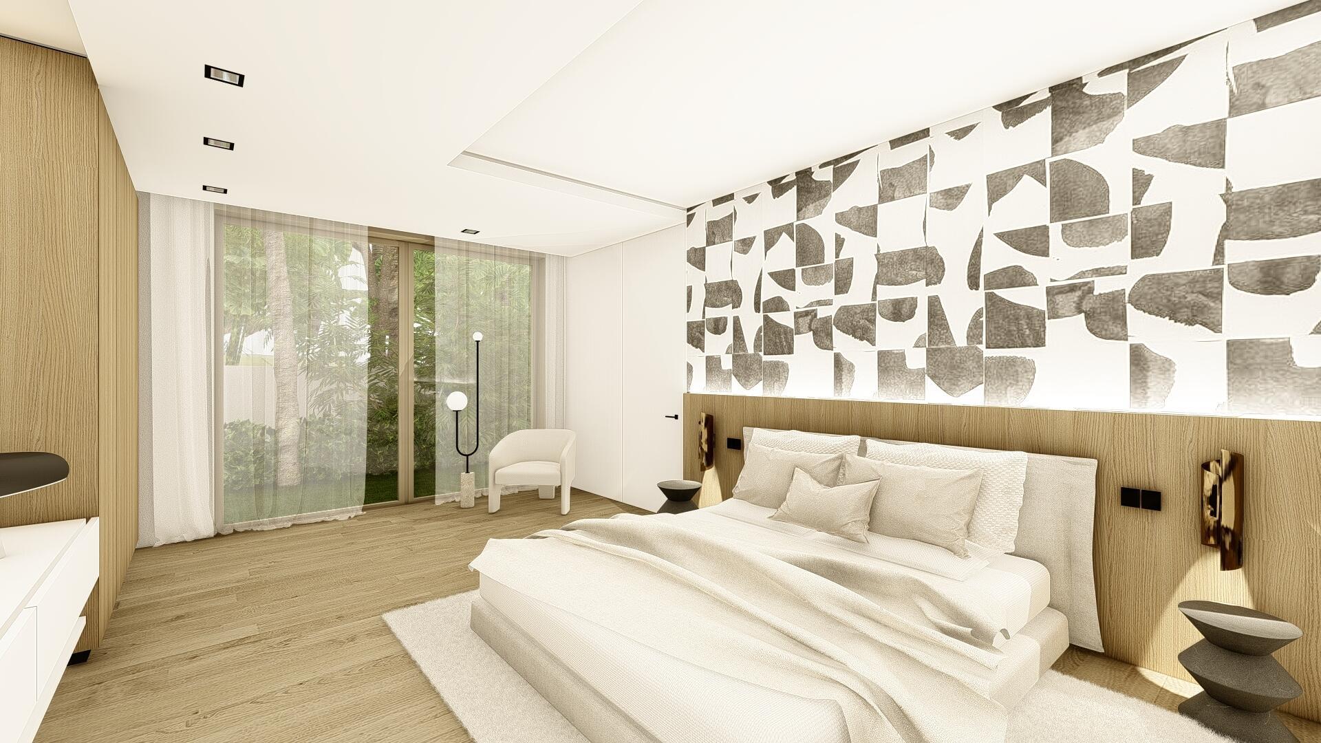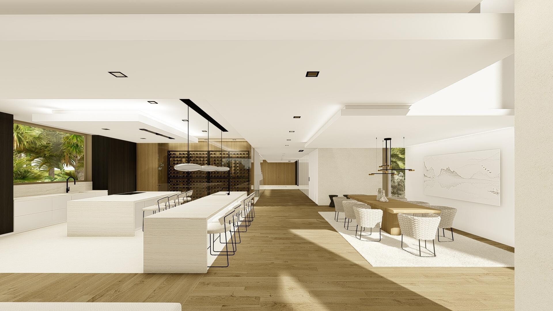 This organic modern jewel on a walled and gated lot along Billionaire's Beach takes privacy, security and world-class amenities to a whole new level. Three of them, in fact. The ultimate beach house (now under construction and slated for completion in the spring of 2026), new Villa Tropezina is being masterfully developed by Sabal Development and artfully crafted by Sabal Luxury Builders, both under the direction of Pascal Nicolai. It was beautifully designed by Togu Architecture. Ensconced on a lush linear sloping lot that extends from a pristine Atlantic Ocean Beach to a secluded Intracoastal inlet, this fluid, light-infused, three-story smarthouse juxtaposes organic finishes and creamy natural tones with modern design to create a zen-like serenity.